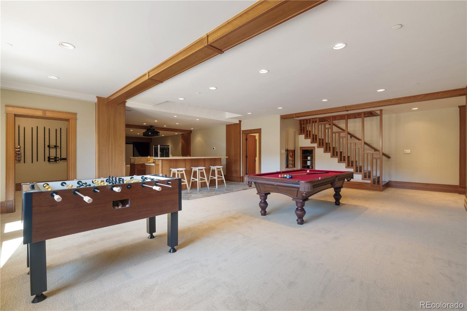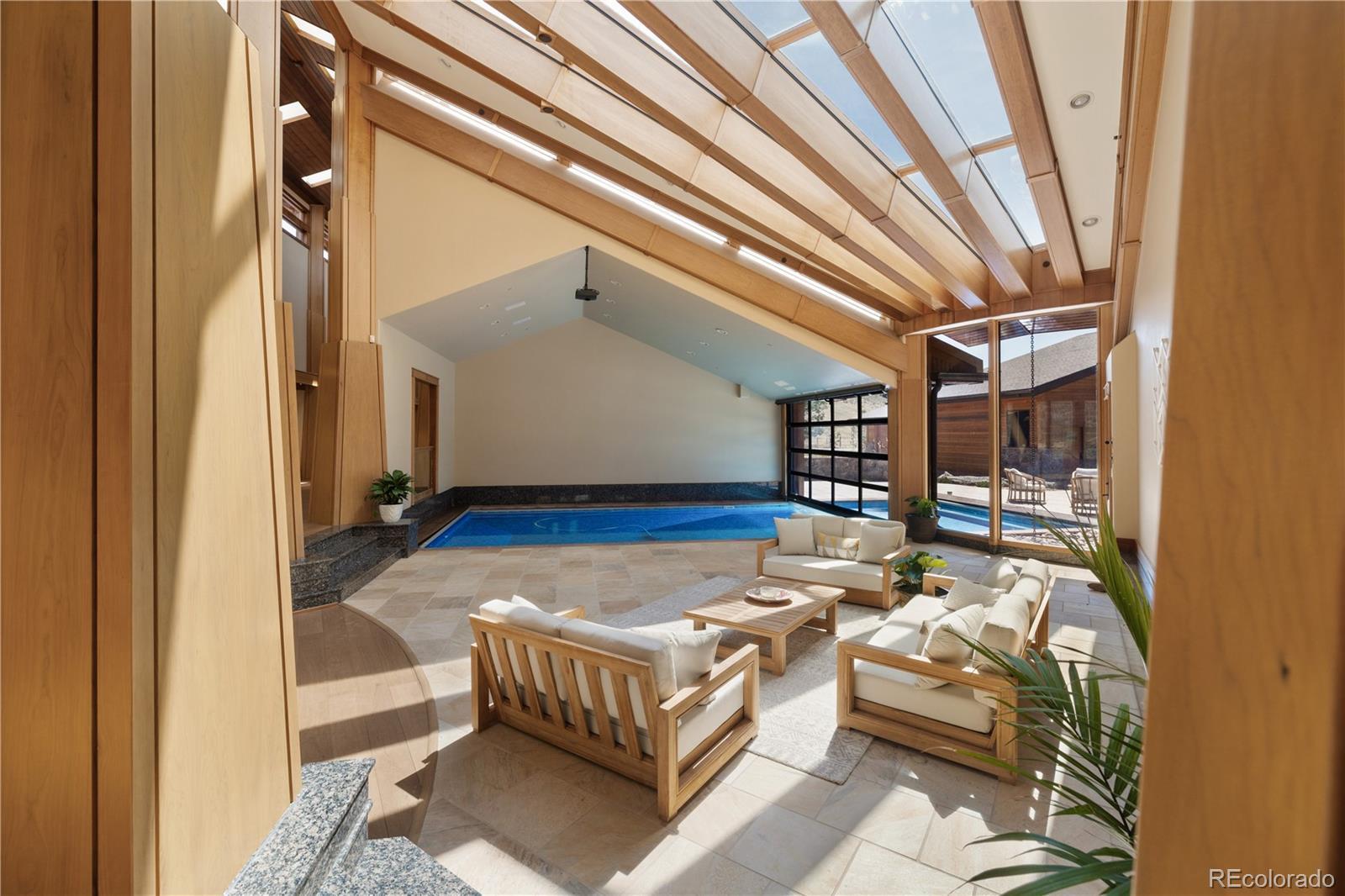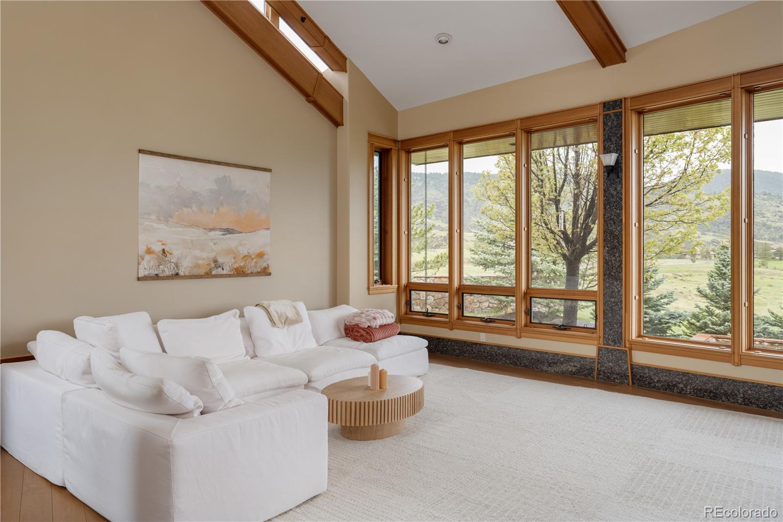 Set against the sweeping foothills of Golden, this architectural showpiece is a rare convergence of scale, craftsmanship, and setting. Designed to embrace Colorado’s dramatic landscape, the residence unfolds across 35 acres with panoramic views, extraordinary privacy, and effortless access to the region’s most coveted outdoor recreation. The striking exterior—defined by bold rooflines, natural stone, timber accents, and walls of glass—creates a commanding first impression. Inside, refined luxury meets organic elegance; rich cherry custom woodwork is met with floor to ceiling windows, capturing endless foothill vistas and golden sunsets. The layout is designed for both small gatherings and grand entertaining, with seamless transitions between formal and informal spaces. Natural materials, custom millwork, and curated finishes create a sophisticated yet welcoming atmosphere throughout. Every room has been thoughtfully positioned to maximize views, light and connection to the surrounding landscape. Expansive patios invite year-round enjoyment of each Colorado season. A truly exceptional feature of the estate is the 18-car garage, offering unparalleled space for collectors and automotive enthusiasts, or those seeking secure storage for recreational vehicles and specialty equipment. Whether showcasing a world-class collection or accommodating adventure-ready gear, this amenity elevates the property into a category of its own. Though privately set in a serene foothill enclave, the estate is just minutes from Golden’s renowned hiking and mountain biking trails, offering immediate access to some of Colorado’s most celebrated outdoor terrain. Downtown Golden’s charming shops and dining, as well as convenient routes to Denver and Boulder, are all within easy reach—delivering the perfect balance of seclusion and connectivity.