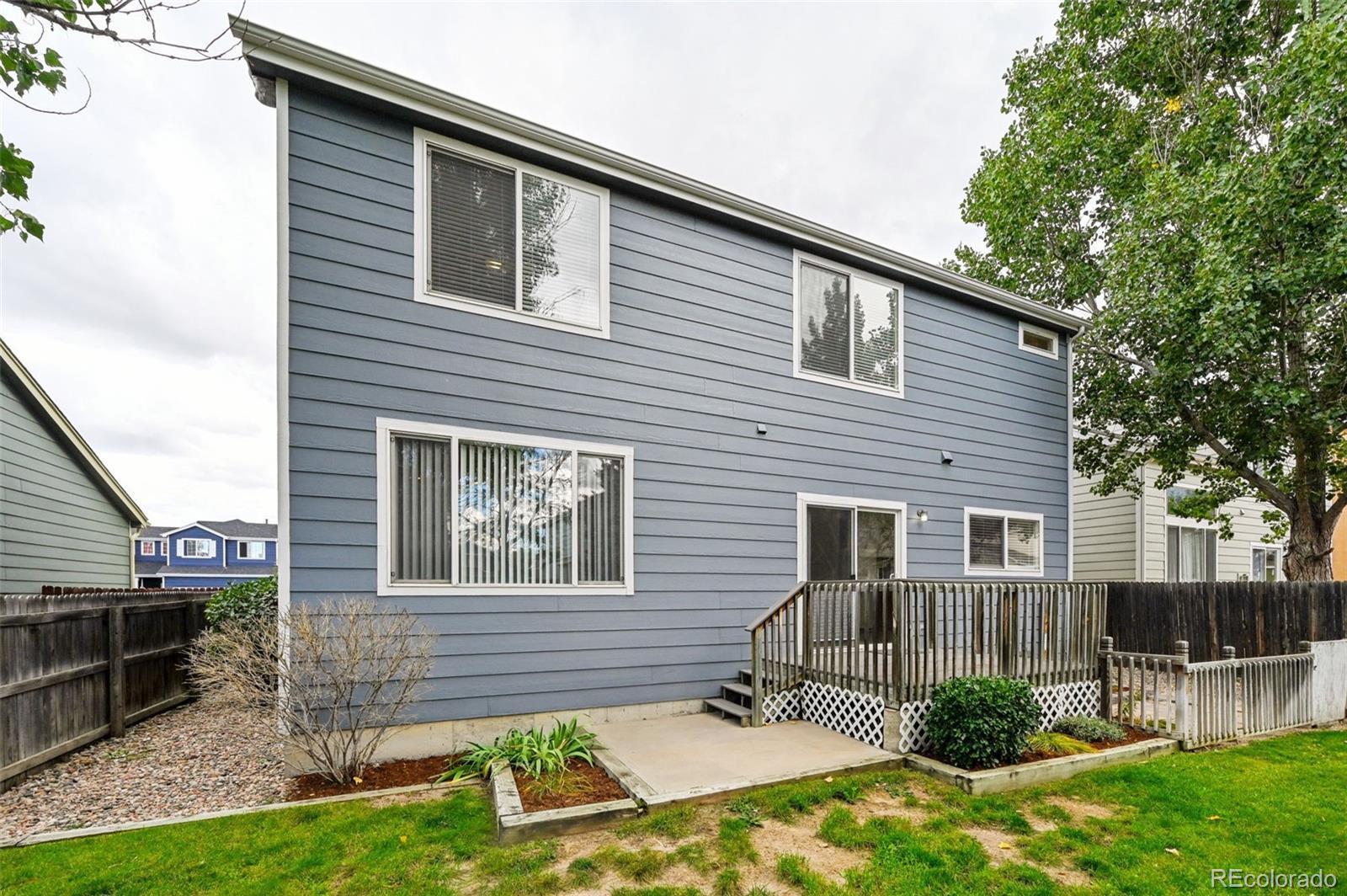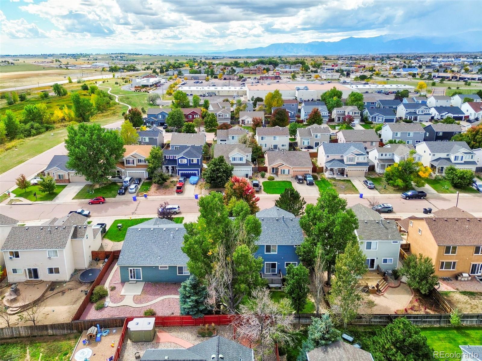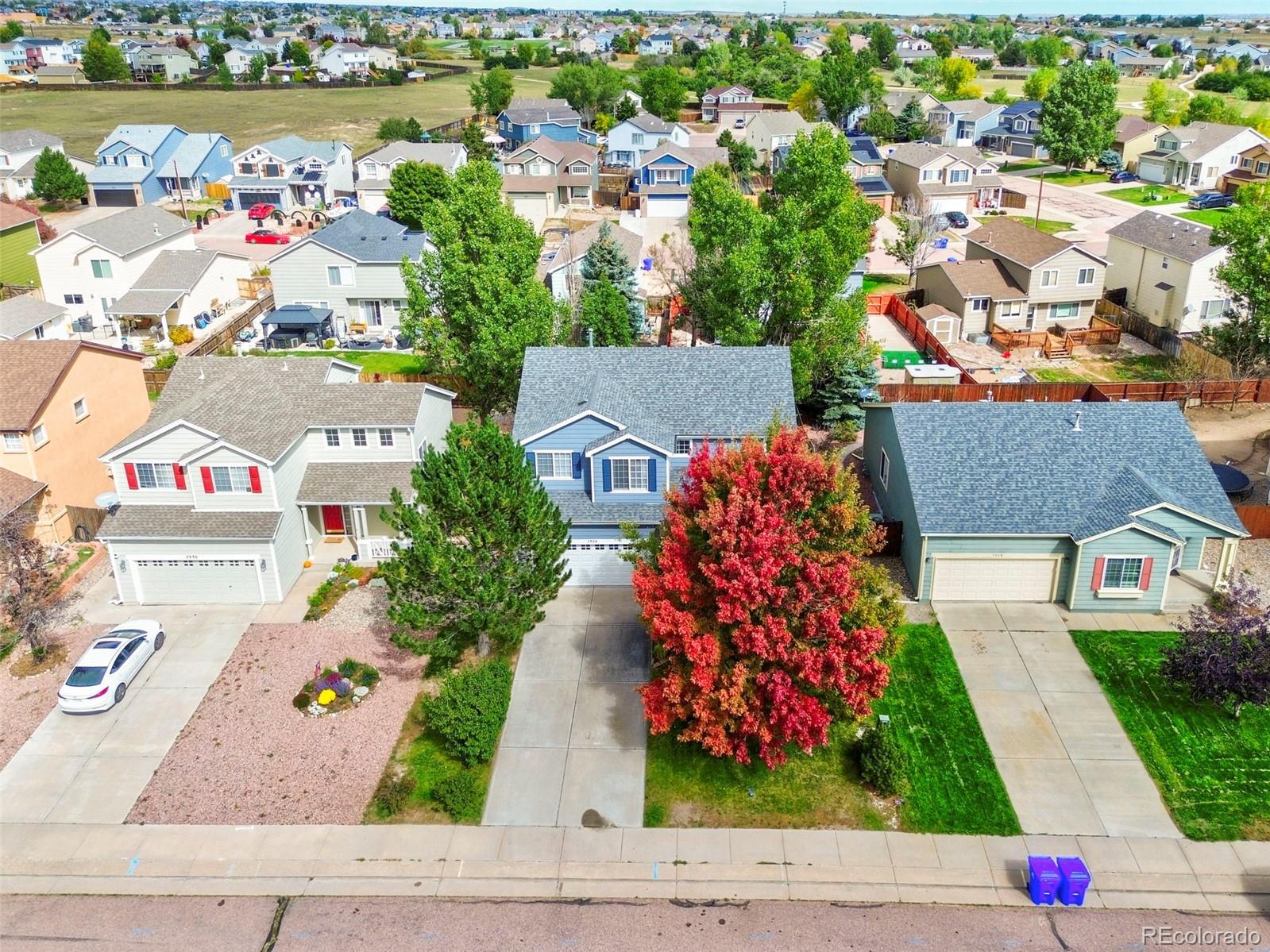 Welcome home here in Woodmen Hills! Step onto the extended covered front porch—a perfect spot to unwind and enjoy the neighborhood beautiful Colorado outdoors. Inside, wood floors and vaulted ceilings create a bright, airy main level anchored by a cozy two-way gas fireplace. The formal living room flows with comfort and connection into a carpeted family room with large windows. The open kitchen features 40-inch wood cabinetry, ample counter space, and an eat-in dining area ideal for everyday meals or entertaining. Main floor laundry comes with washer and dryer that stay. Step outside to a beautifully landscaped, fully fenced backyard with a sitting deck and automatic sprinkler system—your own private retreat. Upstairs, discover three spacious bedrooms, including a serene primary suite and two updated bathrooms with modern finishes. A versatile loft with a privacy door offers space for a home office, playroom, exercise area, music room, or non-conforming fourth bedroom. With fresh paint throughout, clean and newer carpet, a recently replaced roof with upgraded impact resistant shingle and new gutters with leaf covers, newer furnace replacement, and a two-car garage, this 1,822 sq ft home is absolutely move-in ready for you! Conveniently located near Peterson via Hwy 24, and into town via Woodmen Road, with easy access to the open spaces of Peyton, this home blends comfort, style, and flexibility. Book your private showing today!