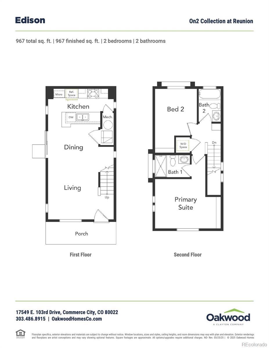 Welcome to the Edison – On2 Collection at Reunion Ridge! This brand-new, energy-efficient single-family home is move-in ready and located in the heart of Reunion’s vibrant master-planned community. Step inside to an inviting open-concept main floor with luxury vinyl plank flooring, plenty of natural light, and a sleek kitchen boasting a large island and granite countertops. The living and dining areas flow together effortlessly—perfect for daily life and easy entertaining. Upstairs, two bedrooms await, including a serene primary retreat. A convenient laundry closet is tucked between the bedrooms, and both bathrooms feature modern, clean-line finishes. Enjoy your morning coffee on the charming front porch, plus the convenience of a detached single-car garage and an extra dedicated guest parking space. Reunion combines small-town charm with big amenities: a 21,000 sq ft rec center with pools and fitness, 52 acres of parks, trails, lakes, and playgrounds, Reunion Coffee House, Buffalo Run Golf Course, and excellent schools like Landmark Academy and the new STEAD School. Designed for today’s lifestyle and ready for you now—schedule your private tour of the Edison today! Talk to a sales counselor about our flex cash and below-market rate options when using our preferred lender.