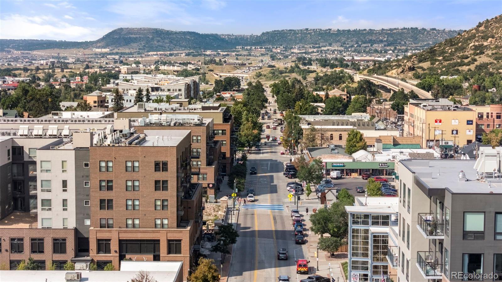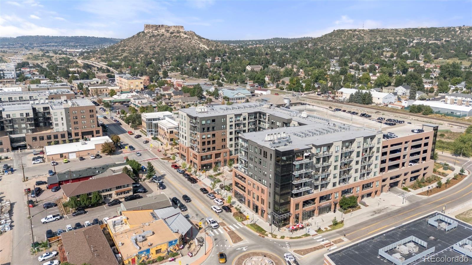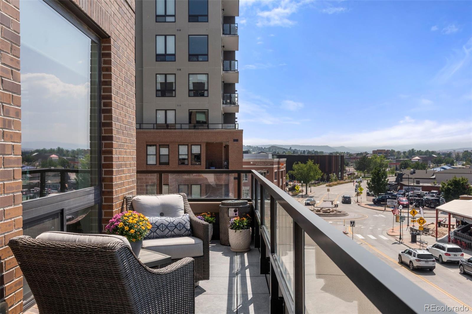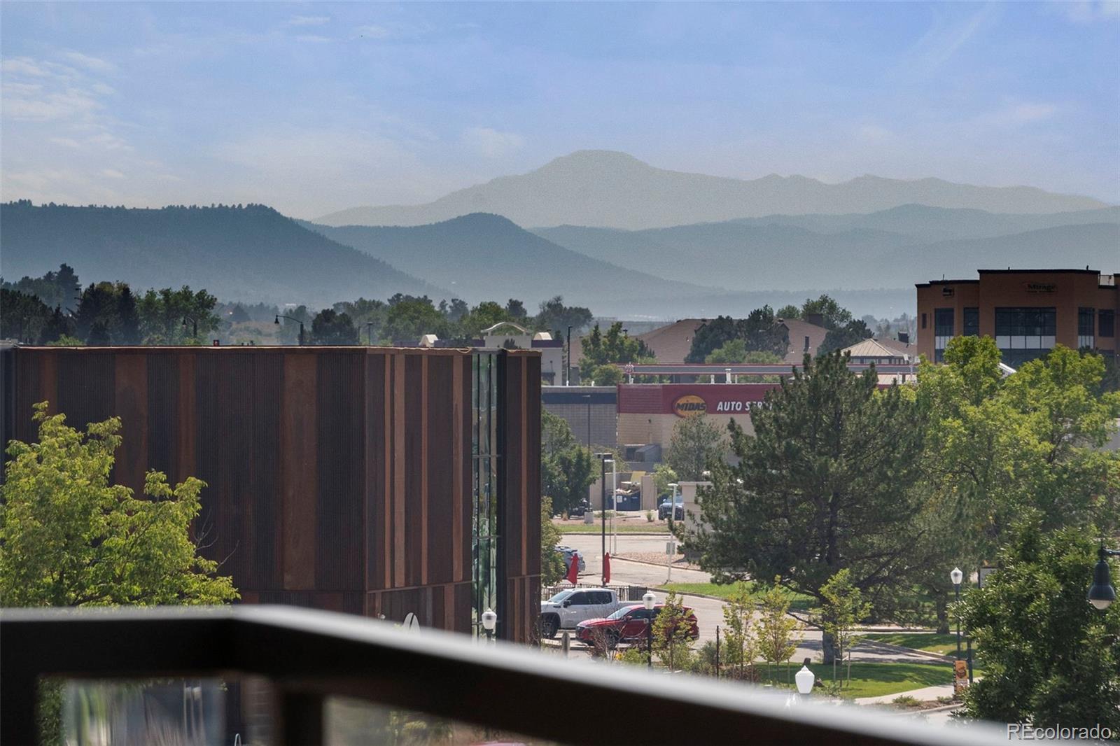 A truly one-of-a-kind luxury residence, end unit 323, located in the prestigious Encore Condominiums, right in the heart of downtown Castle Rock. This expansive 2-bed, 2-bath home offers 1,584 sq. ft of beautifully upgraded living space, w/ stunning southwest-facing views of Pikes Peak & the Front Range that are sure to impress. As one of the largest 2 bedrooms in the complex, the Hemingway floor plan is uniquely distinguished by its enormous wraparound terrace—one of only 3 like it in the entire building. Designed for both relaxation & entertainment, the outdoor space features a $15,000 custom outdoor kitchen complete with a Napoleon grill, pizza oven, French flat top griddle and refrigerator. Whether you're hosting guests, dining al fresco, or cultivating your own garden, the possibilities for enjoying this space are endless. The home showcases a high-end luxury finish package that features quartz countertops, KitchenAid SS appliances, a french door refrigerator, 5-element induction cooktop, 3 speed European style hood & a combination convection wall mounted oven and microwave. The primary bedroom is spacious, has a 5 -piece bath w/ a soaking tub + walk in custom closet made by California Closets. Technology & convenience converge w/ full smart home automation, a Nest thermostat, Google Home Hub Tablet, dimmer-controlled lighting, a smart front door lock, & motorized window shades. For added value, the home includes 2 deeded parking spaces R-44 + R-45—ideally located on the 3rd floor of the parking garage next to the exit for your convenience. Encore offers residents a wide range of resort-style amenities: outdoor hot tub, a club house, entertainment + party lounge w/ a golf simulator, a state-of-the-art fitness facility, & thoughtfully designed spaces for pet owners including a dog run + wash station. If you’re looking for sophisticated urban living with unmatched outdoor space and luxury finishes—all in the heart of charming Castle Rock —this truly has it all.