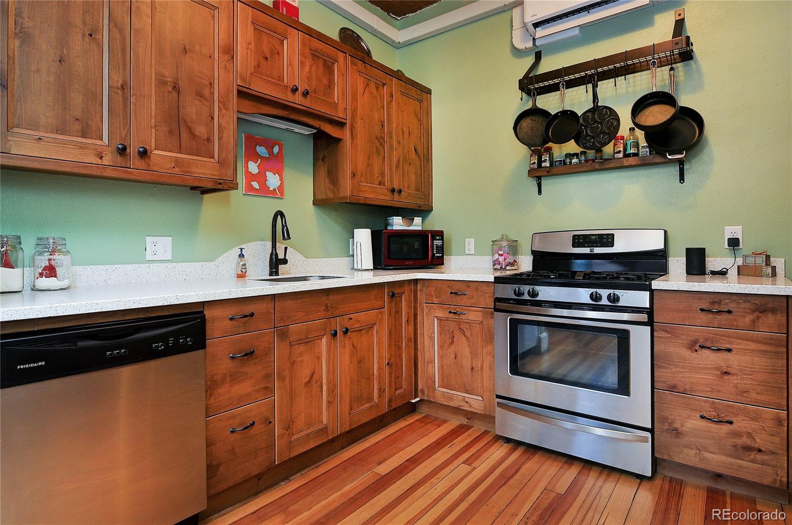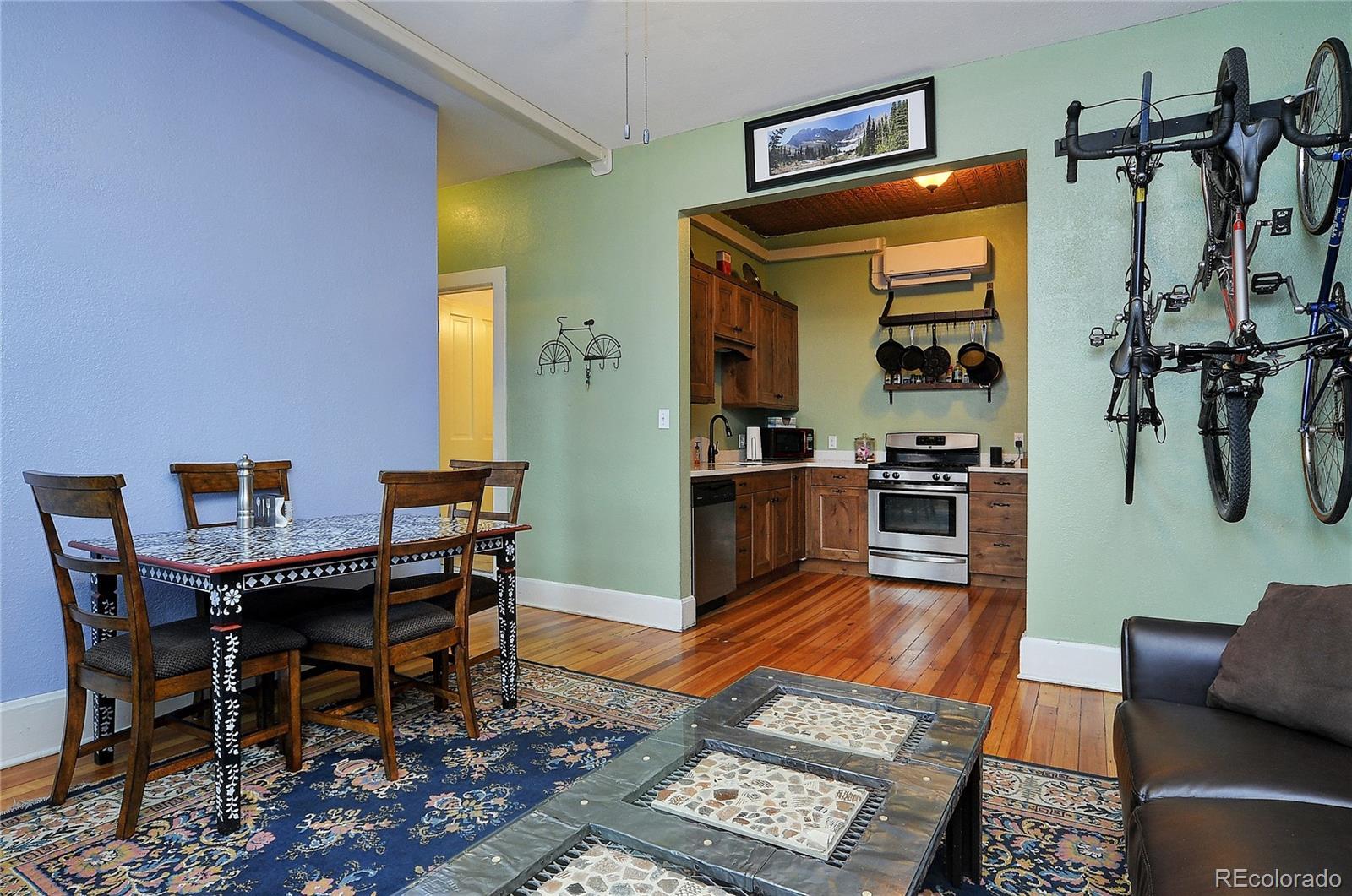 This condo is in the heart of downtown Salida! Out your door you are greeted with bars, restaurants and shops as well as access to S Mountain Trails and the Arkansas River only a few blocks away! The unit features modern finishes with old world charm. The living room faces south over First Street with tall windows, exposed brick wall and hardwood floors. Kitchen is only a few years old with custom cabinets, quartz counters and stainless appliances. There are three modern mini-splits (heating/cooling units) for efficient and customizable heating and cooling. One bedroom is off the living area and the second bedroom (used as a bunk room) is on the other side of the condo in the back. One full bathroom and one half bath. Behind the building is a spacious serene courtyard for the use of residents and two shared off-street parking places. The generous basement is divided up for the use of individual unit storage areas. So much to offer in the vibrant city of Salida!