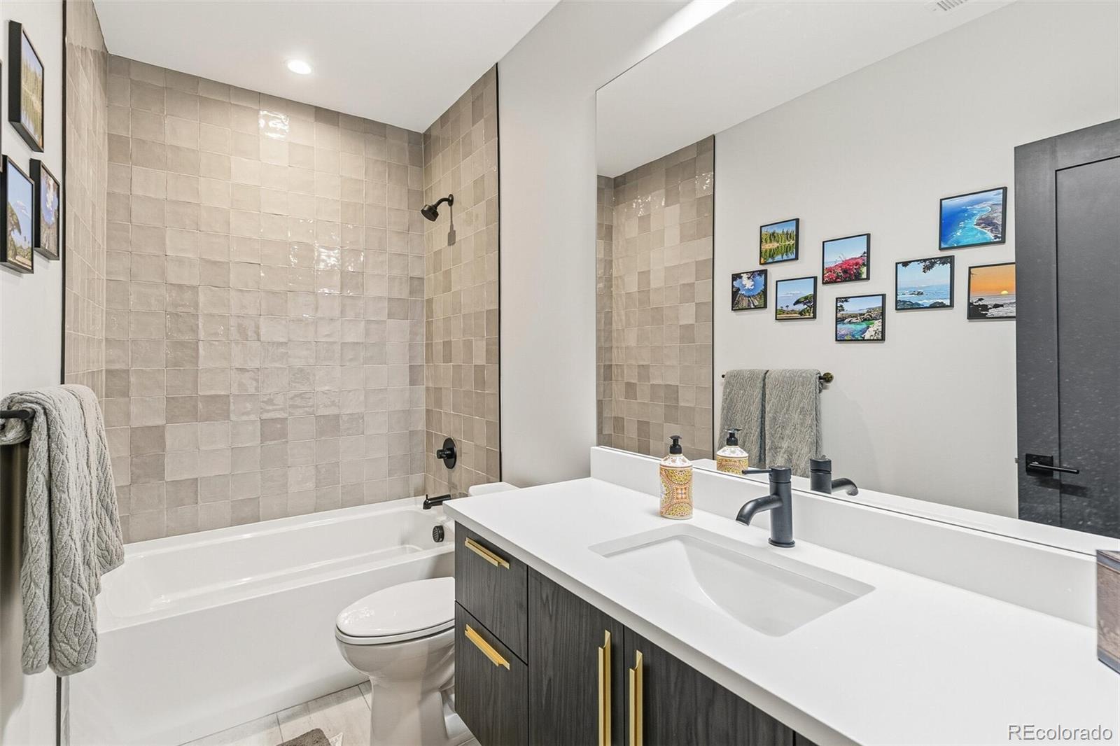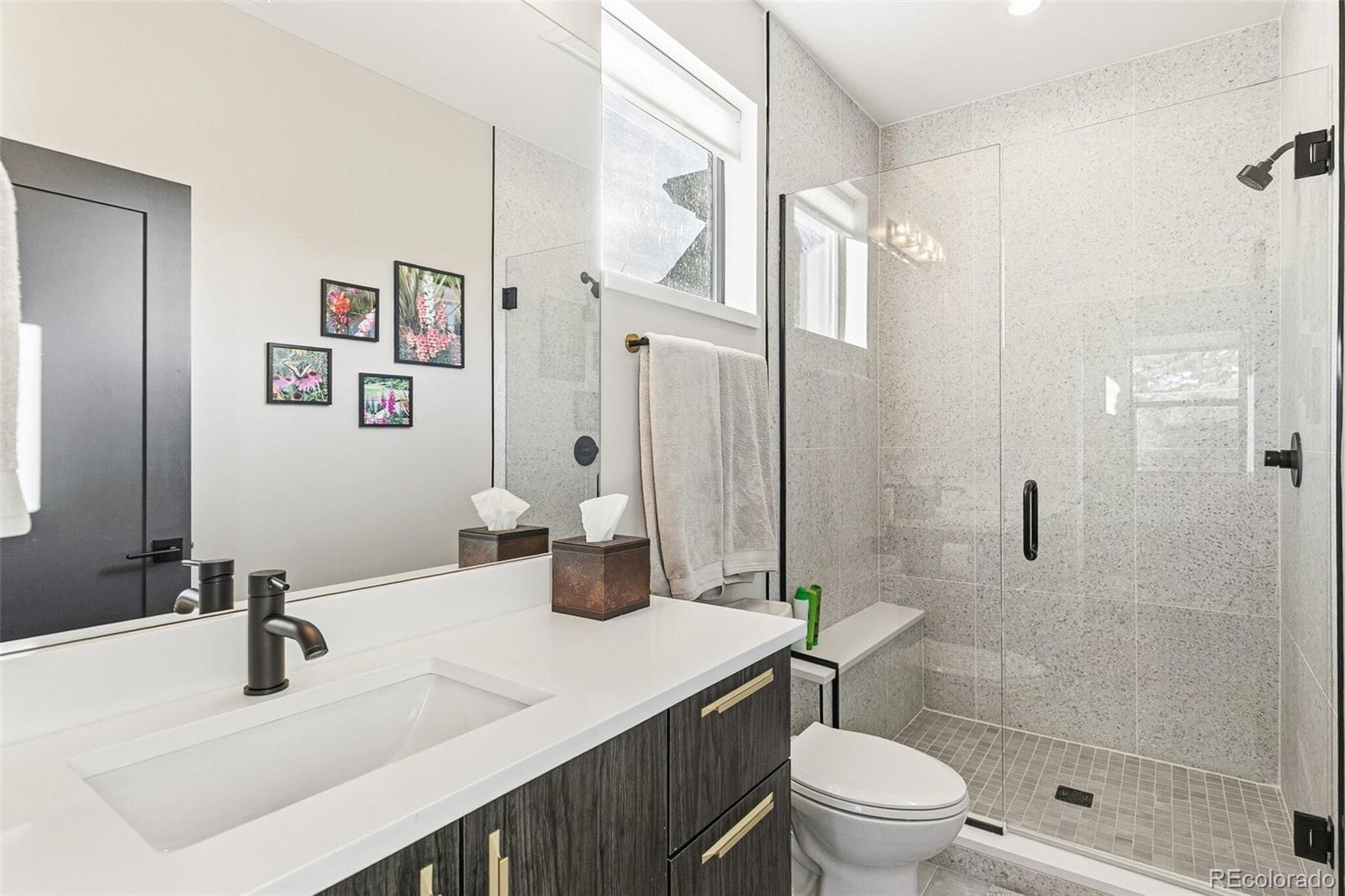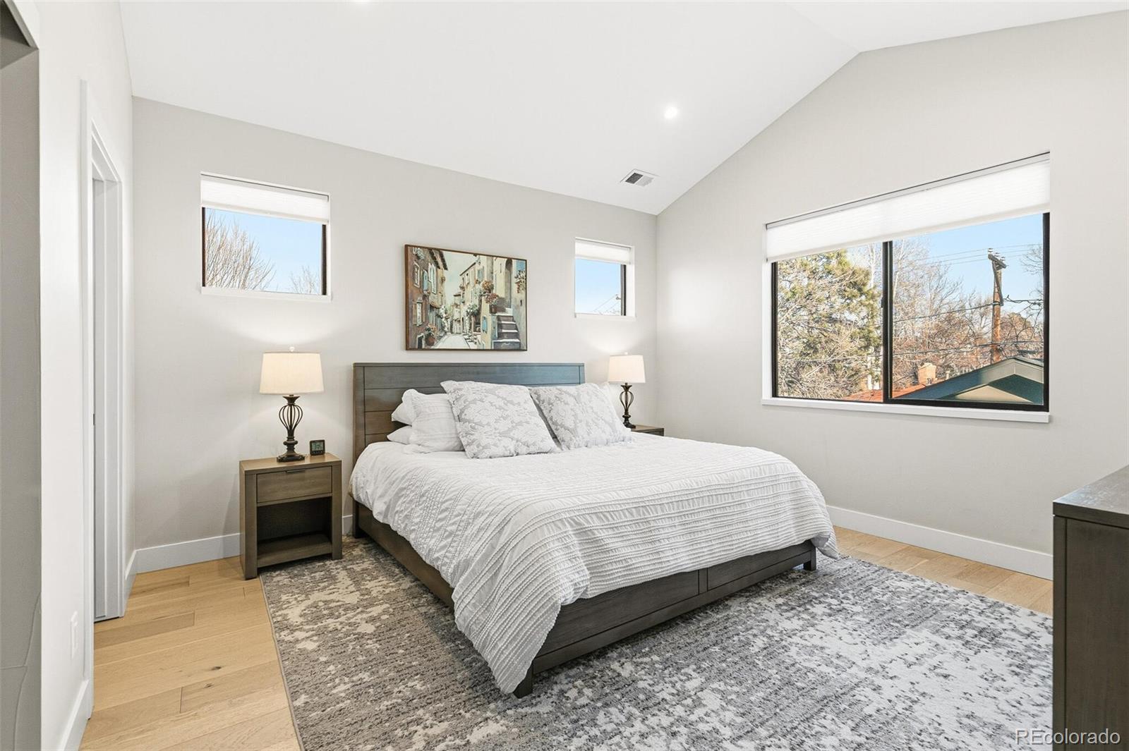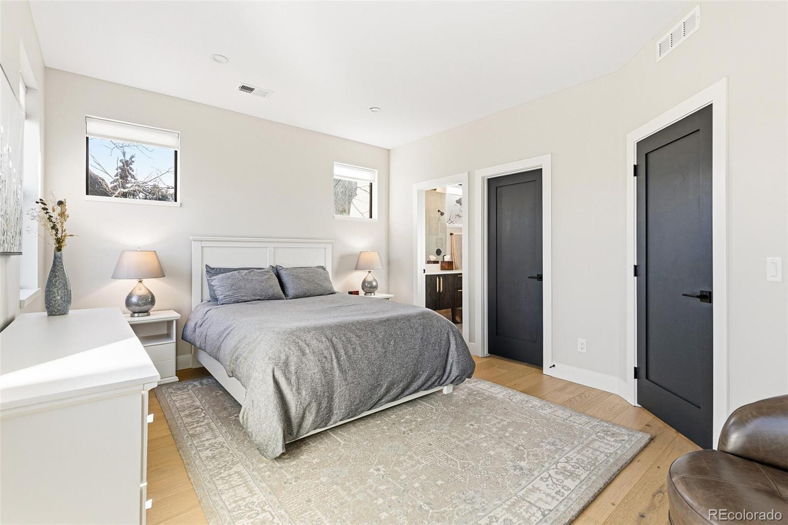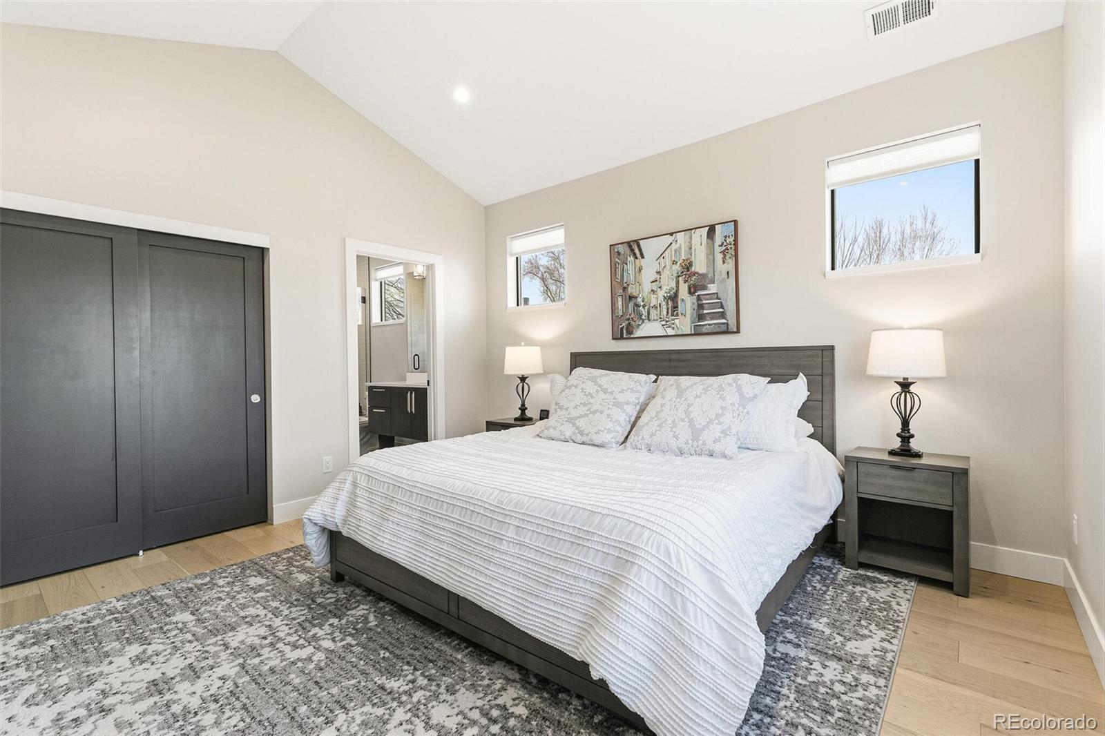 A statement of modern luxury and thoughtful design. This residence offers refined living at every turn. From the moment you enter, a dedicated office and the elegant formal dining room-set a tone of timeless sophistication. The heart of the home, the designer kitchen is a true showcase, featuring a dramatic waterfall island, sleek quartz countertops, a Wolf gas cooktop and an impressive 60" refrigerator. Entertain effortlessly with a discreet butler’s way with abundant storage and an oversized walk-in pantry. Perfectly blending form and function for everyday living. The expansive family room centers around a striking gas fireplace with a stone surround and opens seamlessly through accordion doors to the covered back patio, creating an ideal indoor-outdoor lifestyle. A gas fireplace in the professionally landscaped yard, fully fenced with a parking pad for guests or caterers. The primary suite is a private retreat, showcasing a two-sided, floor-to-ceiling stone fireplace, a serene seating area, soaring cathedral ceilings with wood paneling. Access to a private deck. The spa-inspired 5- piece bath has a stand- alone soaking tub and a large custom shower with dual showerheads. The experience continues with a generous 12' x 10' walk-in closet and an attached laundry room complete with a utility sink, offering unmatched convenience and luxury. Full finished basement with 9 ft. ceilings, wet bar with double wine fridges. a workout room if desired or additional conforming bedroom. Dual zoned HVAC, tankless water heater. Great location, close to Wash Park, Gaylord Street and Cherry Creek. This is luxury living at its finest.