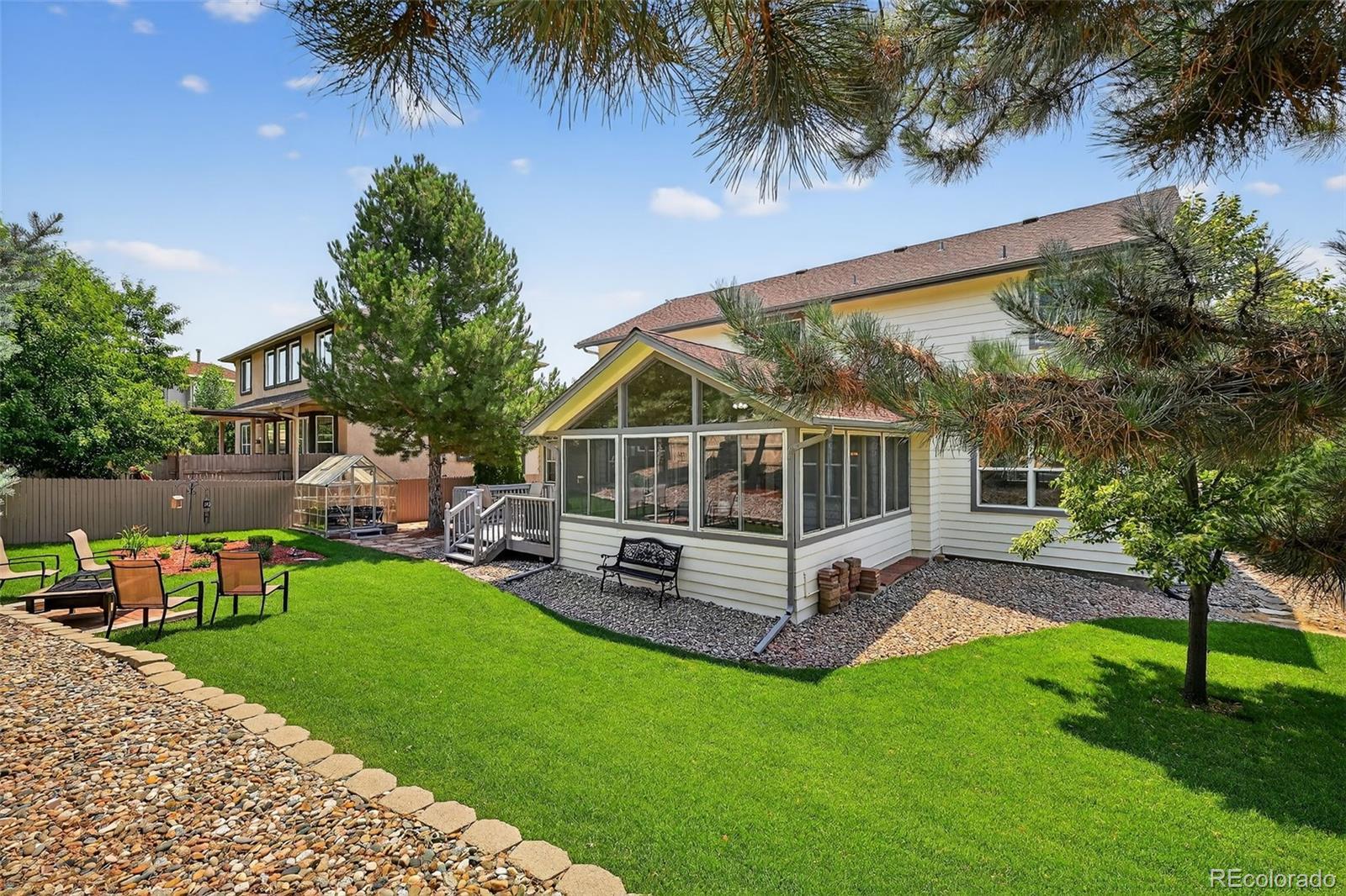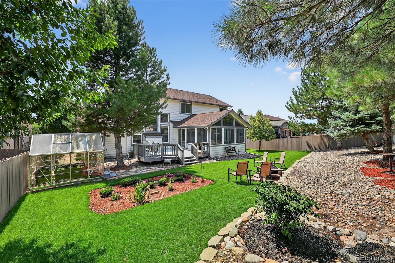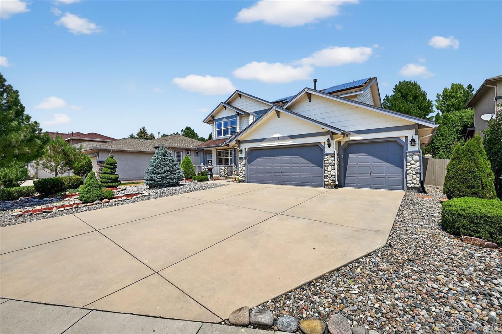 Welcome to this stunning home nestled in the highly desirable Pine Creek Community. Past the covered front patio, you're welcomed into an open entryway featuring warm hardwood floors, a convenient coat closet, and seamless access to the kitchen, second level, and family room. To the left, discover the spacious family room and adjoining formal dining area, both freshly painted and finished with plush carpeting. The beautifully updated kitchen is a true centerpiece, boasting granite countertops, stone accents, stainless steel appliances, a walk-in pantry, and a well-positioned island ideal for cooking and gathering. The adjacent breakfast nook provides casual dining and leads into the sun-drenched sunroom, complete with a gas fireplace and access to the lush backyard. The formal living room impresses with soaring ceilings, expansive windows, and a stylish gas fireplace with stone surround. This main level also offers a half bath, laundry room, and a versatile bonus room, perfect as a home office, playroom, or guest space. Upstairs, you’ll find two generously sized bedrooms and a full hall bathroom. The luxurious primary suite features vaulted, wood-accented ceilings, bay windows, and plush carpeting. A modern track door opens to the en-suite 5 piece bath with a garden tub, glass enclosed shower, dual sinks, and a 5x8 walk-in closet. The finished basement adds flexibility with a second family room, full bathroom, additional bedrooms, and a convenient kitchenette, ideal for guests, entertaining, or multigenerational living. This home also includes a whole-house humidifier, solar panels -already paid off, and a central water filtration system. The fully fenced backyard offers a serene oasis with a wood deck, firepit pad, lush lawn, and a charming greenhouse, framed by mature trees and a stucco wall for added privacy. Enjoy top-rated District 20 schools, nearby Pine Creek Golf Club, and easy access to I-25, Powers Blvd, hospitals, shopping, dining, and entertainment.