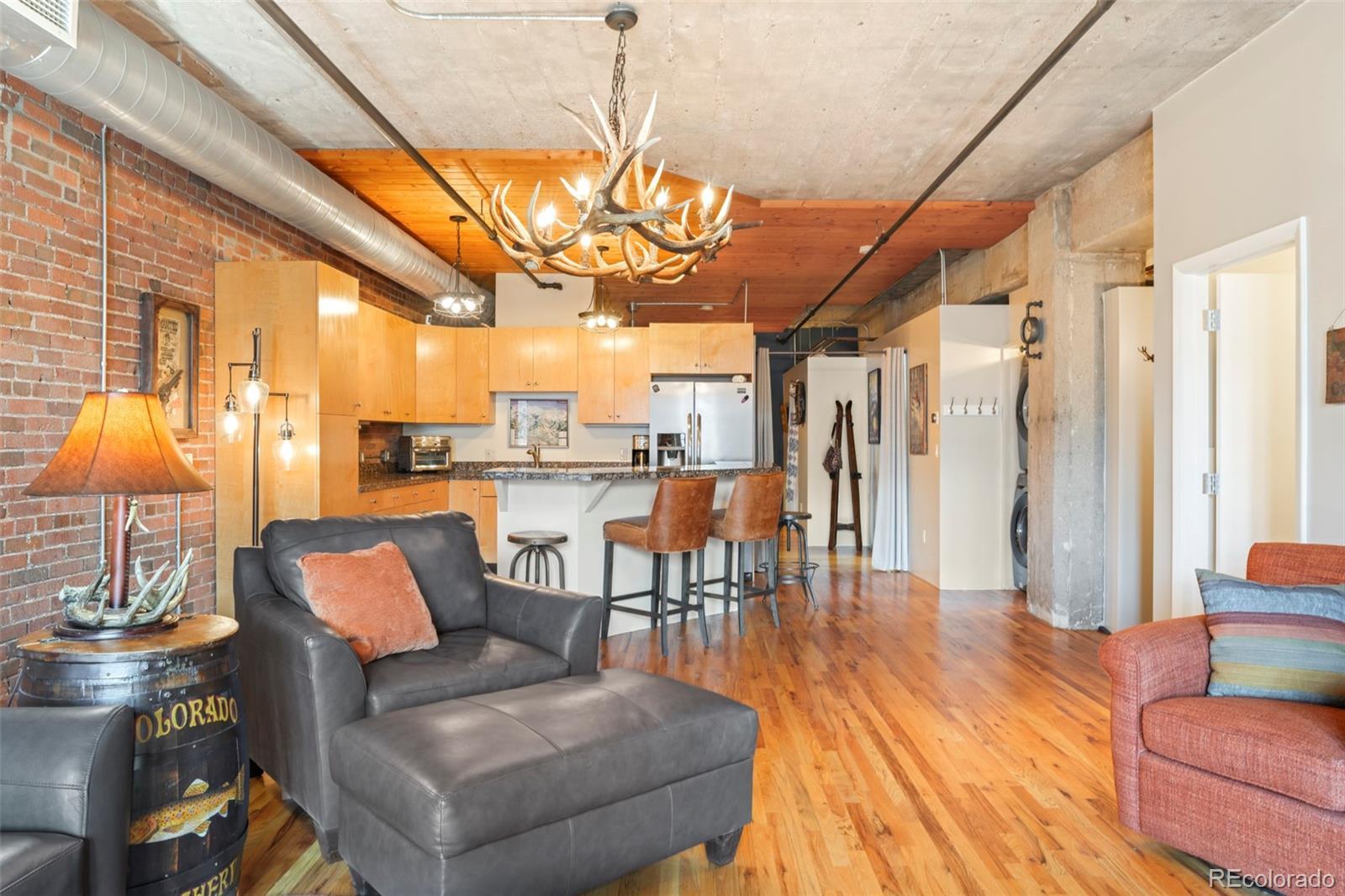 Welcome to this lovely, warm, and homey well-maintained loft.This 1,128 sq. ft. loft lives big with its open floor plan, featuring a kitchen with a large island, living room, and dining room—perfect for everyday living and entertaining. The primary bedroom is also spacious with a massive walk-in closet and full primary bath. There is an additional half bath for guests. The loft has a large window overlooking Wynkoop Street with great city views. Included are all appliances, special lighting, window coverings, newer washer/dryer, fresh paint, one secure deeded covered parking space, and a storage unit. The kitchen offers plenty of counter space and abundant cabinets. With high concrete ceilings, exposed brick walls, shiny hardwood floors, and loads of character and charm, this loft is truly special. A+ location with great neighbors who work and play together—don’t miss this one! Ice House Lofts is an iconic and premier historic building in LoDo. There are very few historic buildings in the downtown area—especially of this caliber. It’s iconic both for its history and its location. The building began as the Littleton Creamery in 1895 and was expanded in 1907 by Beatrice Foods. It became known as the Ice House because of the many ice vaults used to keep food frozen—before refrigeration existed. With its beautiful brickwork and smokestack, the building has stood proudly for over 100 years. The location is unbeatable—on a quiet street, yet steps away from Coors Field and Union Station. From here, you’re close to top restaurants, bars, every major sports team, the symphony, theaters, the new 16th Street Mall, plus biking and walking paths. All this, with even more exciting development on the way.
