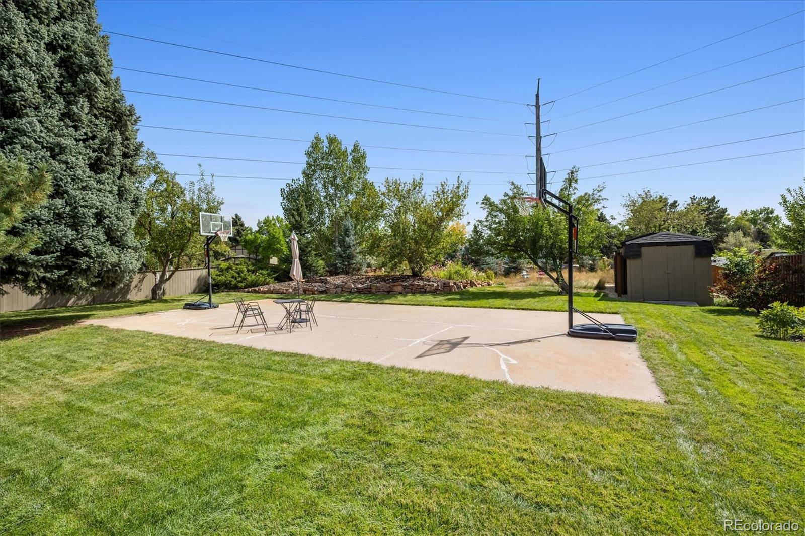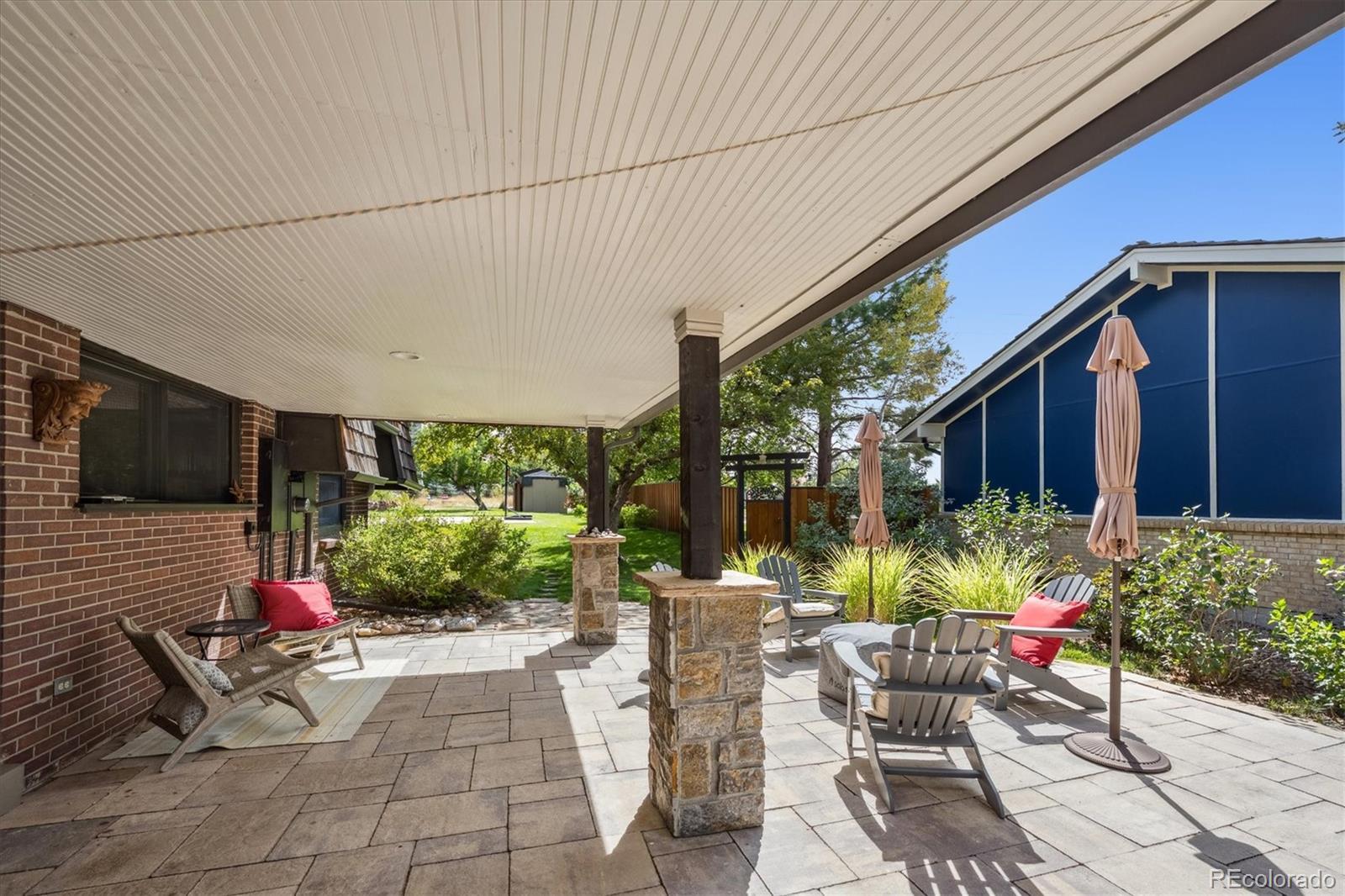 Discover this classic 1970s contemporary two-story home nestled in the sought-after Palos Verdes neighborhood of Centennial. Enjoy exceptional convenience with quick access to the Denver Tech Center, Fiddlers Green Amphitheater, I-25, Downtown Denver, Castle Rock, and beyond. The main level is designed for easy living and entertaining, featuring formal living and dining rooms along with a versatile den highlighted by a fireplace—perfect as a cozy sitting area or intimate family room. The updated kitchen is both stylish and functional with quartz countertops, ample cabinetry, and stainless steel appliances. Step outside to the expansive patio and beautifully landscaped backyard, an ideal setting for summer grilling, outdoor gatherings, or a casual basketball game. Upstairs, the spacious primary suite offers a private retreat with an updated en-suite bath. Four additional generously sized bedrooms share a full hall bath, providing flexibility for family, guests, or home office needs. The finished basement adds valuable living space with a large recreation room and wet bar—perfect for game days and entertaining. The attached two-car garage easily accommodates vehicles and includes a dedicated workbench and natural gas-fired heater—perfect for the hobbyist or mechanic. This lovely home is located in the highly sought after Cherry Creek School District, recently named as the top athletic program in the US! Don’t miss this Palos Verdes gem in Centennial!