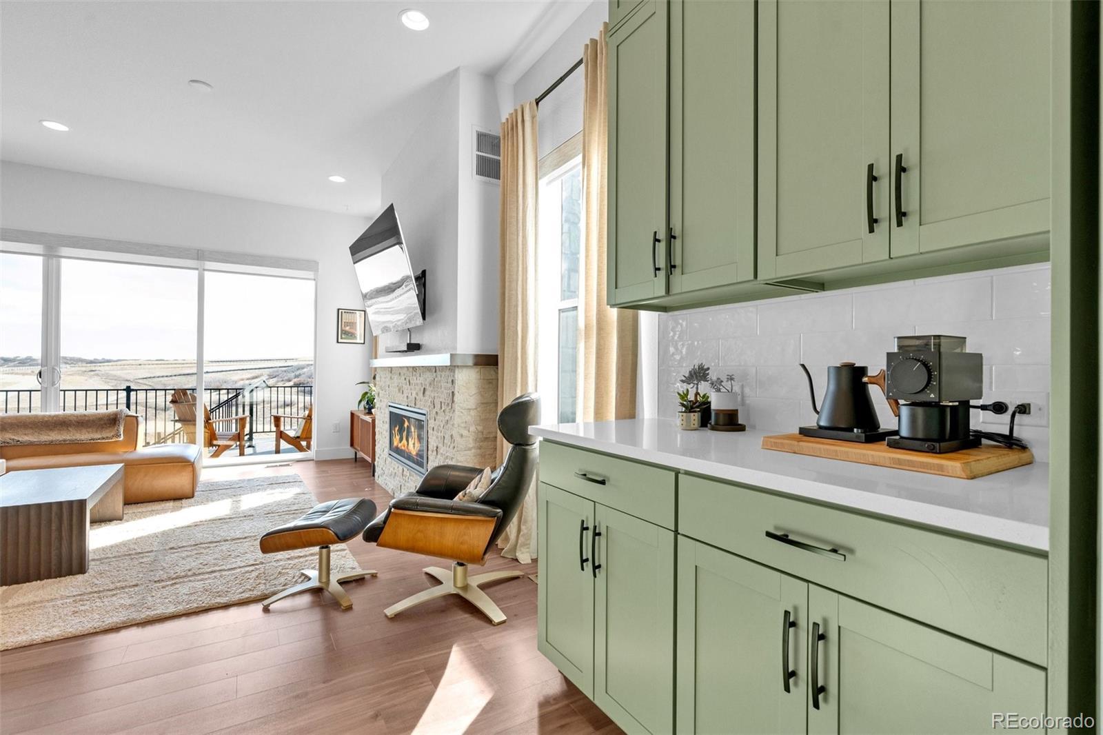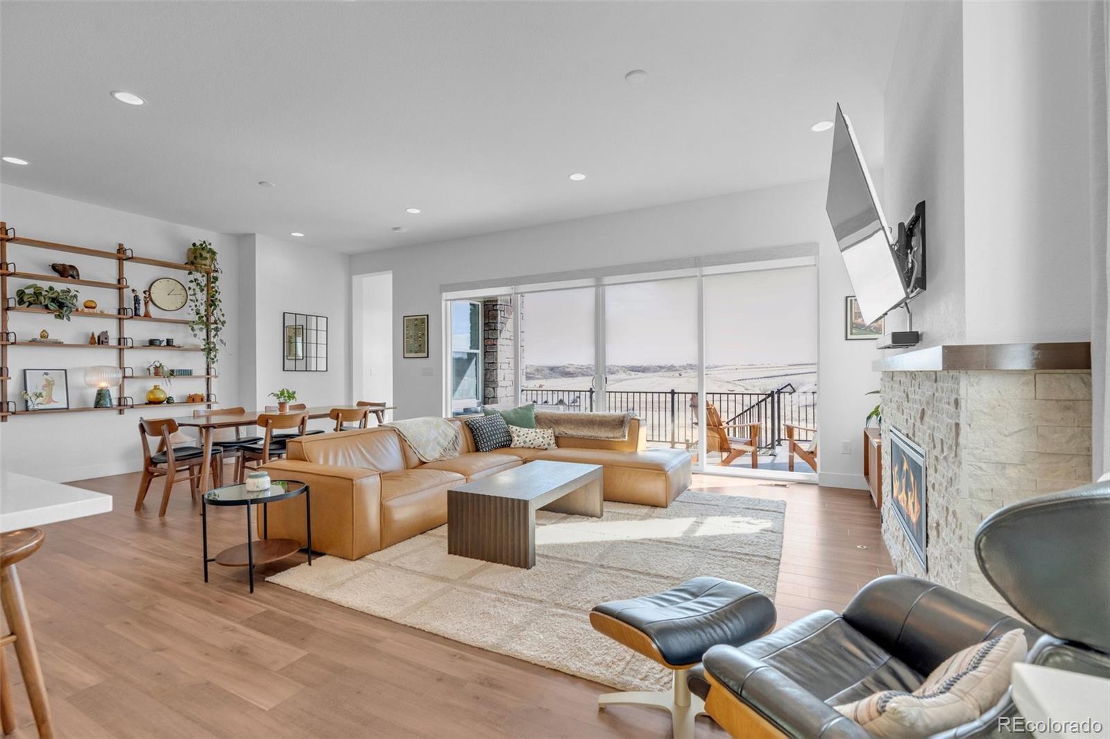 One of the best locations in The Canyons—backing to open space with peaceful views—this 4-bedroom, 4-bath home offers the space and flexibility you’ve been looking for. Step inside the foyer that leads to an open living and dining area with luxury vinyl flooring, a gas fireplace with stone-tile surround and warm wood accent, and oversized sliding doors that lead to a covered deck—perfect for morning coffee or sunset dinners. The gourmet kitchen is designed for gathering with ceiling-height custom cabinetry and crown molding, tile backsplash, stainless steel appliances, a gas cooktop, and a large center island with seating and a granite sink. A spacious walk-in pantry with built-in wood shelving keeps everything organized. The main-level primary suite is light and private, with custom carpet and serene views. The en-suite bath features tile floors, dual sinks, a large walk-in shower with a bench and privacy window, a separate water closet, and an oversized walk-in closet with built-ins. Also on the main level: a flex room (office/den/playroom), powder bath, and additional bedrooms with a full bath, plus a convenient mudroom/laundry with tile floors, shelving, and cabinetry. Downstairs, the walk-out lower level adds even more options—family room with large windows and a slider to the patio and backyard, an additional bedroom with French doors and room for an office/sitting area, a ¾ bath with a glass-door walk-in shower, plus access to unfinished storage. This incredible home backs to open space, has room to spread out, and a layout that fits real life. The Canyons is a new and highly sought-after neighborhood that offers an array of amenities, including trails, parks, a resort-style community pool and hot tub, and a community coffee house. Just 20 minutes to DTC or 15 minutes to Castle Rock. View more photos and a 3D tour at sites.listvt.com/6984rimridgeway