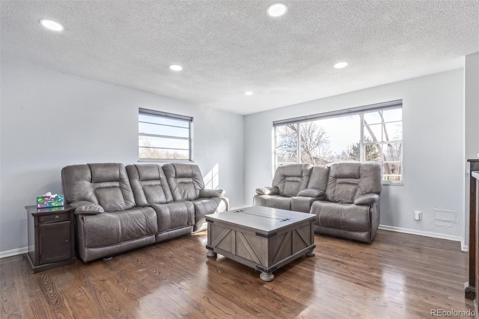 Introducing this stunning energy-efficient home in Northglenn! Conveniently located within walking distance of restaurants and shopping destinations, this property is sure to impress. As you enter, you’ll find an inviting living room, perfect for welcoming guests. The upper level features refinished hardwood flooring, fresh custom paint, and recessed lighting that brightens every corner. The updated kitchen boasts stainless steel appliances, painted cabinets, and a dining area with sliding glass doors leading to the back deck. This level also includes two nicely sized bedrooms and a full bath. On the lower level, the family room is filled with natural light and is ideal for entertaining. You'll also find two additional bedrooms here, with the larger bedroom offering a custom walk-in closet, unique for the age of this home. The oversized one-car garage provides space for vehicles or additional storage. Enjoy the large backyard, which features a relaxing deck with newer Trex decking, an open patio, and raised garden beds, all perfect for outdoor enjoyment. Additionally, the sellers haven't paid a utility bill in 2025, thanks to leased solar panels that were installed in 2024. Don’t miss out on this incredible opportunity!