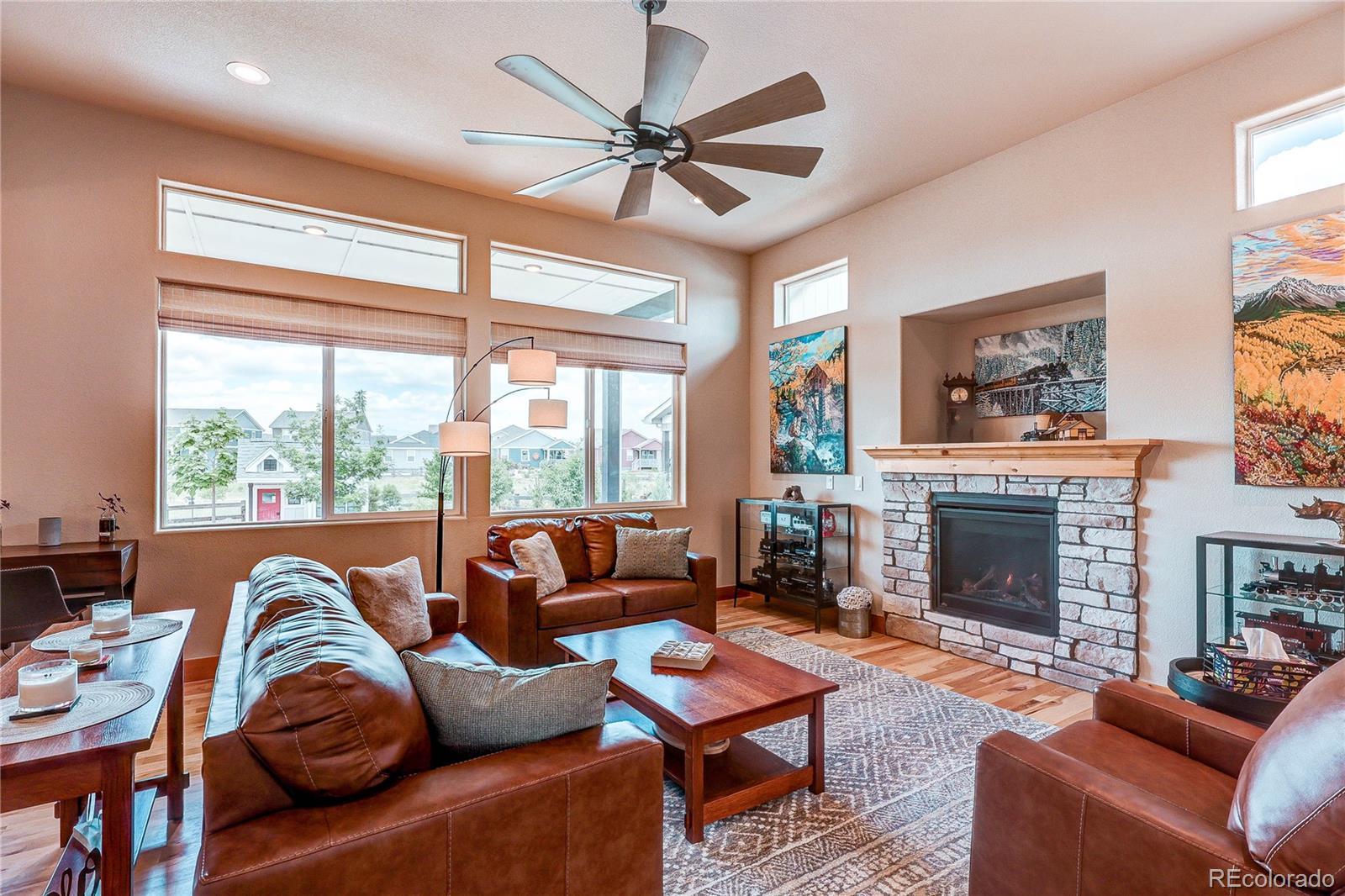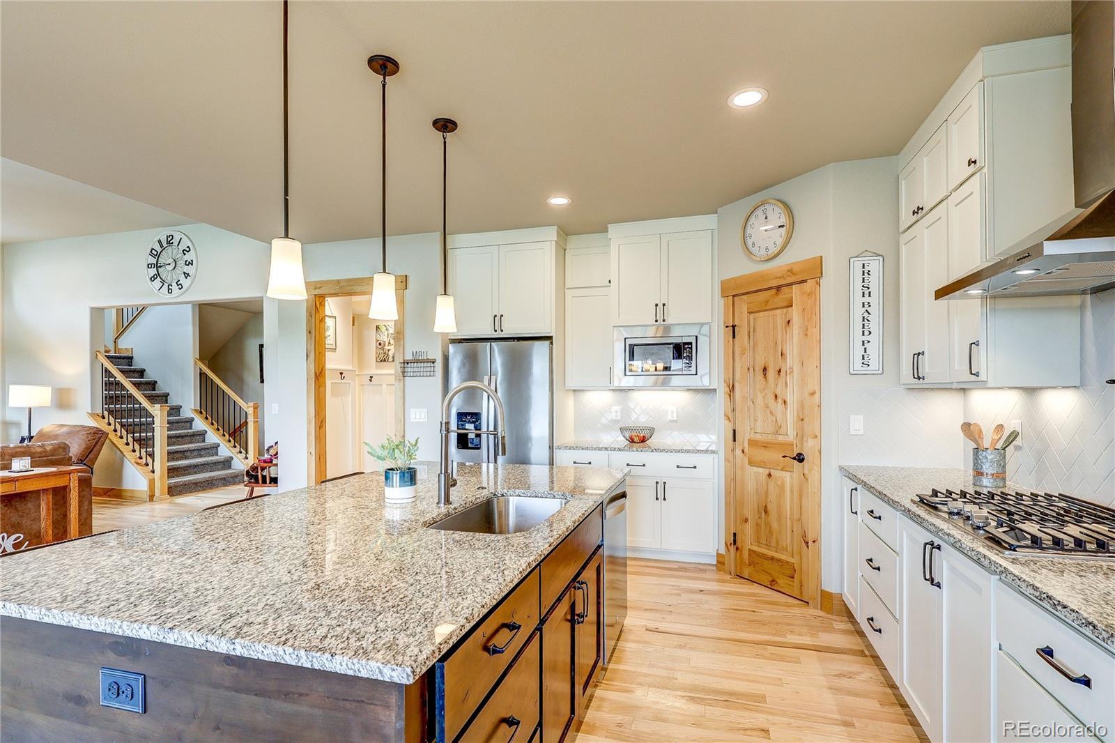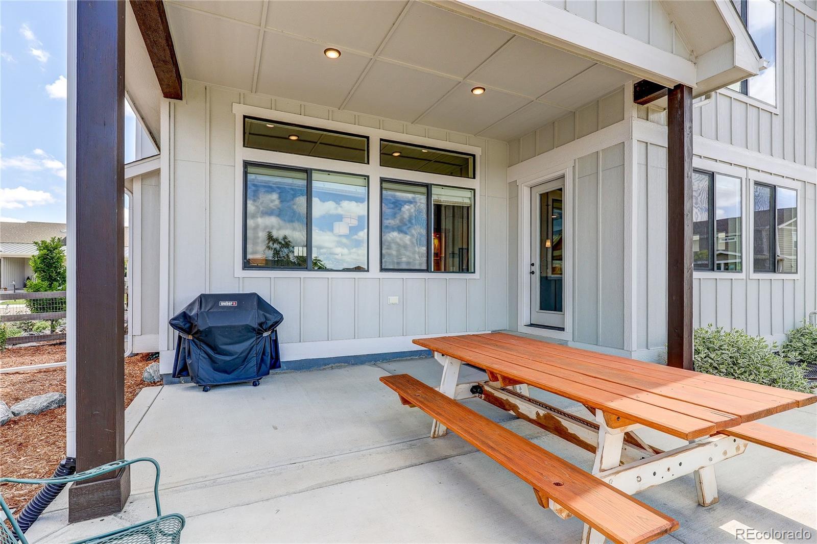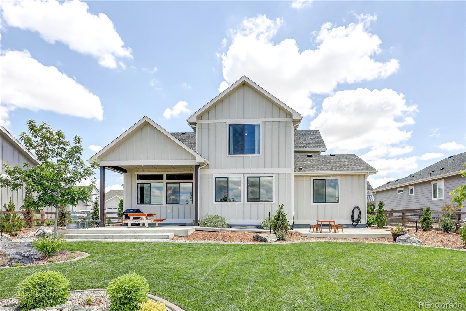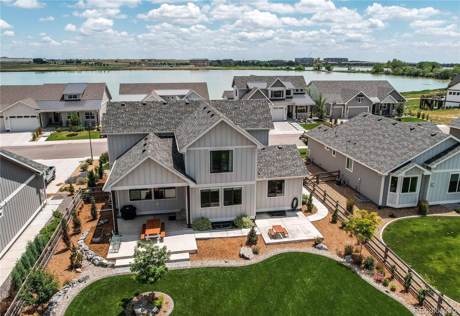 Smile, You're Home! Welcome to this stunning 2 story home situated on a large perfect lot backing to open space and walking trails. Enjoy views of Longs peak from your covered private back patio while surrounded by pristine landscaping and gardens. Be sure to check out the custom play house! Inside you'll love the open floor plan with a gourmet kitchen, features include; double ovens + microwave, huge kitchen island, a pot filler over the gas range, large pantry and 42" cabinets. The home also offers 2 main level bedrooms (one can be a private study or bedroom), an extensive mudroom area with custom hooks and cubbies, central gas fireplace and plenty of natural sunlight. Upstairs offers a master suite with beautiful bath and an extensive walk in closet, a loft area + 2 other large bedrooms and more of those stunning mountain views! The garage is nearly a 4 car in size, offering plenty of parking space and storage. Located near the lake, walking trails, schools, shopping and highway, this home is a must see!