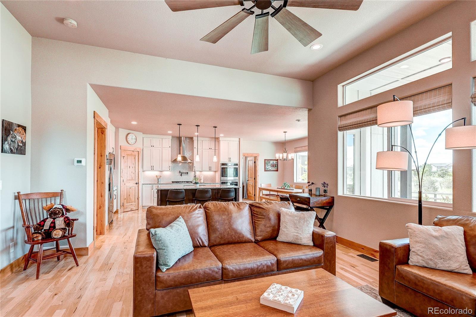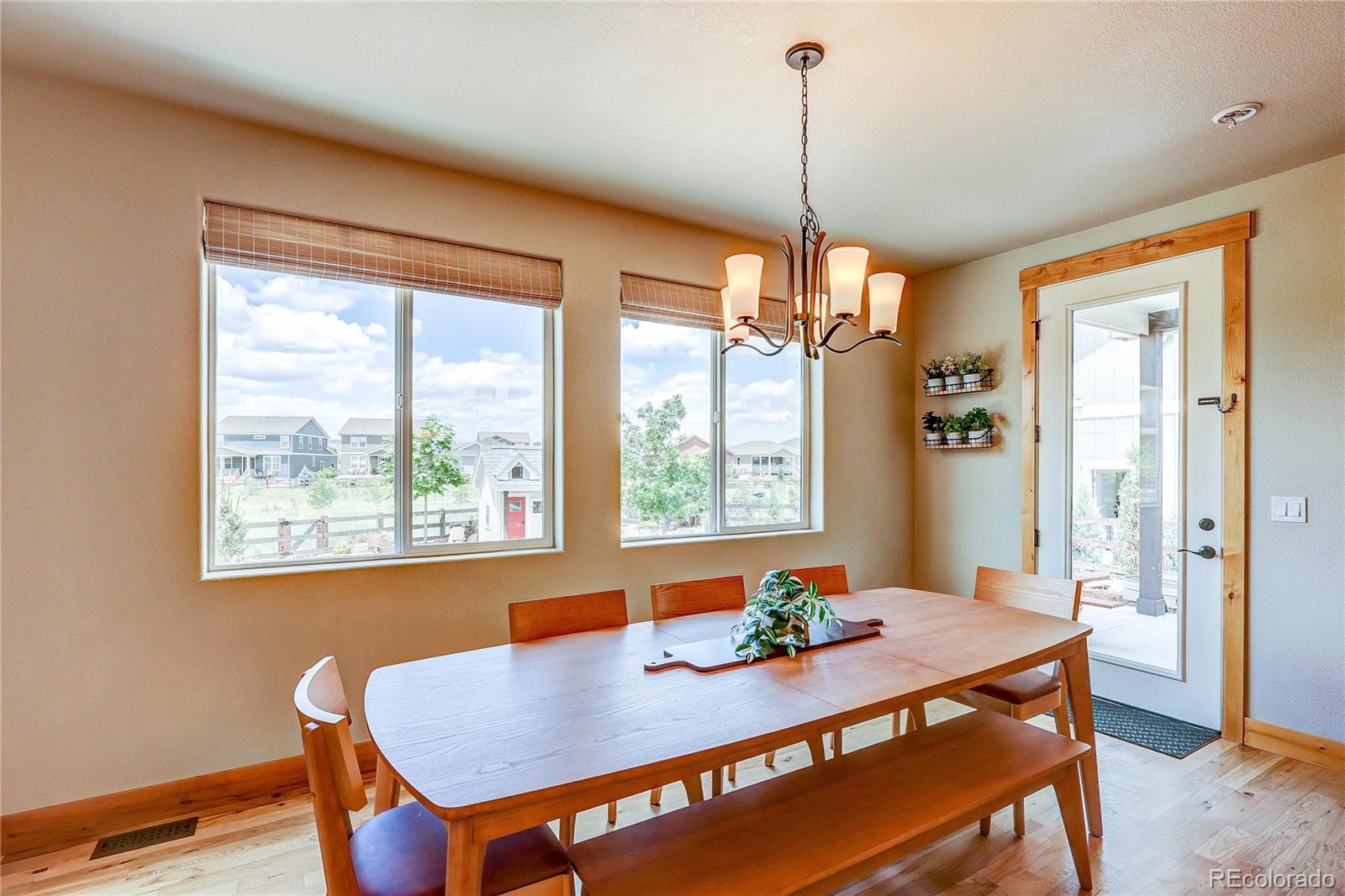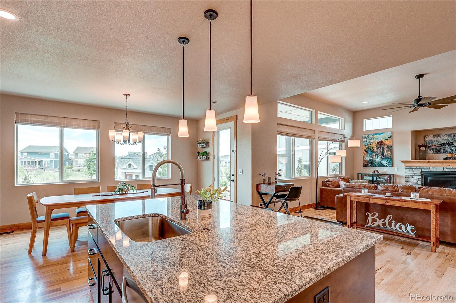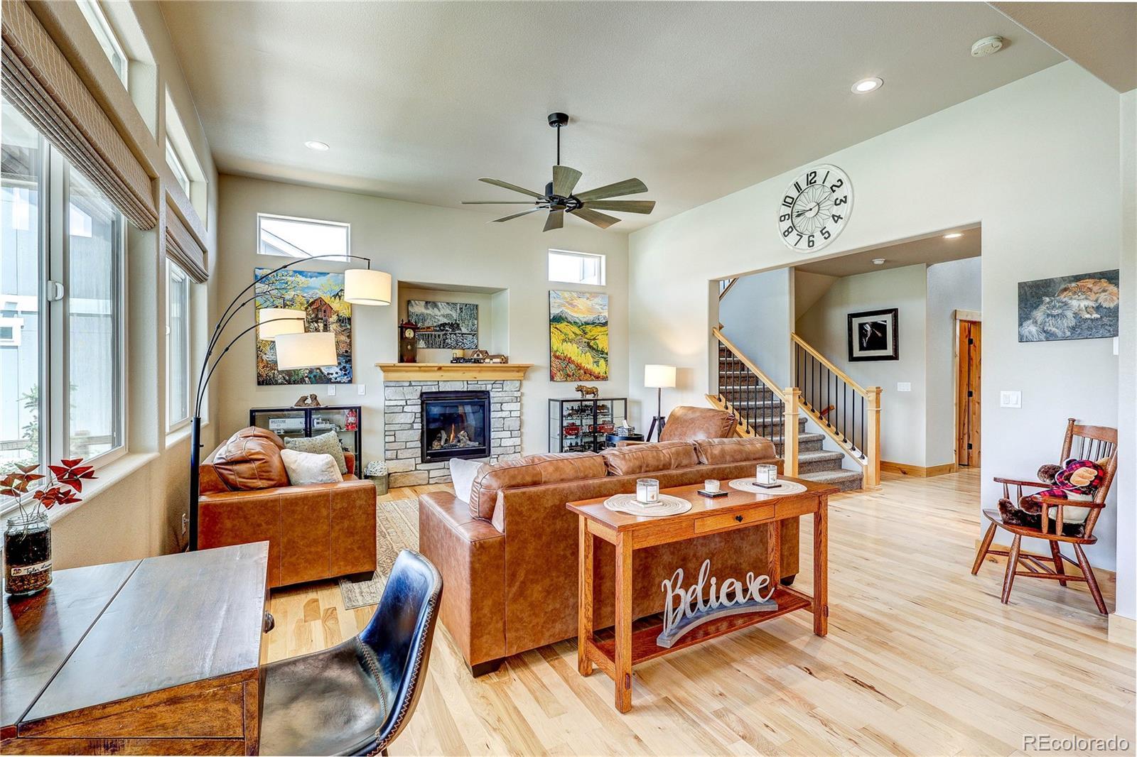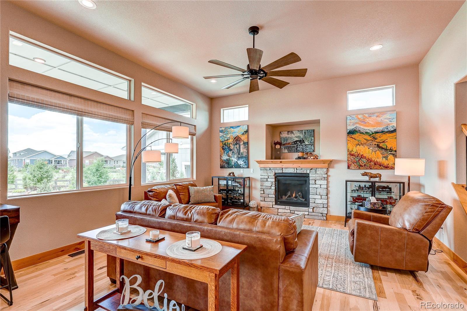 Smile, You're Home! Welcome to this stunning 2 story home situated on a large perfect lot backing to open space and walking trails. Enjoy views of Longs peak from your covered private back patio while surrounded by pristine landscaping and gardens. Be sure to check out the custom play house! Inside you'll love the open floor plan with a gourmet kitchen, features include; double ovens + microwave, huge kitchen island, a pot filler over the gas range, large pantry and 42" cabinets. The home also offers 2 main level bedrooms (one can be a private study or bedroom), an extensive mudroom area with custom hooks and cubbies, central gas fireplace and plenty of natural sunlight. Upstairs offers a master suite with beautiful bath and an extensive walk in closet, a loft area + 2 other large bedrooms and more of those stunning mountain views! The garage is nearly a 4 car in size, offering plenty of parking space and storage. Located near the lake, walking trails, schools, shopping and highway, this home is a must see!