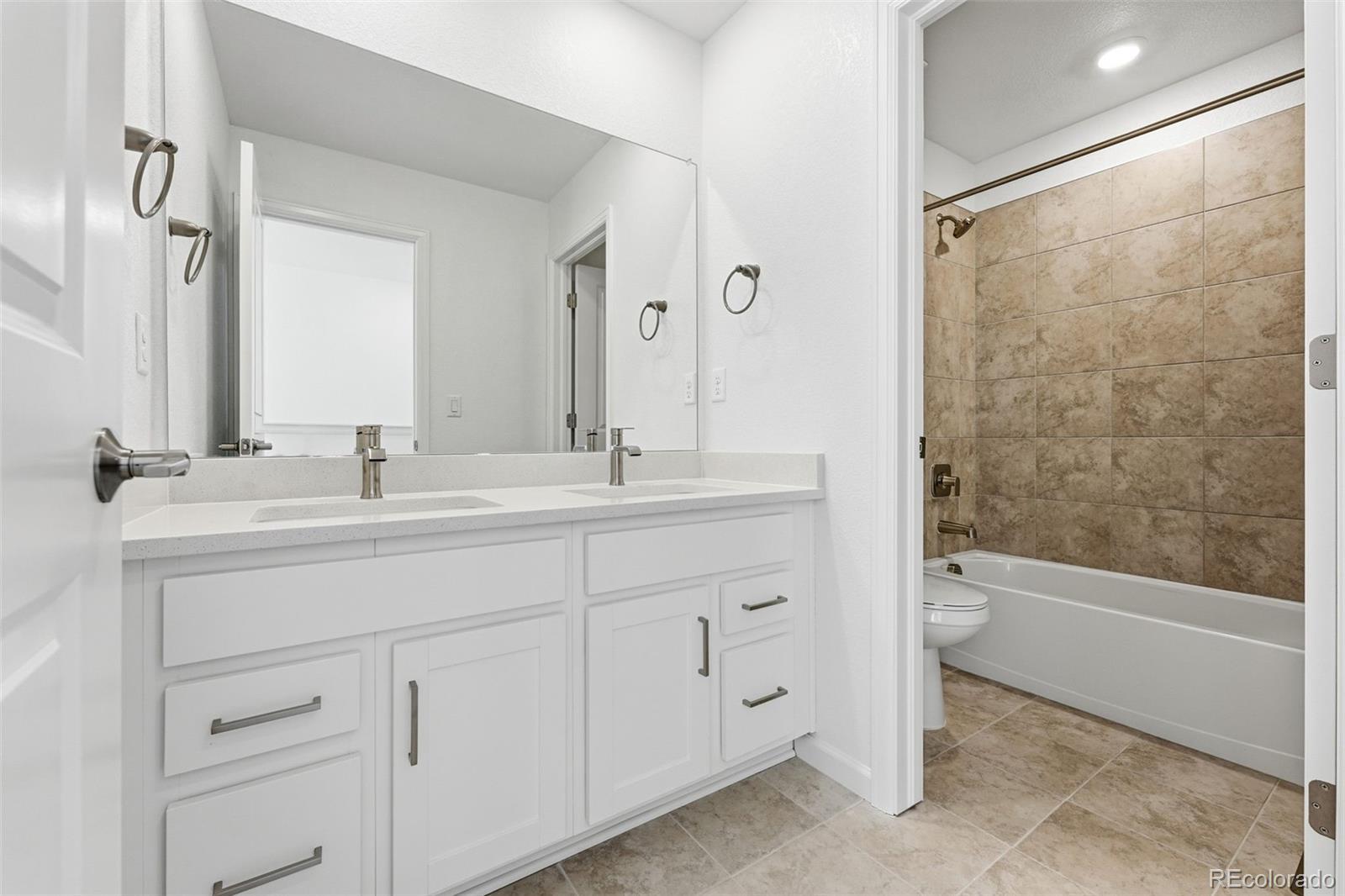What's Special: Greenbelt Lot | Covered Patio | Includes Backyard Landscaping. New Construction – Ready Now! Built by America's Most Trusted Homebuilder. Welcome to the Granby at 16468 W 92nd Place in Trailstone Town Collection! Welcome to the Granby, a charming two-story home designed with growing households in mind. The open kitchen, dining, and great room keep everyone connected, while the kitchen shines with a center island and large walk-in pantry. A first-floor flex space offers the ideal spot to work from home or customize to your lifestyle, and smart touches like a tech room off the kitchen and a drop zone by the garage make daily routines easier. Upstairs, the spacious primary suite includes two walk-in closets and a private bath with a dual sink vanity, walk-in shower, and extra linen storage. Three secondary bedrooms share a full bath, and a central laundry room and loft complete the layout. Set in Arvada, CO, Trailstone offers scenic views of Downtown Denver, the Rocky Mountains, and Standley Lake—just 15 miles from Boulder. Enjoy spacious backyards, beautiful surroundings, and exciting planned amenities like a pool and pickleball courts in this vibrant new community. Additional highlights include: covered back patio, and a door into the primary bathroom. MLS#6361122