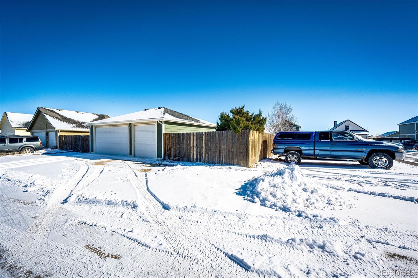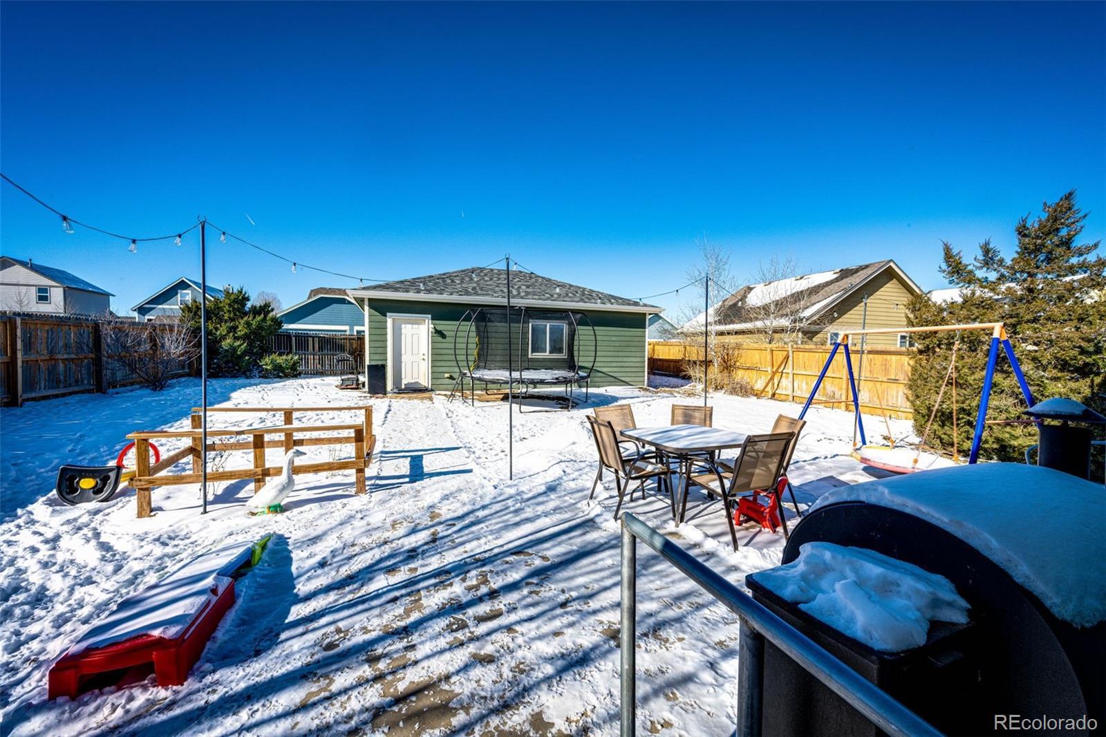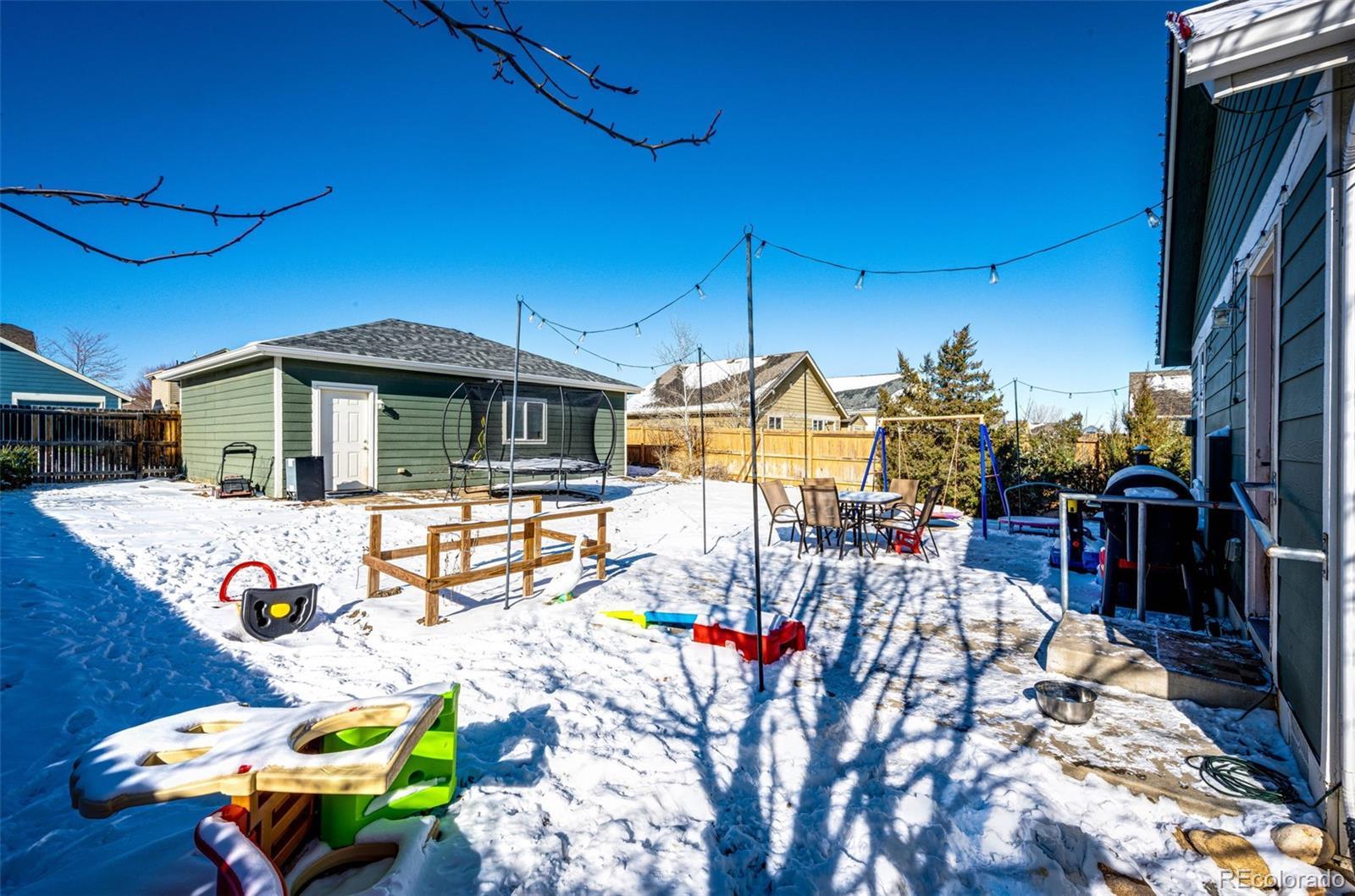 Charming 3-bedroom, 2-bath ranch-style home situated on a desirable corner lot in a quiet Strasburg neighborhood. This inviting property features a covered wraparound front porch, a spacious 3-car detached garage, and excellent curb appeal with a newer roof and exterior paint. Inside, enjoy an updated kitchen and new flooring in the kitchen and entry, along with a new central air unit for year-round comfort. The HOA covers year-round maintenance of the front yard, alleys, and public areas. The neighborhood offers a community park and swimming pool, and is conveniently located near schools, shopping, and restaurants. Easy access to I-70 makes commuting a breeze, just 30 minutes to Downtown Denver and 30 minutes to DIA.
