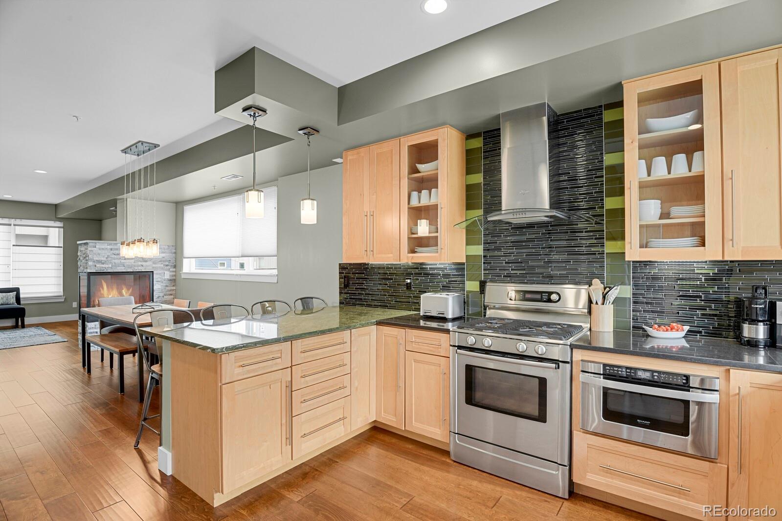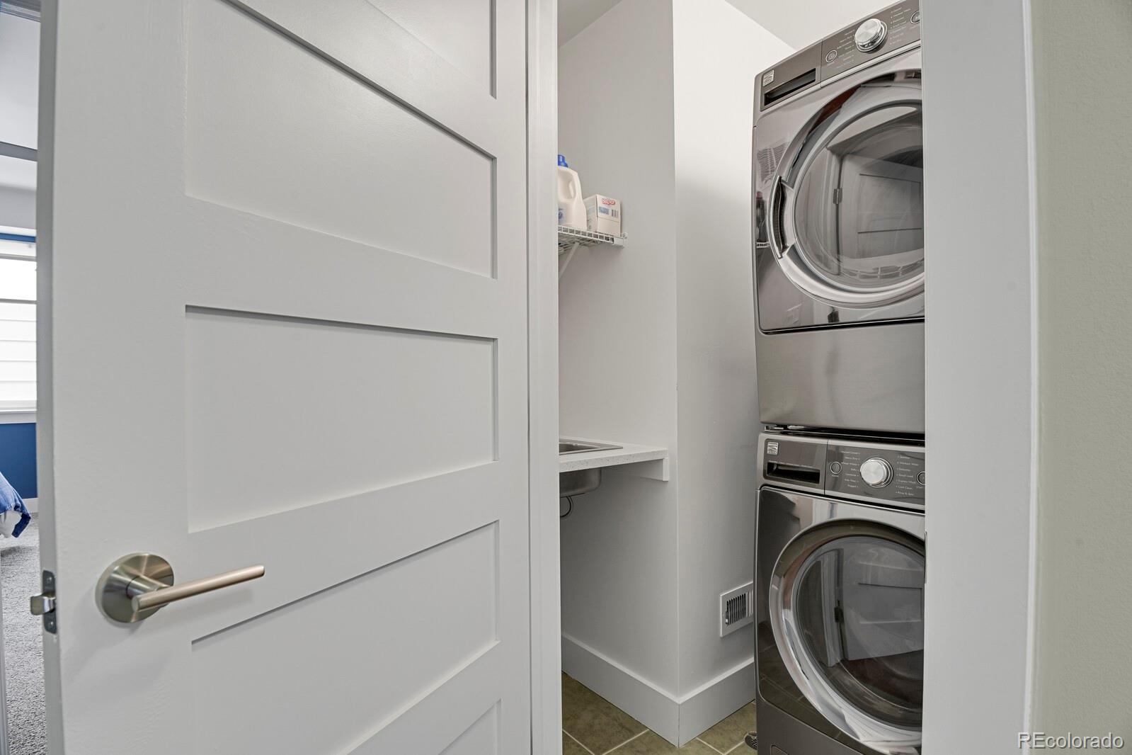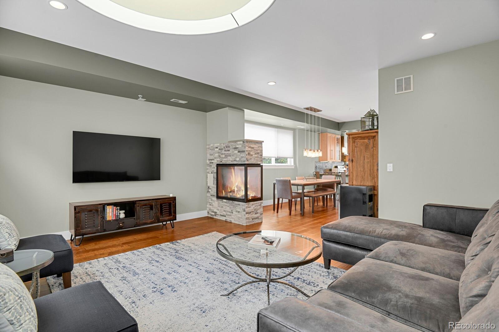 Welcome to this stylish, urban-contemporary townhome in the heart of Jefferson Park! Built in 2013, this beautifully finished 3-bed / 3.5-bath home spans nearly 1,900 sq ft of modern living space across three levels. The entry level offers a private ensuite bedroom and access to the attached 2-car garage—perfect for guests or a quiet home office. Upstairs, the open-concept main level features rich hardwood floors, a spacious living area with gas fireplace, dining space, and a gourmet kitchen featuring sleek countertops, high-end Bosch appliances, beautiful tile work, and sleek cabinetry w/ample storage space - ideal for culinary enthusiasts. Also we have a private balcony off the kitchen area ideal for morning coffee or summer grilling. Note, the convenient powder room to complete this level. The top floor boasts a luxurious primary suite with a spa-like 5-piece bath and an oversized walk-in closet. There’s also a third bedroom with its own walk-in closet and full bath. This floor also features an in-unit laundry area for your ultimate convenience. Finally….Enjoy Denver’s sunshine and skyline views from your private rooftop deck (24” x 17”) — plumbed for a gas grill and perfect for rooftop entertaining, city scape viewing or relaxing at sunset. Located steps from Jefferson Park’s restaurants, cafes, and shops, and minutes from downtown, LoHi, and Empower Field. Low-maintenance living meets modern design—this one has it all!