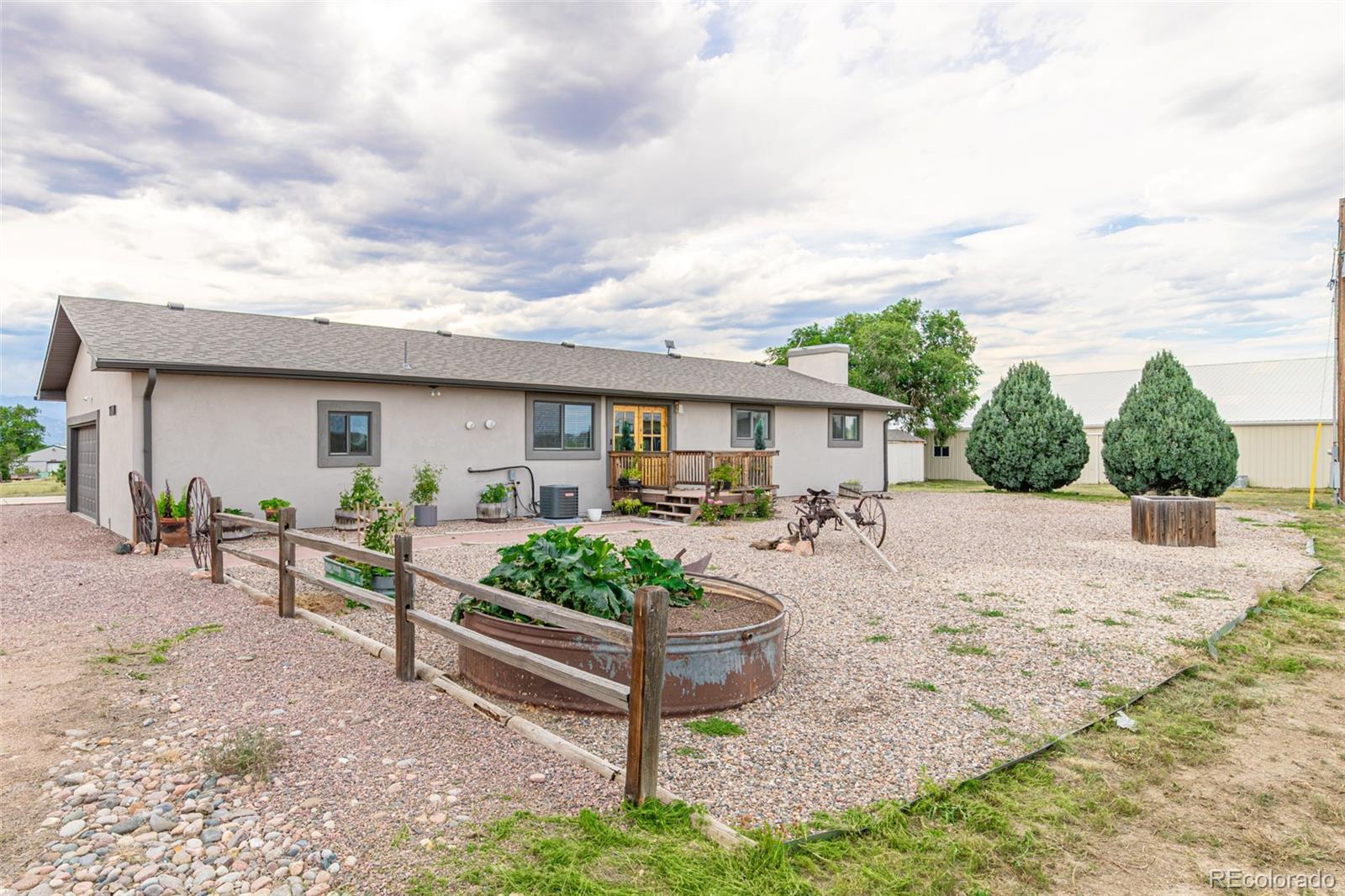 Peaceful Valley Lake Estates is one of the best kept secrets in Colorado Springs! This large 5.64 acre lot in is ready for new owners. This home has been completely remodeled with tons of upgrades inside and out. Check out the Floor plan in the photos! You will fall in love with the Ranch Style, open concept and large bedrooms on the main level. Walking into the home we hope you will be instantly impressed with the brand new front doors, beautiful floors, tall ceilings, lots of natural light, Air Conditioning and open floor plan. The kitchen has an oversized granite island, newer appliances, double oven, two pantries and it's wide enough for more than one chef to cook at a time! The dining room is perfectly placed with a door to the fenced in backyard. The patio has a pergola and hot tub! The main floor has Updated bathrooms, flooring throughout and brand new carpet in all the well sized bedrooms with spacious closets. The Master bathroom was designed with you in mind. Modern, clean and spa like! Head down to the basement and you'll never want to leave. Three large bedrooms with another great open concept space to relax in. The gas fireplace creates a cozy feel yet the basement is full of light and even has a door to the backyard. Plumbing rough outs if you'd like to add a kitchenette. Zoned for horses, this property has a large 60x60 Pole Barn, Storage Shed, 40x15 Loafing Shed, large bougee Chicken coop and a shooting berm! Located in South Colorado Springs near Fountain and our military bases there is a quick commute to I25. Homes don't come up for sale in Peaceful Valley Lake Estates often so come see it today!