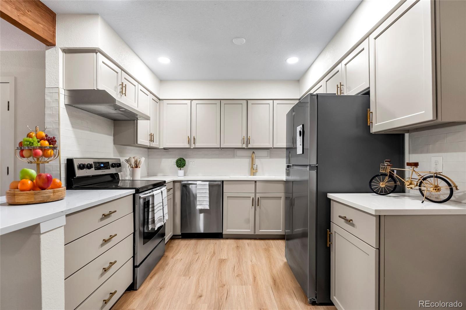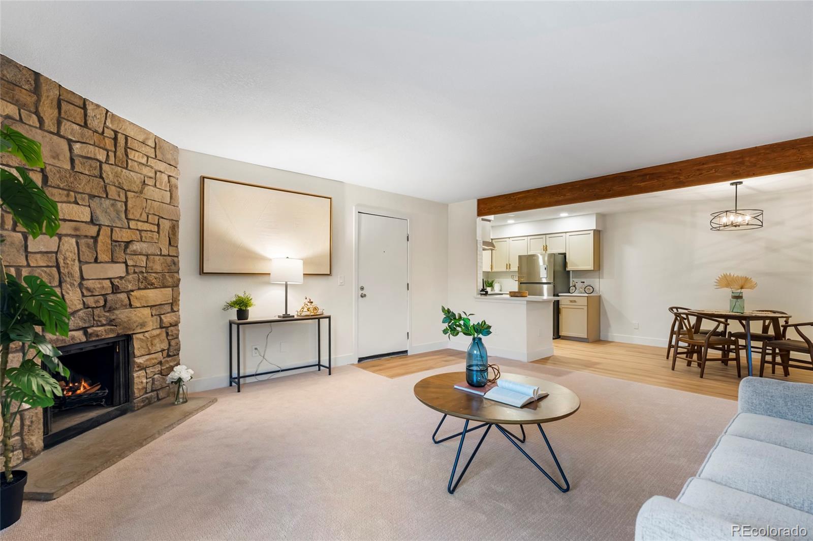 Welcome to this beautifully remodeled first-floor property in the heart of Lakewood, offering 1,174 square feet of stylish and comfortable living space. This 2-bedroom, 2-full-bath condo is the perfect blend of modern upgrades and cozy charm. Step into the spacious open-concept layout featuring brand-new stainless steel appliances, updated cabinetry, and contemporary finishes throughout. The living area is warm and inviting with a wood-burning fireplace, perfect for those cozy Colorado evenings. Just off the living room, enjoy your own private balcony, ideal for morning coffee or relaxing in the fresh air. The generously sized bedrooms offer great closet space, while both full bathrooms have been tastefully renovated. You’ll also love the in-unit laundry for added convenience. Situated close to the mountains, trails, and parks, this condo is perfect for outdoor lovers. Plus, the community offers a refreshing pool—just in time for summer fun. Don’t miss this move-in-ready gem in a prime Lakewood location!