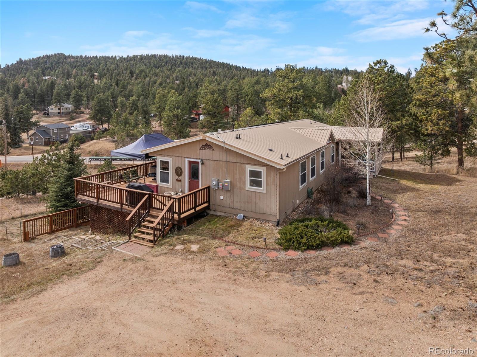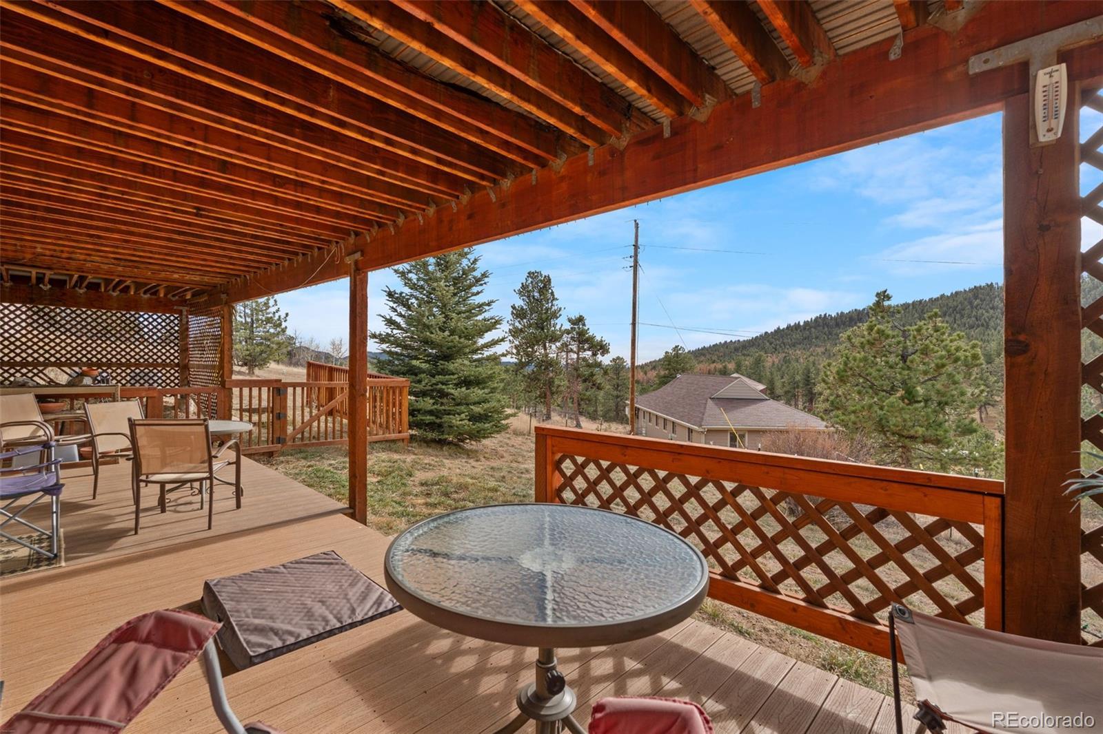 **OPEN HOUSE SAT, NOV 22, 12-2 PM!** An unmatched value in Mountain View Lakes offering space, flexibility, and accessibility! Picture yourself returning from a day in the mountains and stepping into this inviting ranch-style home in Mountain View Lakes, where comfort, sunlight, and effortless main-level living come together. With four bedrooms, three bathrooms, and over 3,100 sq. feet of living space, the bright kitchen is a highlight with warm maple cabinets and a full suite of stainless steel appliances that make everyday cooking a pleasure. The layout flows easily into bright living and dining spaces that open to a sunny deck perfect for morning coffee or evening stargazing. The home includes a generous primary suite complete with 5-piece bathroom. The walkout basement adds valuable flexibility featuring a large family room with a gas stove for cozy winter evenings, a private bedroom and bathroom, and the potential for house-hacking or multigenerational living. A well-appointed laundry room offers convenience and storage. Outside, the 24'x24' detached garage with carport provides excellent parking and workspace. A durable metal roof paired with a newer solar panel system promotes energy efficiency and long-term savings. This property feels private yet remains incredibly accessible thanks to its quick connection to Highway 285 creating a location that blends outdoor recreation with everyday convenience. The property 4 minutes to Elk Creek Elementary School, 6 minutes to Staunton State Park, 11 minutes to Conifer Safeway, 1 hour to Denver International Airport, and 1 hr 30 minutes to Breckenridge. With exceptional square footage at this price and room to grow, this home invites you to settle in and start living the mountain lifestyle you've been dreaming of. Schedule your showing now; you could be moving in just in time for the new year!