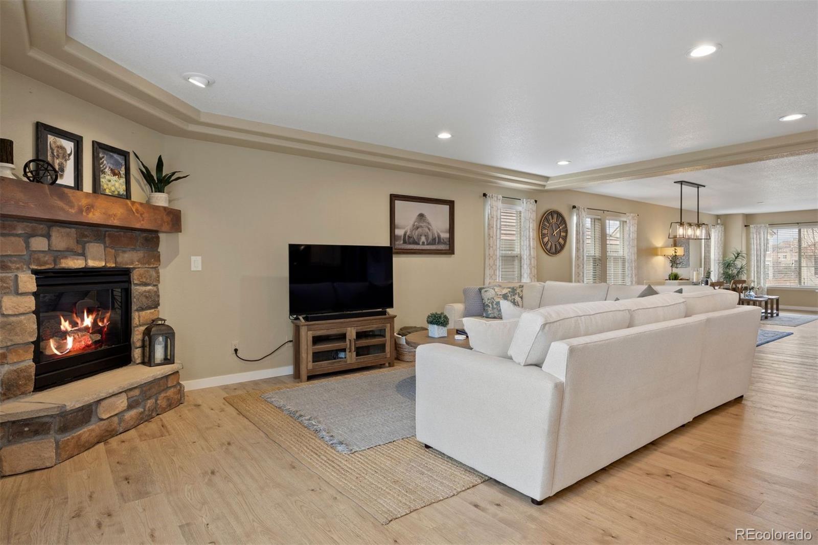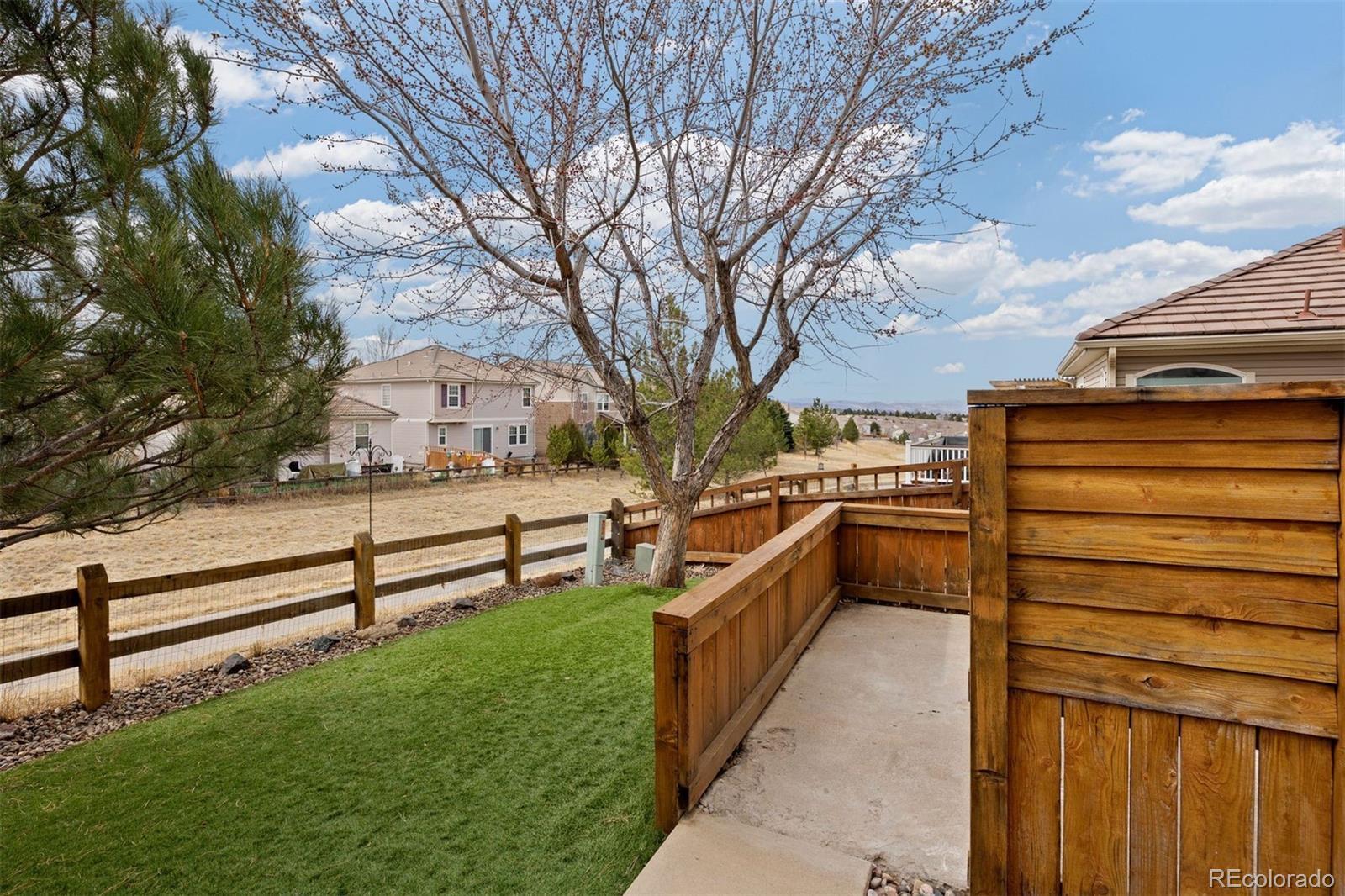 This exceptional 2 story home in The Meadows shows like a brand new home! The pride of ownership is evident; and you will love the peaceful trail and open space behind the home with mountain views to the northwest. The Meadows in Castle Rock has excellent amenities with parks, pool and tennis at the nearby Grange. This home has generously sized rooms, an open floorplan and a 3 car tandem garage. New carpet was installed in the upstairs just 2 years ago. There is fresh paint in most of the home and all the plumbing and fixtures have been replaced. The main floor has a living room, dining room, family room and kitchen with granite and stainless appliances. The flooring on the main level is all luxury vinyl plank (LVP). Upstairs you’ll love the sizeable loft and the elegant primary suite with more mountain views. The primary bath has brand new tile, subfloor and glass shower enclosure. Each bedroom on the second level has its own walk-in closet. The basement is unfinished and a great opportunity to create extra living space or storage. The back yard features a patio and a stylish pergola and low maintenance turf yard.
