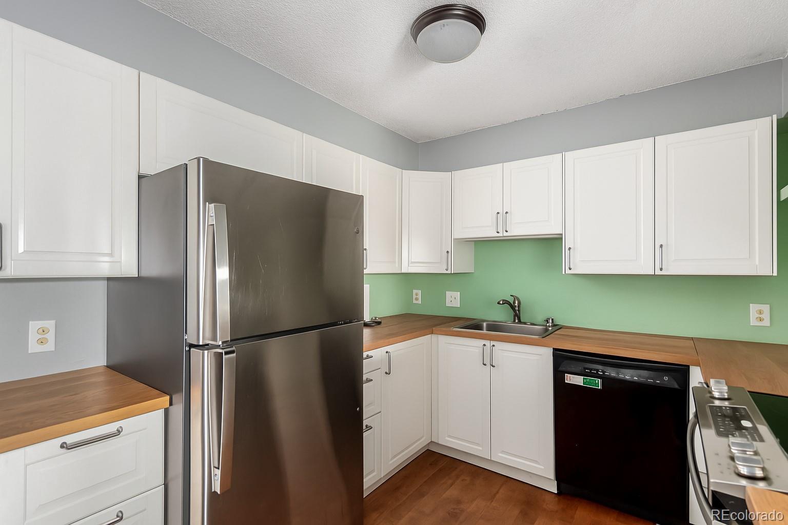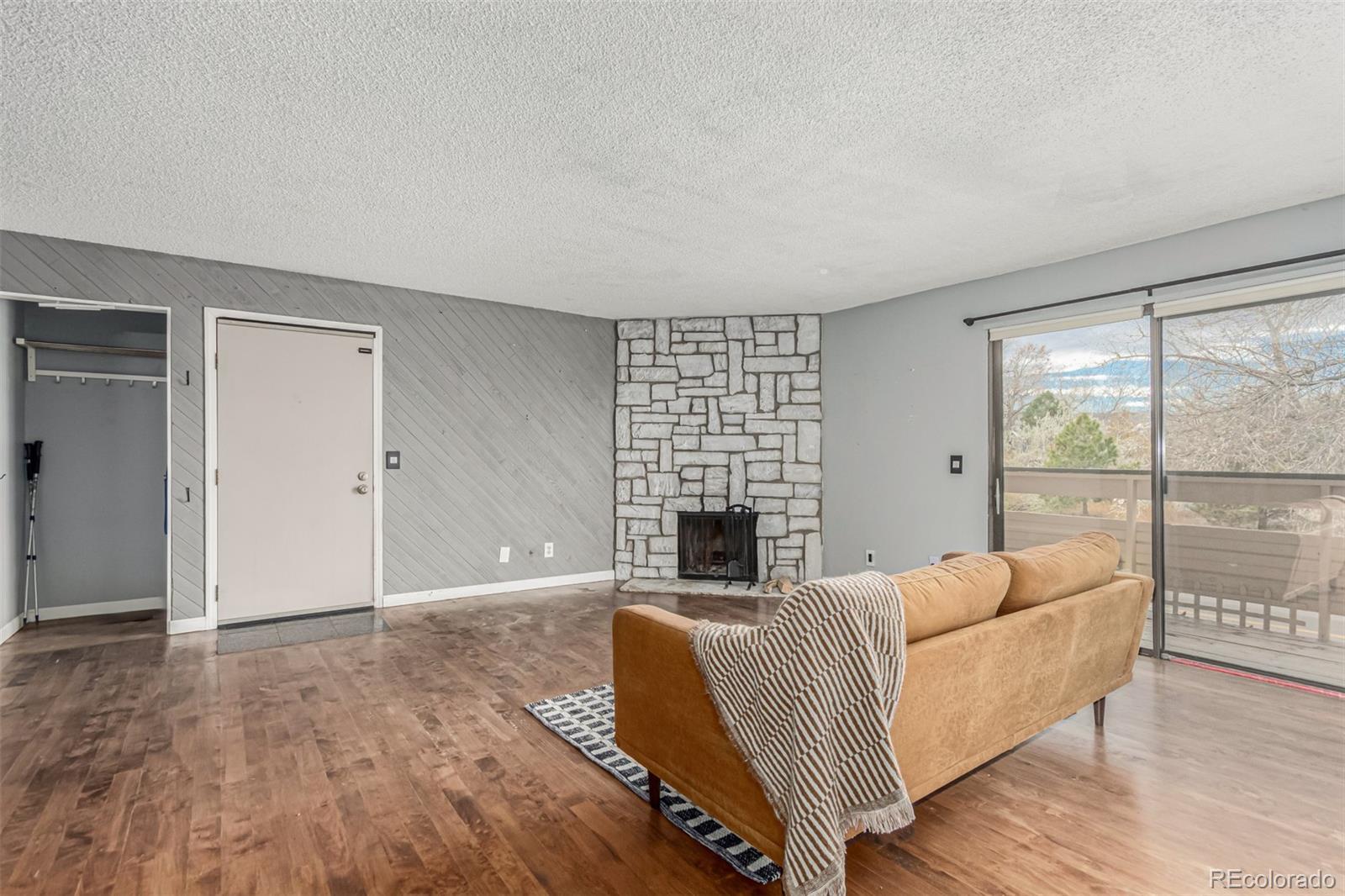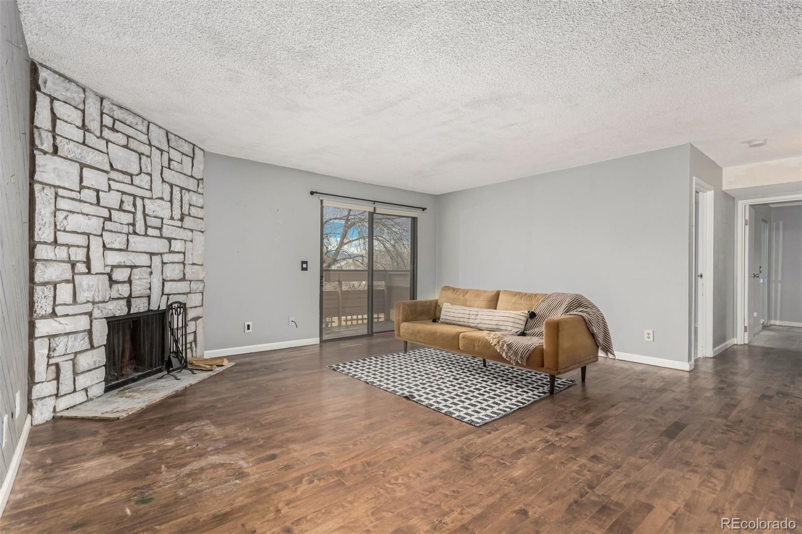 Welcome to Snowbird Condos! This spacious 2-bedroom, 2-bathroom second-floor unit offers incredible potential in one of Lakewood's quietest and most convenient neighborhoods. With generous square footage, a functional layout, and solid updates already completed, this home is ready for your finishing touches. Step inside to an open-concept living and dining area featuring hardwood floors, a cozy fireplace, and a full accent wall that adds character and warmth. The sliding glass door leads to a private covered balcony, perfect for morning coffee, fresh air, or unwinding after a long day while overlooking mature trees. The kitchen features white cabinetry, butcher-block countertops, stainless steel refrigerator, dishwasher, and a modern range hood. With plenty of storage and an easy flow into the dining area, it’s a great space whether you're cooking at home or entertaining. The primary bedroom is oversized with an attached bathroom and large custom closet, while the second bedroom makes an ideal guest room, office, or roommate setup. Both bathrooms offer ample counter space and storage. Additional highlights include: • In-unit laundry • Reserved parking • Quiet, well-kept community • Close to parks, walking paths, shopping, and commuter routes Whether you're a first-time buyer, investor, or someone looking to customize a space to your style, this Snowbird condo offers value, versatility, and a wonderful location. Don’t miss this opportunity!