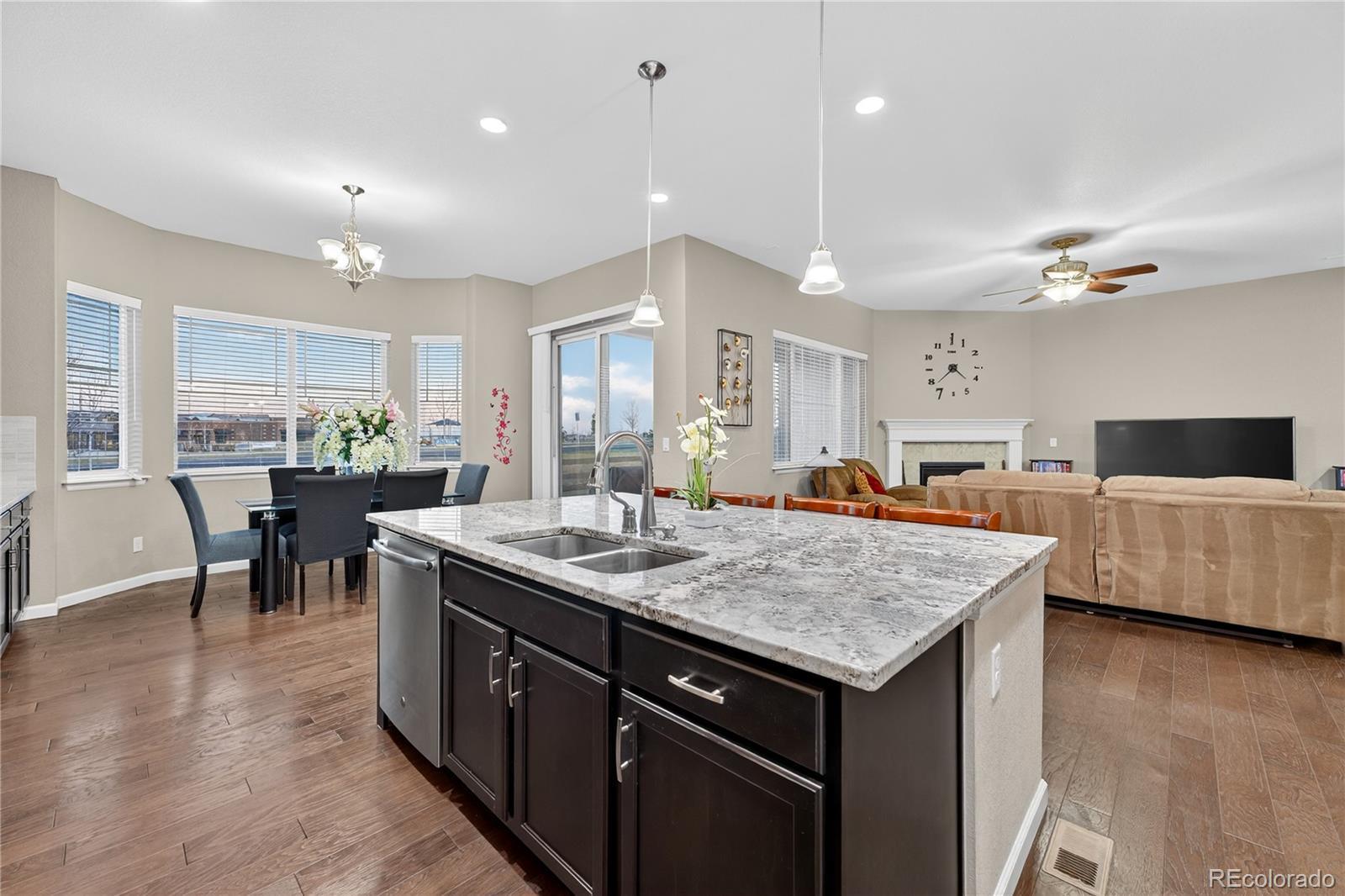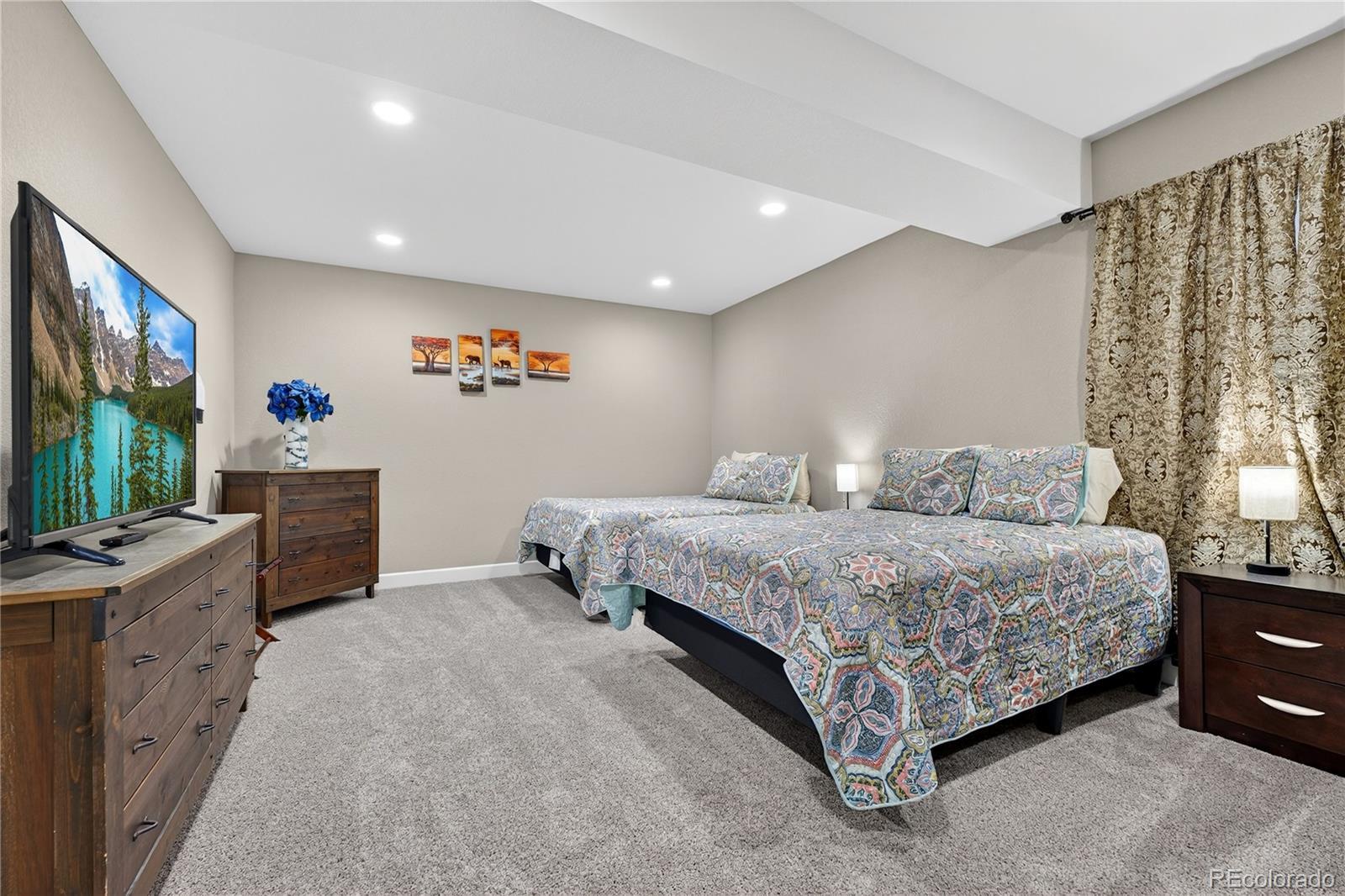 Save 1% on loan interest rate the first year! Modern ranch with main floor primary bedroom in Cherry Creek schools! This Southshore home offers thoughtful design, modern comfort, and an unbeatable location near parks, golf courses, schools and shopping. Located within a quiet neighborhood in a cul-de-sac with 3-car garage, 4-bedroom, single-family residence offers the perfect blend of style, functionality, and everyday luxury. Step inside to an inviting living room featuring a tray ceiling, a striking fireplace, and durable wood-style flooring. It’s the perfect setting for gatherings or relaxing evenings at home. The chef’s kitchen is beautifully appointed with stainless steel appliances, stone countertops, a large island, and designer-updated finishes. An adjacent dining space bathed in natural light creates a seamless flow for entertaining. The main-level primary suite is a true sanctuary with a raised ceiling, soft carpeting, and an elegant ensuite bathroom featuring a spa-like shower, extensive vanity storage, and a spacious walk-in closet. The fully finished basement with 2 additional bedrooms expands your living space with a playroom, billiards area, and a Scandinavian wet sauna—ideal for unwinding after a long day or during Colorado’s colder months. Outside, you’ll find a private backyard retreat complete with an extended patio, outdoor lounge area, and a rotary sprinklers system in both the front and back yards, perfect for easy lawn maintenance. The property also includes outdoor lighting and self-managed 9 security outdoor camera system for added peace of mind. Additional highlights include a finished 3-car garage, the third bay set up as the perfect workshop—complete with a TV. This lovely home backs to a low-traffic road, offering convenience without compromising tranquility. Aside from brief school pick-up/drop-off activity, the area is peaceful and quiet throughout the day. Don’t miss your chance to own this exceptional Southshore home!