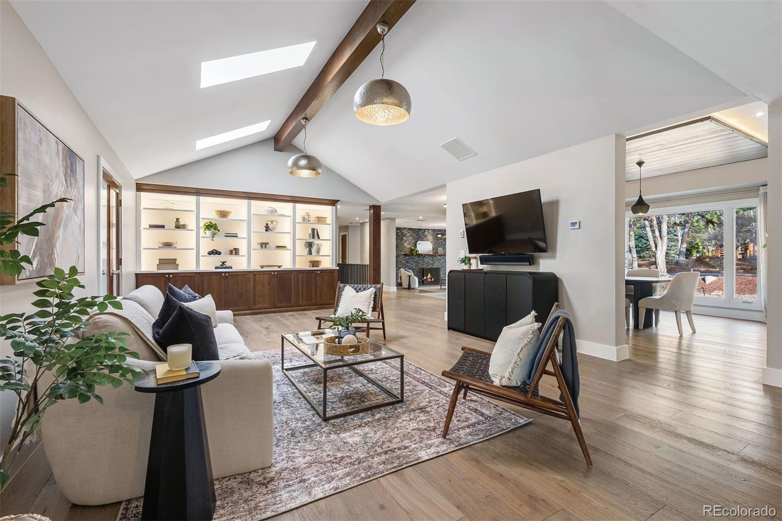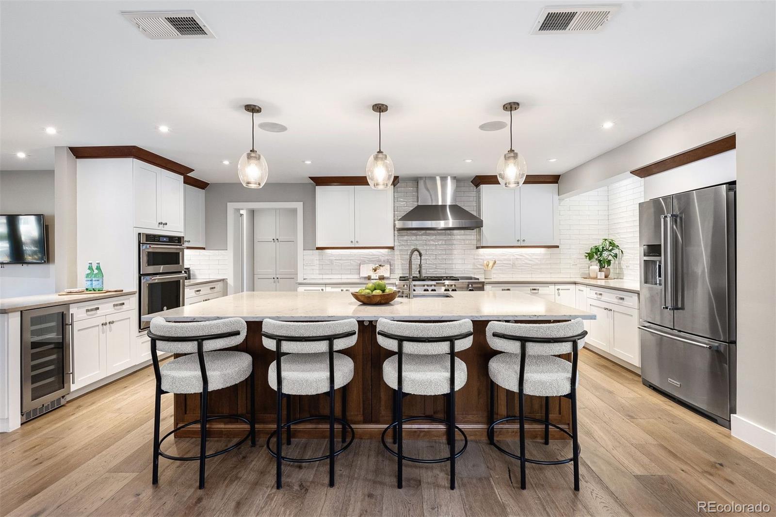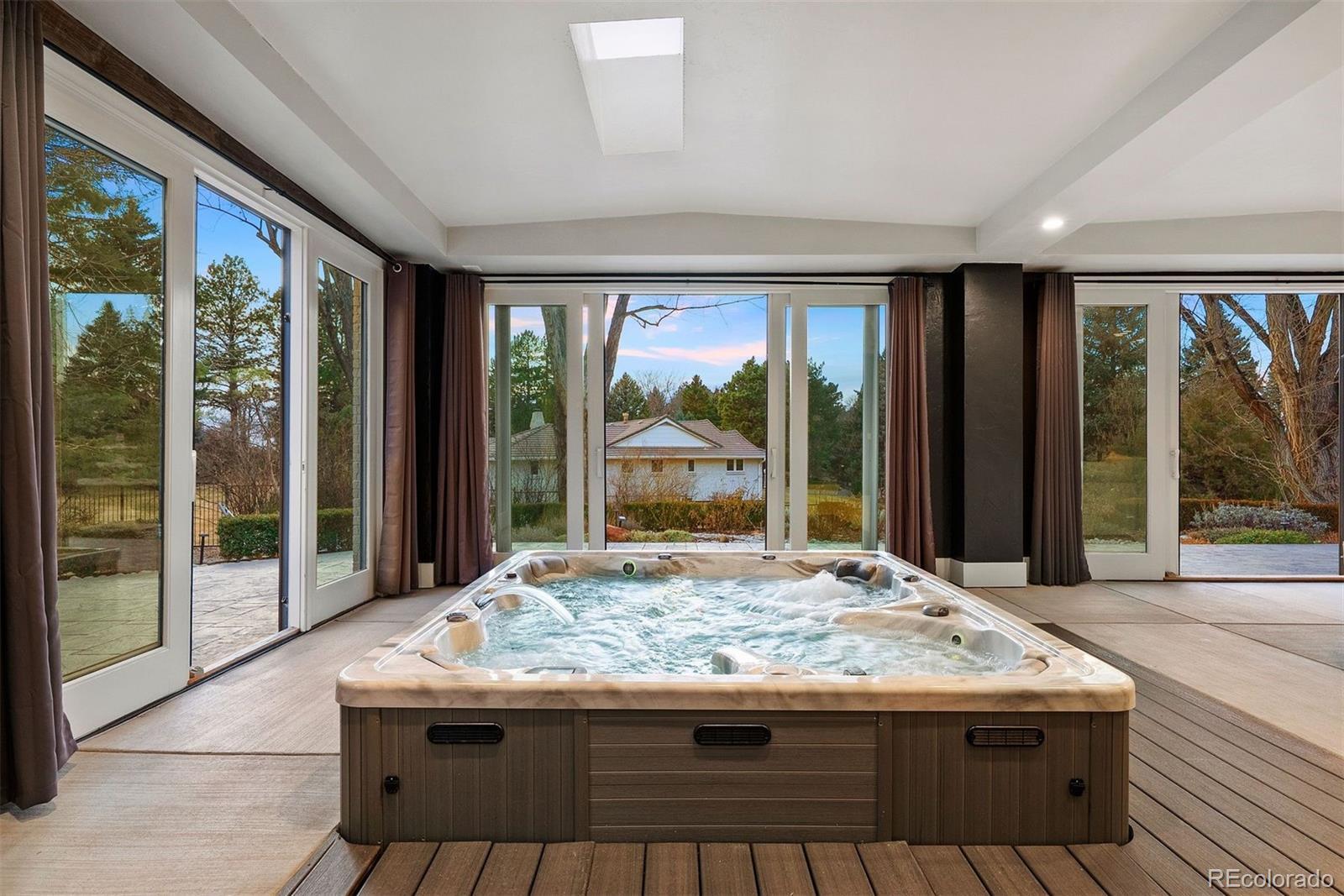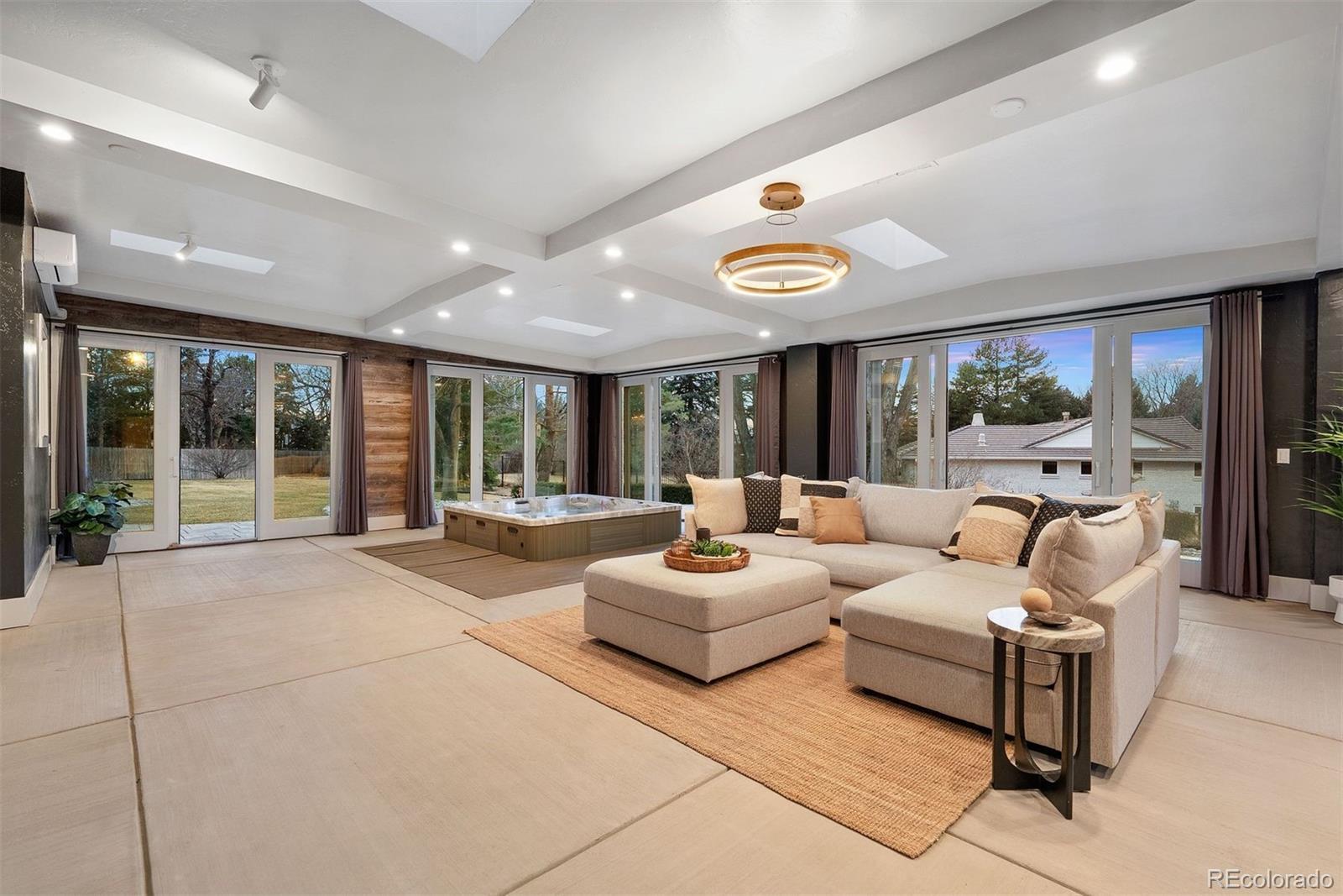 Completely remodeled from top to bottom in 2018, this thoughtfully reimagined ranch in coveted Cherry Hills Village offers exceptional scale, versatility, and design on a beautifully landscaped .75-acre lot. The floorplan is intentionally flexible, designed to adapt to a wide range of lifestyles. A circular drive, expansive driveway, and 3-car garage provide abundant parking and an impressive arrival. At the center of the home, the kitchen opens to both a breakfast nook and formal dining space, flowing seamlessly into three expansive main-floor living areas offering room to gather and entertain. The sellers’ favorite space, and one of the home’s most unique features, is the fully conditioned 1,200-square-foot sunroom. Heated and cooled with mini splits for year-round comfort, this bright, above-grade flex space lives like a finished lower level, but with sunshine. Envision a game room with pool table and foosball, an entertainer’s lounge with bar seating, a playroom, art studio, golf simulator, or additional living retreat. A hot tub is currently in place (and can be removed), and the sellers are offering a flooring allowance so the next owner can tailor the space to their vision. Four bedrooms, five bathrooms and laundry are all located on the main level, creating rare single-level livability. The primary suite is a true retreat, featuring dual walk-in closets and a spacious bath designed for comfort and functionality. The light and bright garden-level basement continues the theme of flexibility with a spacious family room and wet bar complete with dishwasher and wine refrigerator, an additional bedroom, 3/4 bath, and a dedicated gym that could easily convert to a sixth bedroom if desired. Outdoor living is equally inviting, with stamped concrete patios and generous yard space offering room to host, play, or simply enjoy the privacy of the .75-acre setting. Major systems have been thoughtfully updated, including a new boiler and tankless hot water heater.
