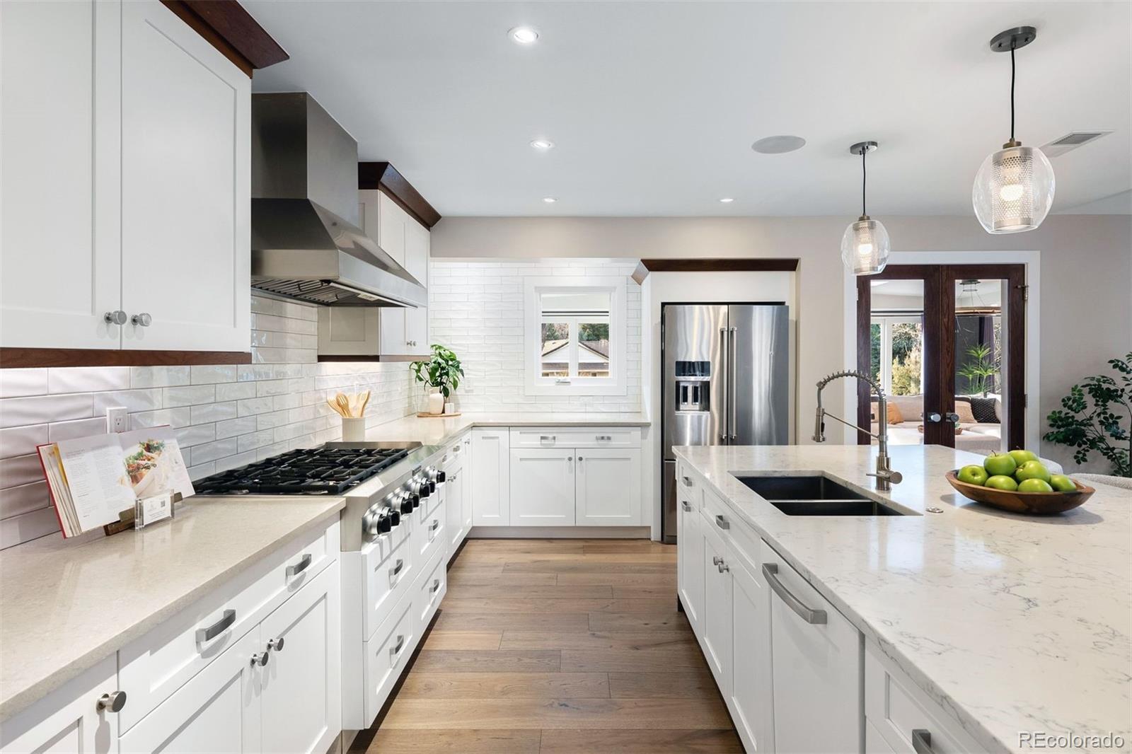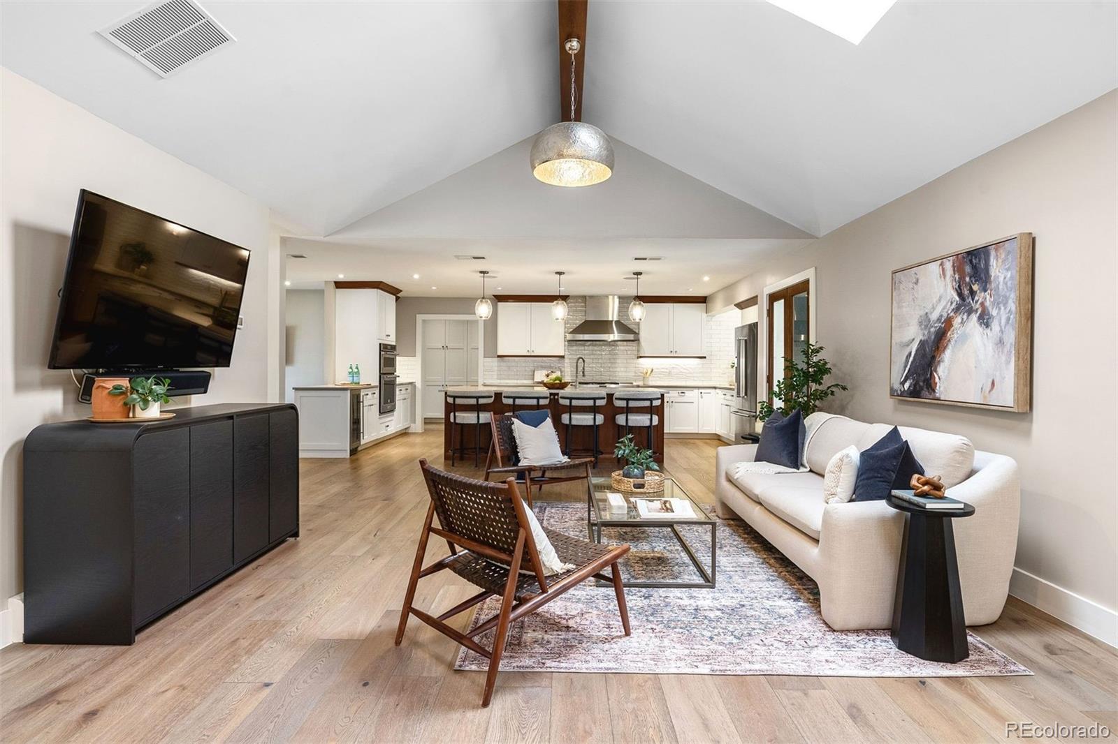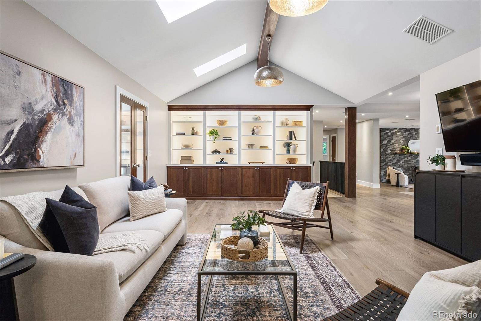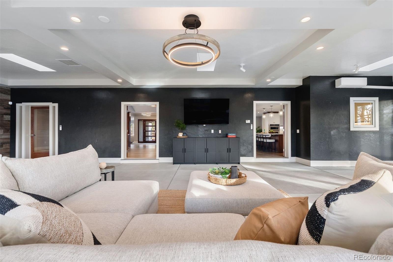Completely remodeled from top to bottom in 2018, this thoughtfully reimagined ranch in coveted Cherry Hills Village offers exceptional scale, versatility, and design on a beautifully landscaped .75-acre lot. The floorplan is intentionally flexible, designed to adapt to a wide range of lifestyles. A circular drive, expansive driveway, and 3-car garage provide abundant parking and an impressive arrival. At the center of the home, the kitchen opens to both a breakfast nook and formal dining space, flowing seamlessly into three expansive main-floor living areas offering room to gather and entertain. The sellers’ favorite space, and one of the home’s most unique features, is the fully conditioned 1,200-square-foot sunroom. Heated and cooled with mini splits for year-round comfort, this bright, above-grade flex space lives like a finished lower level, but with sunshine. Envision a game room with pool table and foosball, an entertainer’s lounge with bar seating, a playroom, art studio, golf simulator, or additional living retreat. A hot tub is currently in place (and can be removed), and the sellers are offering a flooring allowance so the next owner can tailor the space to their vision. Four bedrooms, five bathrooms and laundry are all located on the main level, creating rare single-level livability. The primary suite is a true retreat, featuring dual walk-in closets and a spacious bath designed for comfort and functionality. The light and bright garden-level basement continues the theme of flexibility with a spacious family room and wet bar complete with dishwasher and wine refrigerator, an additional bedroom, 3/4 bath, and a dedicated gym that could easily convert to a sixth bedroom if desired. Outdoor living is equally inviting, with stamped concrete patios and generous yard space offering room to host, play, or simply enjoy the privacy of the .75-acre setting. Major systems have been thoughtfully updated, including a new boiler and tankless hot water heater.