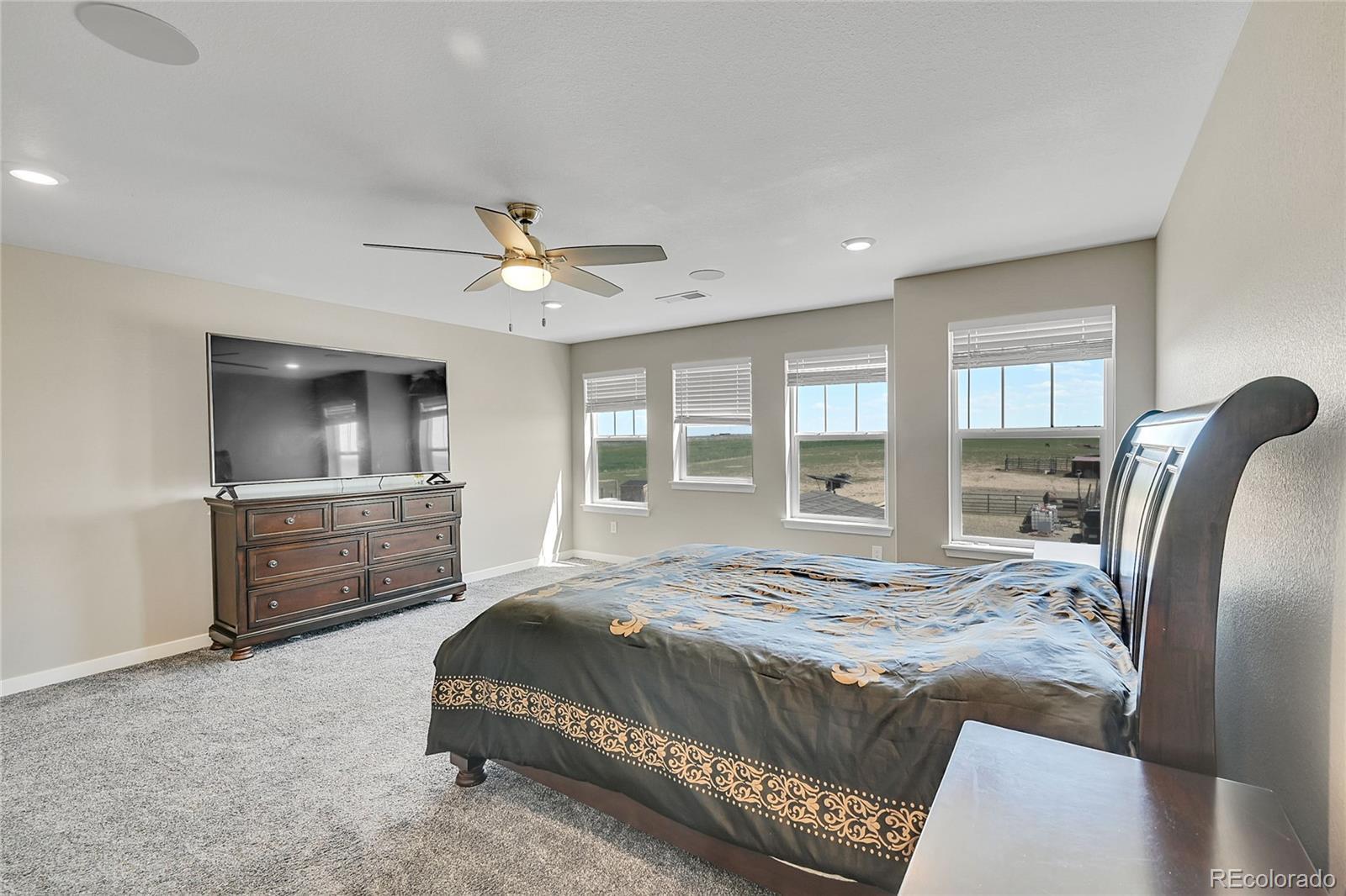 This stunning 19-acre property in Bennett, CO offers the perfect blend of modern luxury and rural living—just minutes from town and with no HOA restrictions. The 6-bedroom, 6-bathroom home with an office features a sleek, contemporary design with a spacious, open-concept layout that flows seamlessly throughout. The dual-zone temperature control ensures year-round comfort across the entire home. The primary suite is a true retreat, completed with a luxurious bathroom including a walk-in shower, dual vanities, and private toilet room and 2 large walk-in closets. Entertain with ease in the finished walkout basement, which includes a stylish wet bar, perfect for gatherings. Outside, the property is ideal for equestrian use with well-maintained horse stables and plenty of room for riding or expanding your setup. Whether you're looking for privacy, space, or a move-in-ready modern estate close to town, this one checks every box.