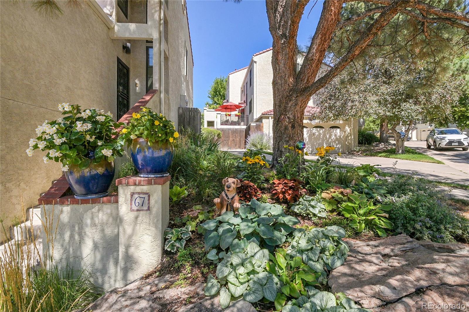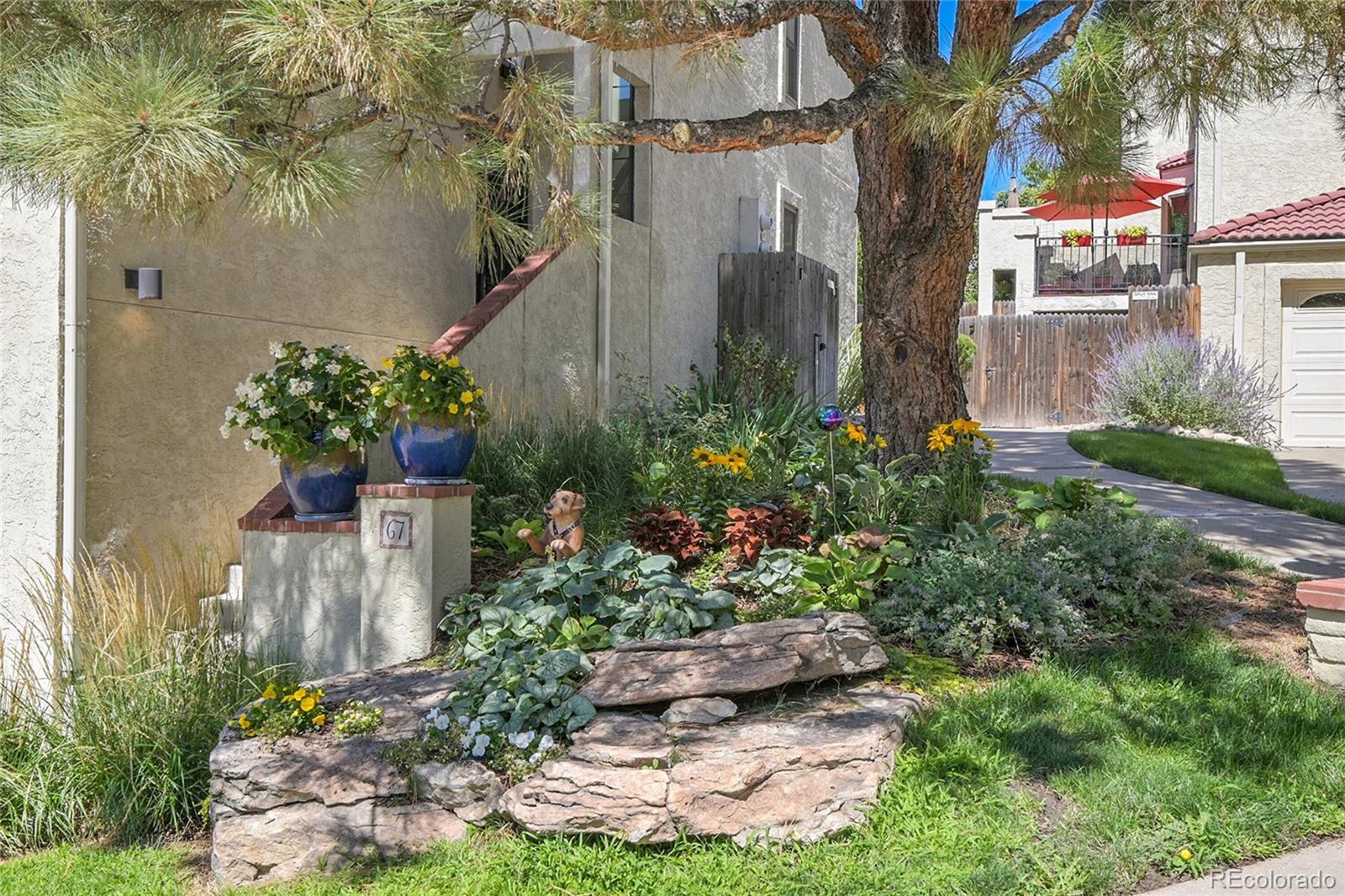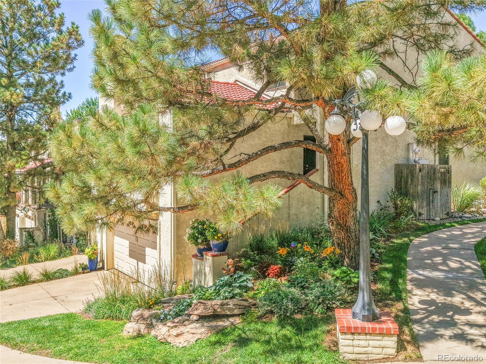Best unit, including upgrades, location and features in the Villa Marbella community. Nothing was left untouched in the renovation of the home creating a warm integrated open floor plan with modern finishes throughout. This end unit has the only perennial garden specially approved by the HOA creating a year round focus of flowering bulbs in the spring to spectacular flowers the rest of the growing season. The back fenced patio is landscaped with a raised flower bed, hot tub and grill and a private greenbelt outside its gate. The upgrades include 4.5 inch white oak hardwood floors, newer windows and coverings, quartz countertops in the kitchen and bathrooms, newer cabinets with soft close doors and drawers, Touch 2 kitchen faucet, recessed lighting, newer paint, ceiling fans in the great room and bedrooms, two gas fireplaces, newer furnace and air conditioning units, replaced Spanish tile roof approximately 8 years ago. Partially finished basement with laundry room left to be completed by new owner to create exercise room, family room or workshop. Community pool steps away from back patio. The Villa Marbella community backs to the Highline Canal walking/biking path and two neighborhood parks are east of the Highline Canal and a second blocks to the west on Iowa Avenue. Start your new chapter in comfort and style.