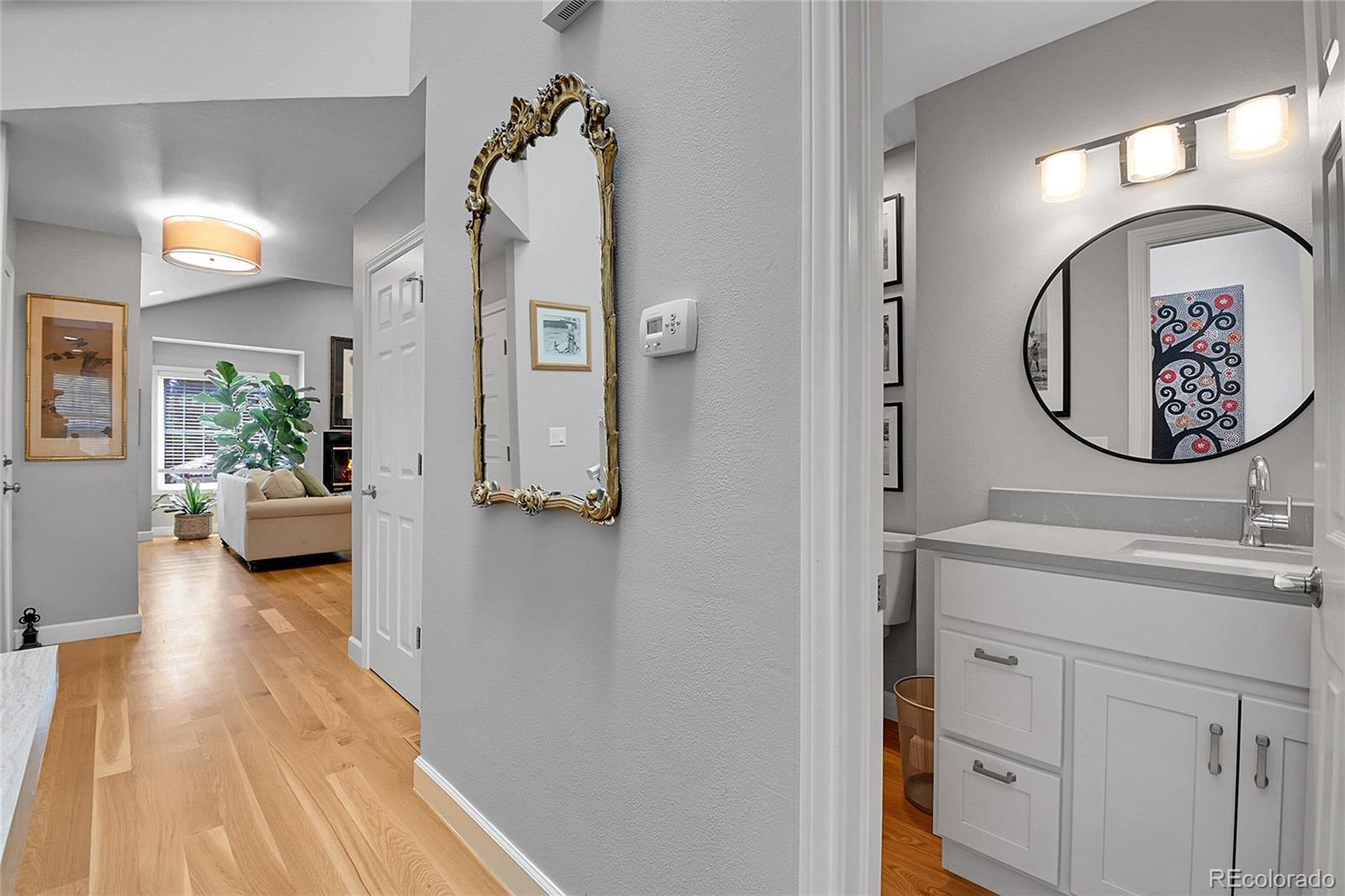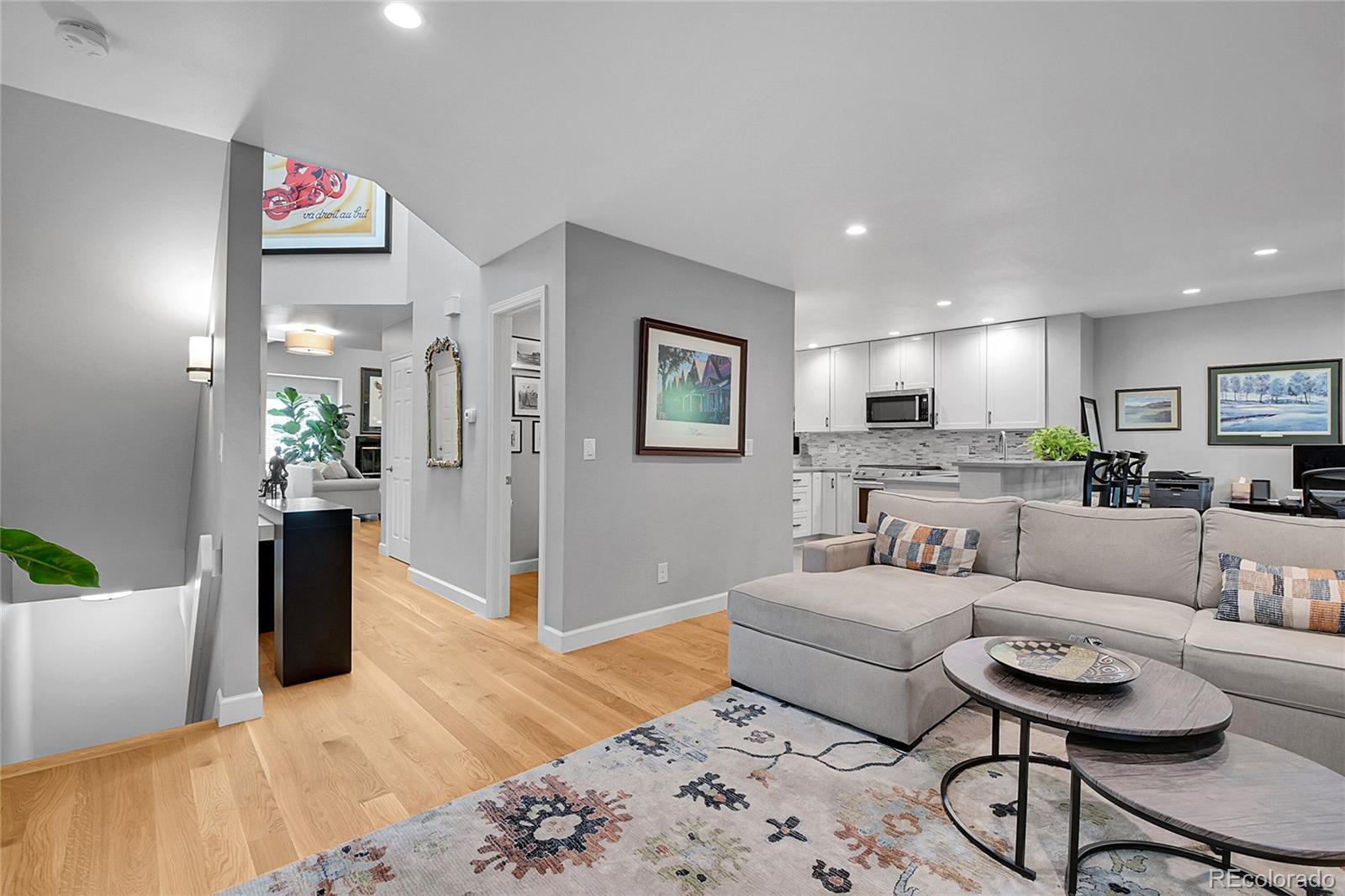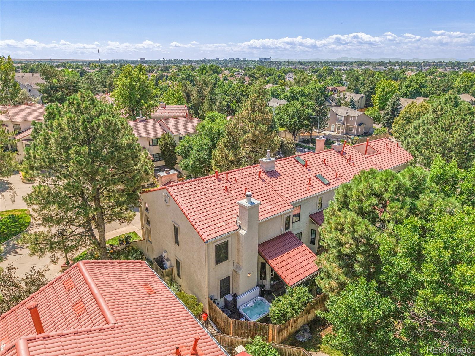 Best unit, including upgrades, location and features in the Villa Marbella community. Nothing was left untouched in the renovation of the home creating a warm integrated open floor plan with modern finishes throughout. This end unit has the only perennial garden specially approved by the HOA creating a year round focus of flowering bulbs in the spring to spectacular flowers the rest of the growing season. The back fenced patio is landscaped with a raised flower bed, hot tub and grill and a private greenbelt outside its gate. The upgrades include 4.5 inch white oak hardwood floors, newer windows and coverings, quartz countertops in the kitchen and bathrooms, newer cabinets with soft close doors and drawers, Touch 2 kitchen faucet, recessed lighting, newer paint, ceiling fans in the great room and bedrooms, two gas fireplaces, newer furnace and air conditioning units, replaced Spanish tile roof approximately 8 years ago. Partially finished basement with laundry room left to be completed by new owner to create exercise room, family room or workshop. Community pool steps away from back patio. The Villa Marbella community backs to the Highline Canal walking/biking path and two neighborhood parks are east of the Highline Canal and a second blocks to the west on Iowa Avenue. Start your new chapter in comfort and style.