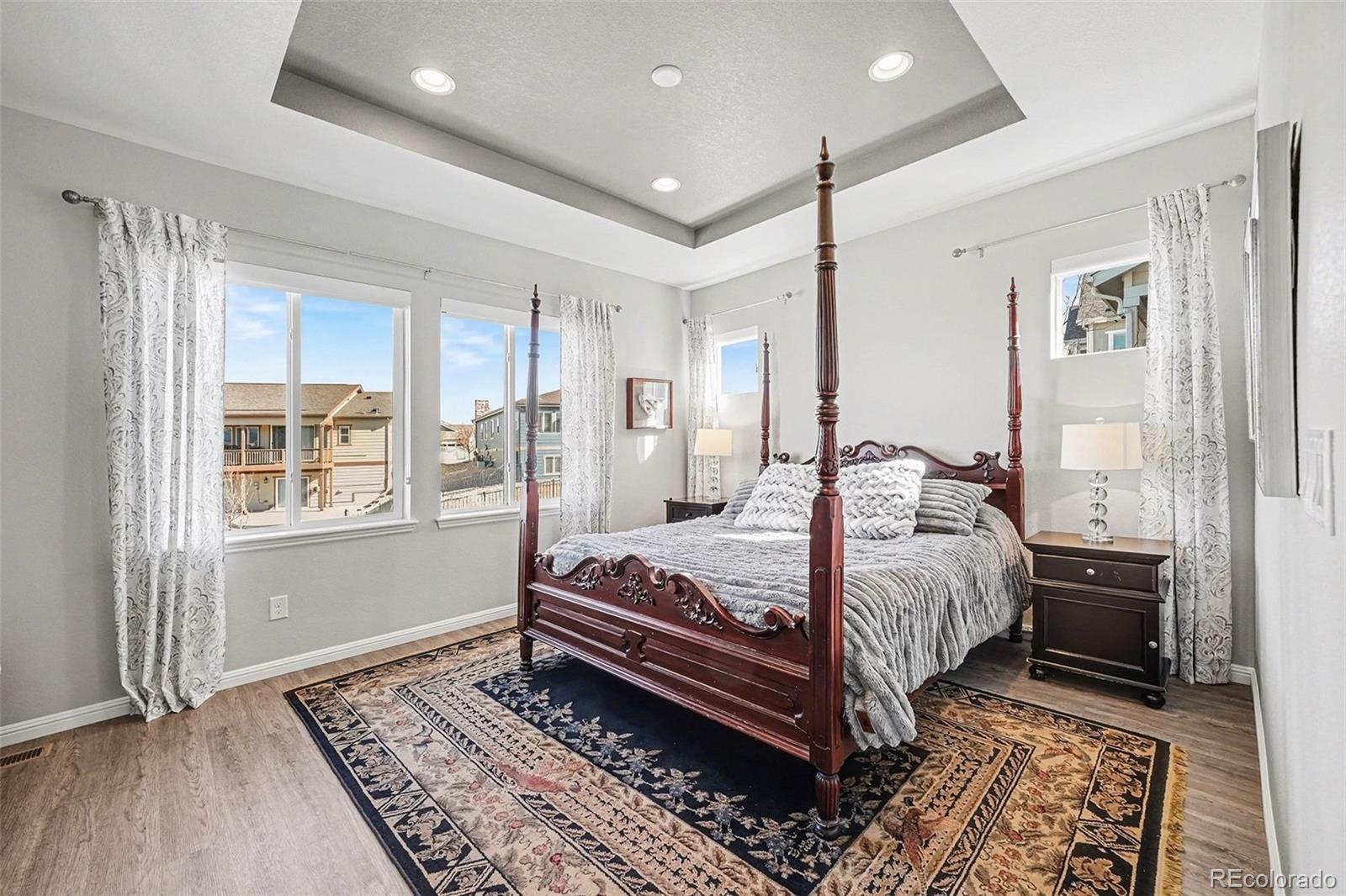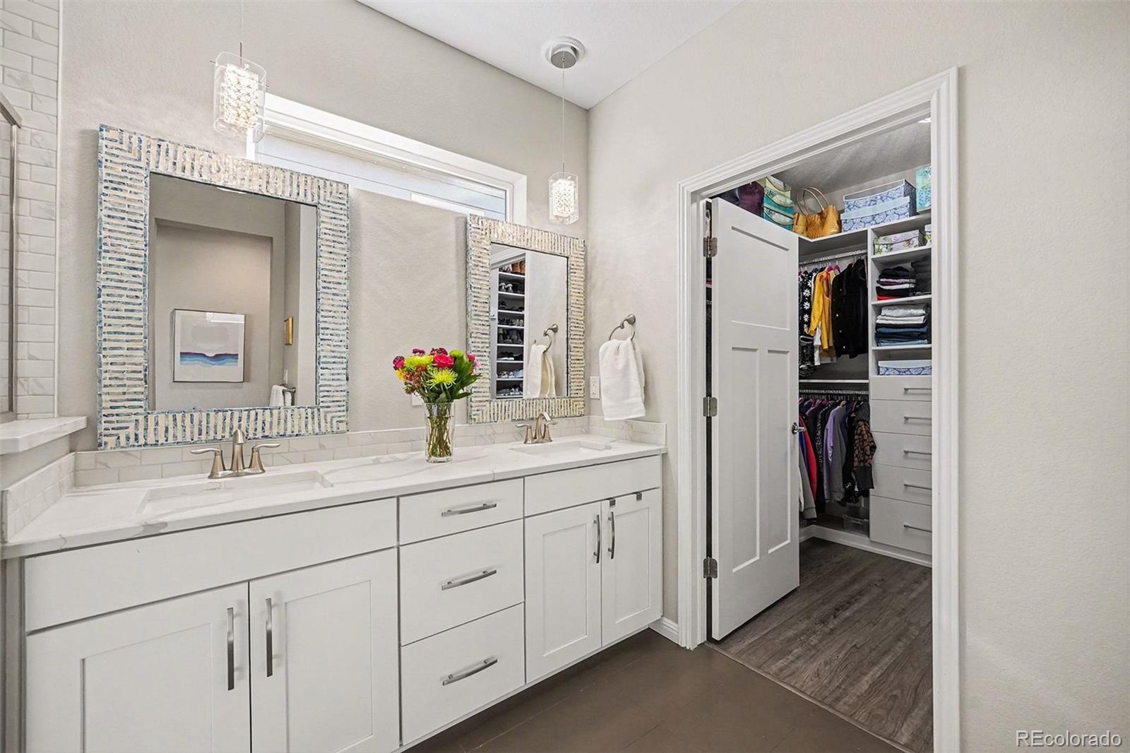 Now you can live in the premier active 55+ community of Skyestone! 13063 Sandstone Drive is full of luxury upgrades and sits on a unique lot specifically chosen by the original owner for privacy. More than $130,000 in upgrades have been added including upper and under cabinet lighting and premium appliances in the kitchen (Wolf Gas Range, Thermador Double Ovens, Bosch Dishwasher); a custom closet system in the primary bedroom; a tankless gas water heater, whole house humidifier, a water conditioner and filtration system; and custom window coverings. The interior of the home is finished in a modern, elegant style–from the sparkling chef’s kitchen to the spacious and bright great room. The private primary suite offers a spa-like retreat with a generous walk-in shower. A comfortable guest room, guest bath, a study, laundry and mudroom round out the main floor. The unfinished basement offers great storage or the room to expand your living space. Entertain on the elevated back deck or the extended patio and enjoy the extensive, professional landscaping (French drains, retaining wall, artificial turf, fencing). The community's Skyestone Lodge offers resort-style amenities, including an outdoor pool and hot tub, pickleball courts, fitness center, billiards, and scenic trails. Just 15 minutes to Boulder and under 30 minutes to downtown Denver, this home offers easy access to city conveniences, while also providing a peaceful, suburban lifestyle. The Westminster Hills Dog Park and Standley Lake Recreation Area and Wildlife Refuge are a short walk away. There’s also a quaint Par 3 golf course and the Omni Interlocken Golf Course nearby. Buyer is required to pay $2,292 as a private transfer (community enhancement) HOA fee at closing.