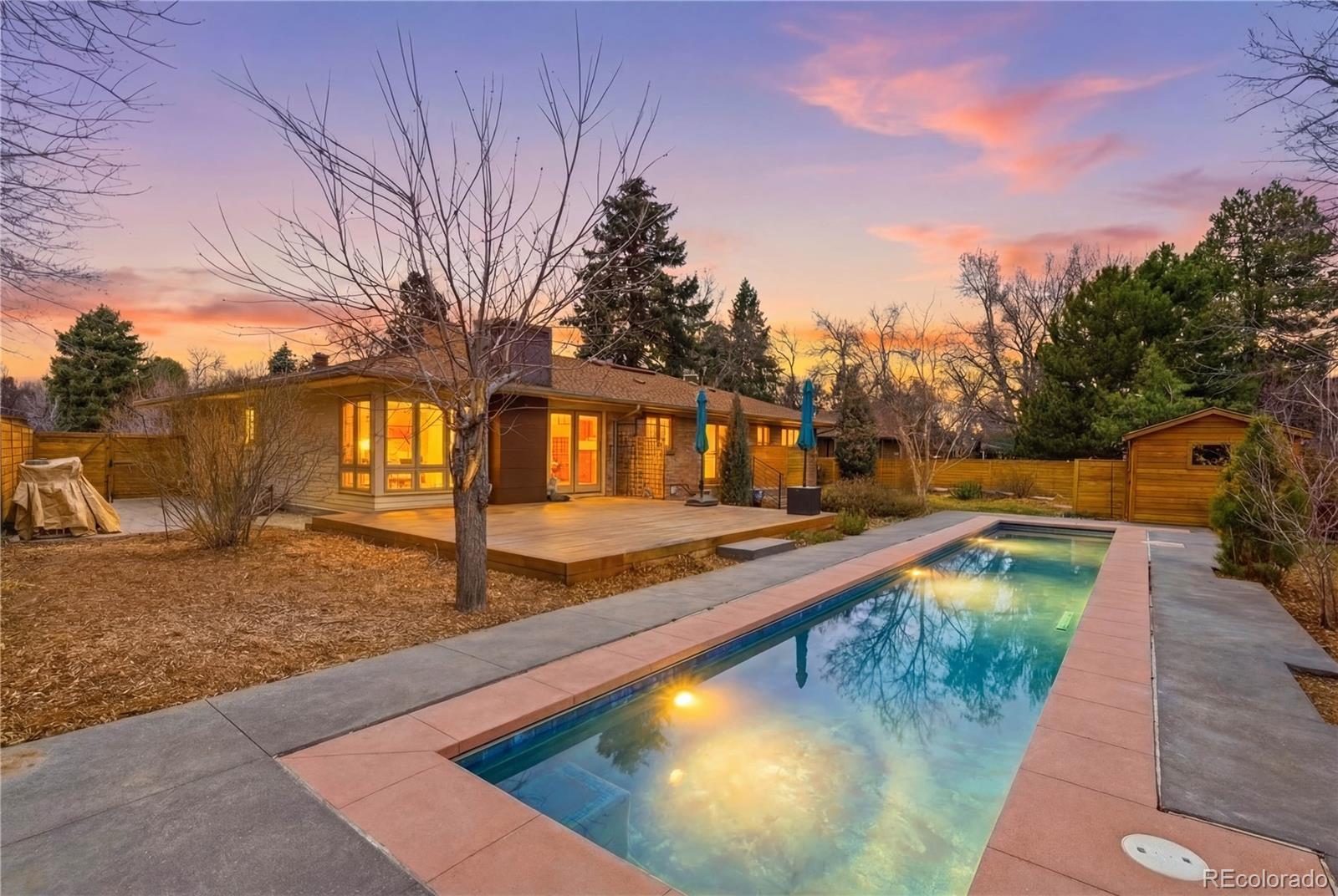 Experience refined, turnkey living in the coveted Hutchinson Hills neighborhood of Denver. This fully reimagined mid-century ranch pairs elevated design with thoughtful, high-end upgrades throughout. The designer kitchen serves as the heart of the home, showcasing quartz countertops, custom self-closing cabinetry with pull-outs, and premium appliances. Rich hardwood floors extend throughout the home, complemented by an abundance of windows, multiple gas fireplaces, and built-ins that create a warm yet sophisticated ambiance. Spa-inspired baths, Closet Factory storage systems, dual laundry areas, and a dedicated pet wash deliver effortless daily luxury. Significant system updates throughout the home ensure true peace of mind, while the insulated garage features a newer door, app-controlled side-mounted opener, 220V EV outlet, and overhead pulley storage. All this while the outdoor area embraces resort-style living with a heated saltwater/chlorine lap pool and reinforced safety cover, professionally designed landscaping, a Garapa wood deck, RV parking, and an updated front patio. This home is ideally positioned near the High Line Canal Trail, Goldsmith Gulch, and Bible Park for seamless access to miles of scenic trails and outdoor recreation.