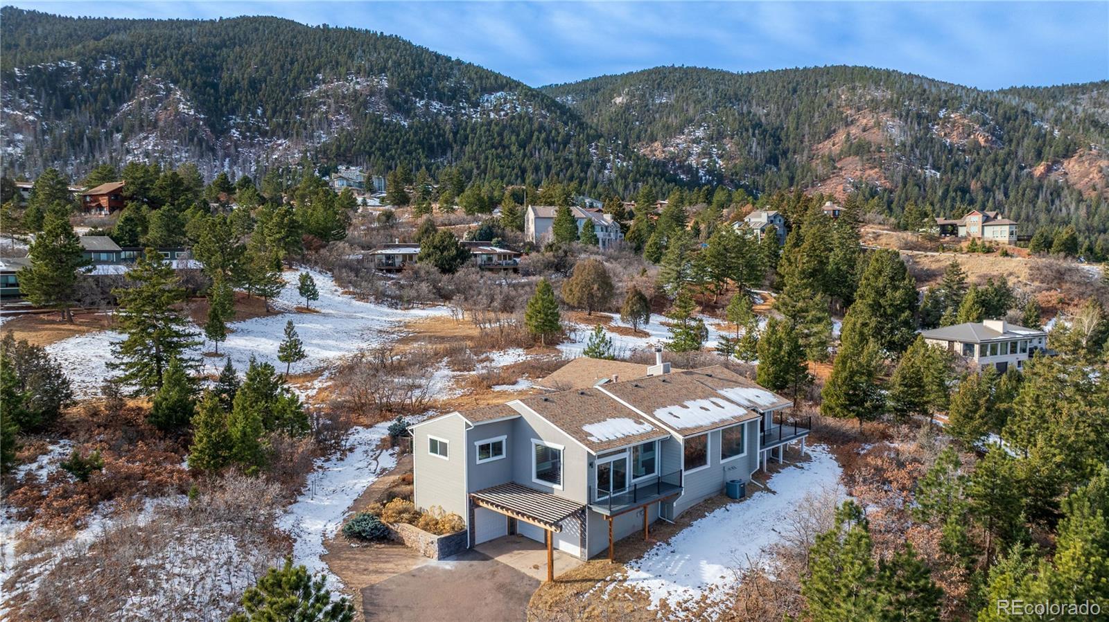 WOW! New to market: don't miss out on this hill-side Perry Park rancher with glorious views off the rear decking. Experience a rare contemporary elegance, complete with modern amenities throughout. Multiple aspects of this home have been updated and upgraded over the past few years. The impressive open-concept living engulfs most of the main level, bathing you in natural light from all angles from multiple skylights. Escape to the basement level to find additional bedrooms and living area. You will fall in love with the custom landscaping, complete with fish ponds and water features. There is so much to see and enjoy with this hidden gem of Larkspur, so come see it today!
