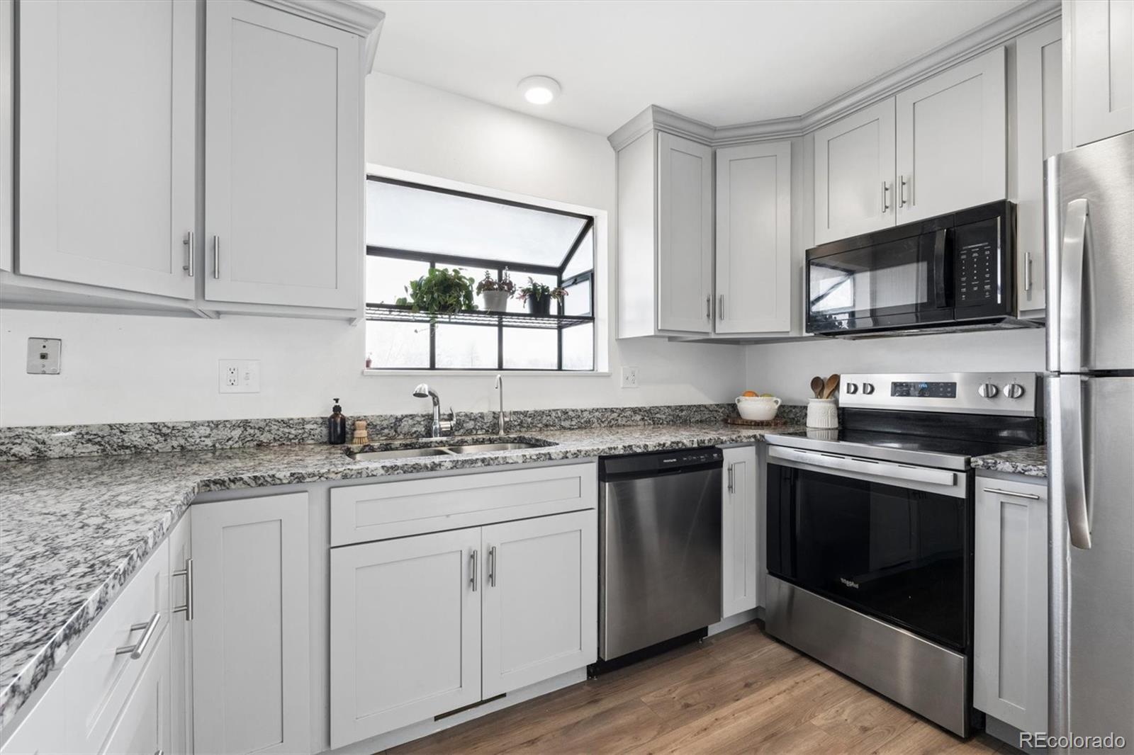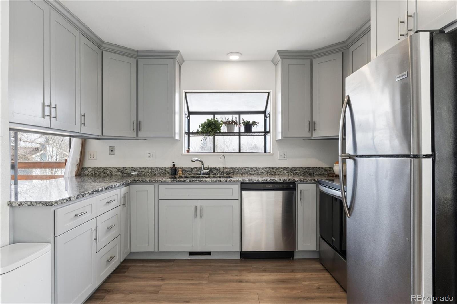 Welcome home to this spacious 5 bedroom, 3 bathroom multi-level home in Greeley, offering a versatile layout, modern finishes, vinyl flooring throughout, and plenty of room for everyone. The main level welcomes you with a bright and open living room featuring abundant natural light and a vaulted ceiling, creating an airy and inviting atmosphere. The upper level showcases a beautifully designed kitchen with light grey cabinetry, granite countertops, and stainless steel appliances, flowing seamlessly into the dining area. The dining room overlooks the lower level and offers access to the backyard through a sliding glass door leading to the back deck, making it ideal for entertaining. Also on the upper level is the spacious primary suite, complete with private access to the outdoor deck and an ensuite 3/4 bath featuring a standing shower, sink, and toilet. Two additional bedrooms and a full hall bath complete the upper level. The lower level provides a large rec room, perfect for movie nights, a playroom, or hosting guests. You’ll also find a bonus room ideal for a home office or visiting family, along with an additional 3/4 bathroom. A convenient laundry room with washer and dryer included adds to the home’s functionality. Downstairs, the basement offers a fifth bedroom, providing even more flexibility. Step outside to enjoy the fully fenced backyard, perfect for summer BBQs, gatherings, kids at play, or pets to roam. The attached oversized finished 2-car garage offers plenty of parking and storage space, complete with built-in shelving. Ideally located close to shopping, dining, trails, great schools, and easy access to all that Greeley has to offer, this home is the perfect blend of space, comfort, and convenience. Don’t miss this incredible opportunity!