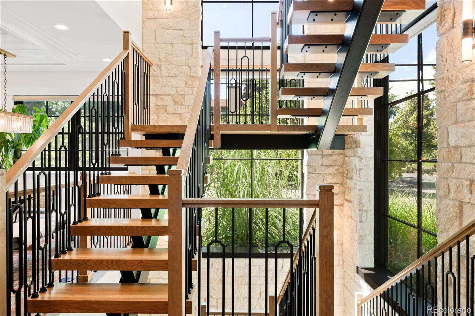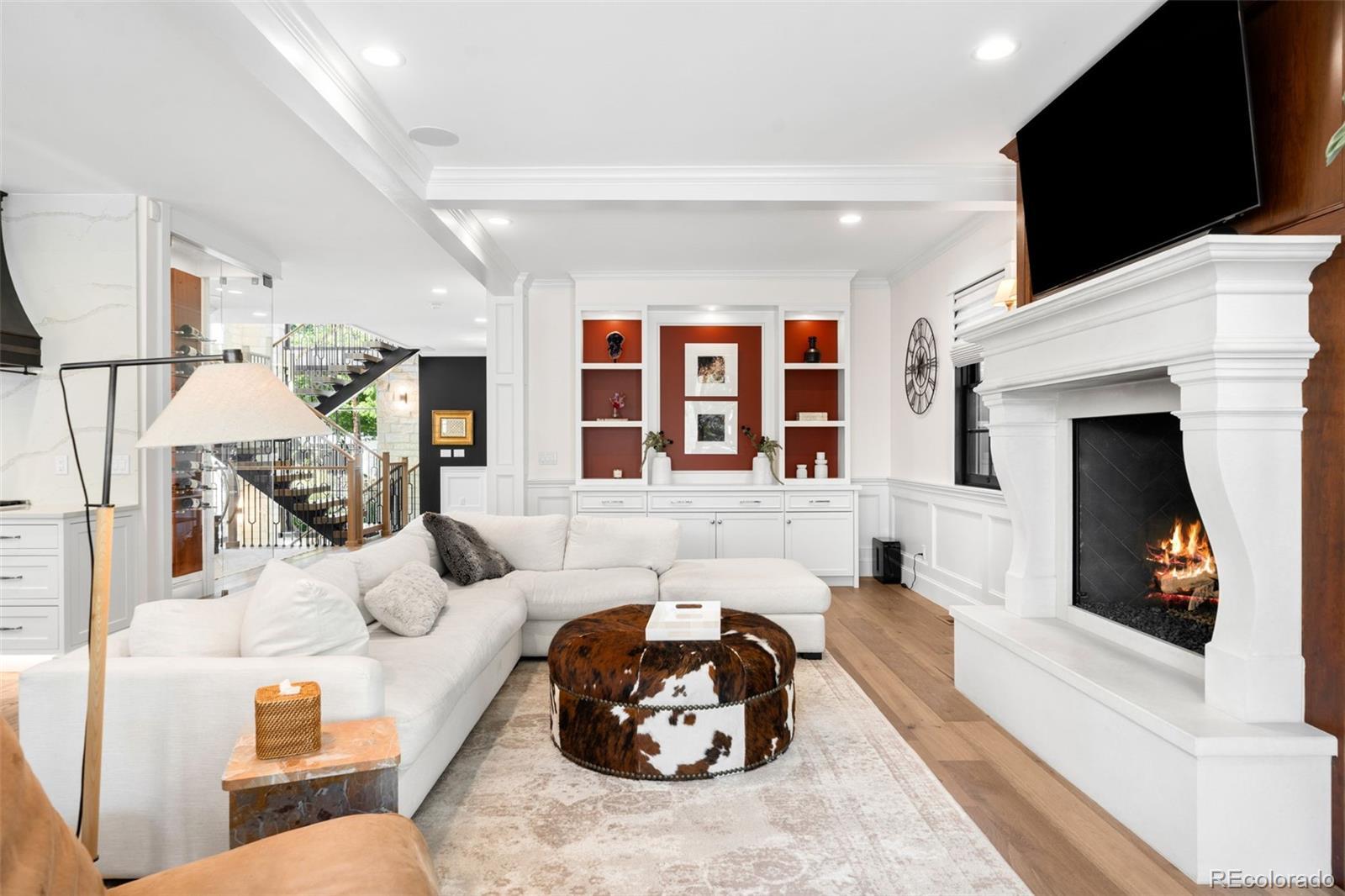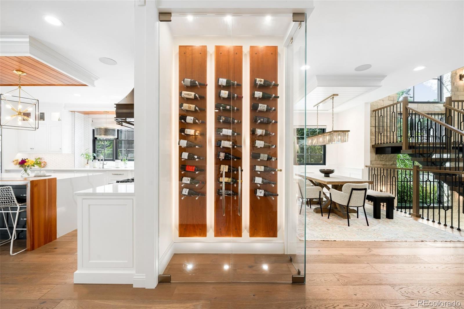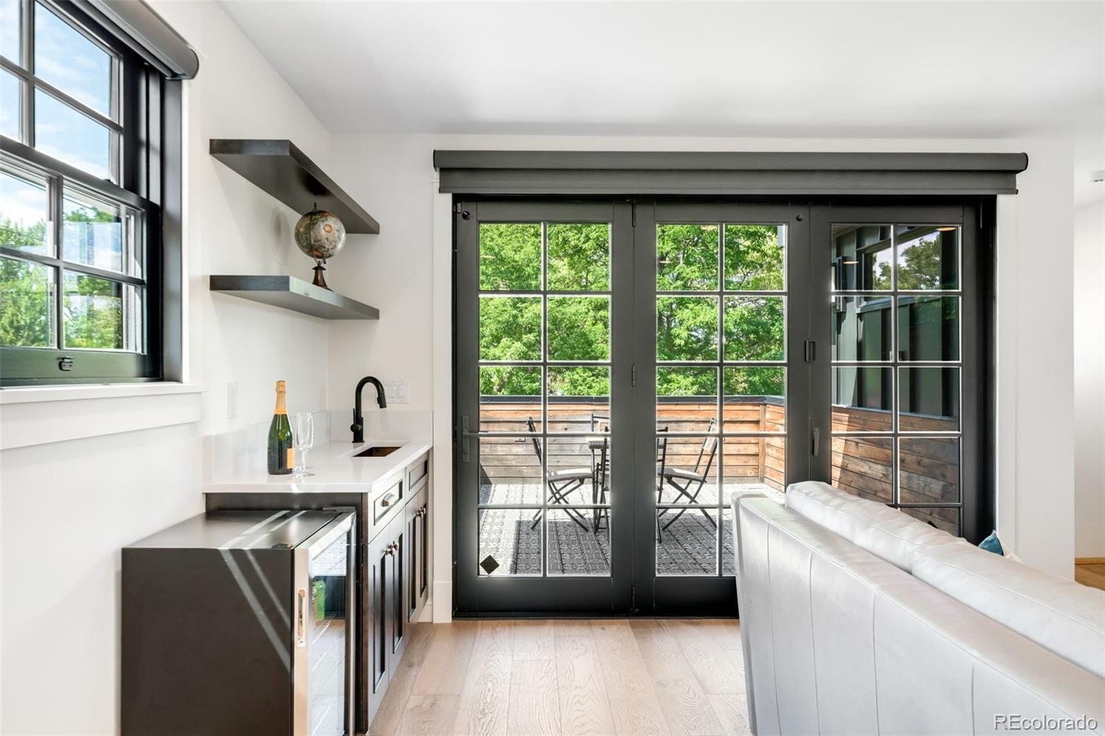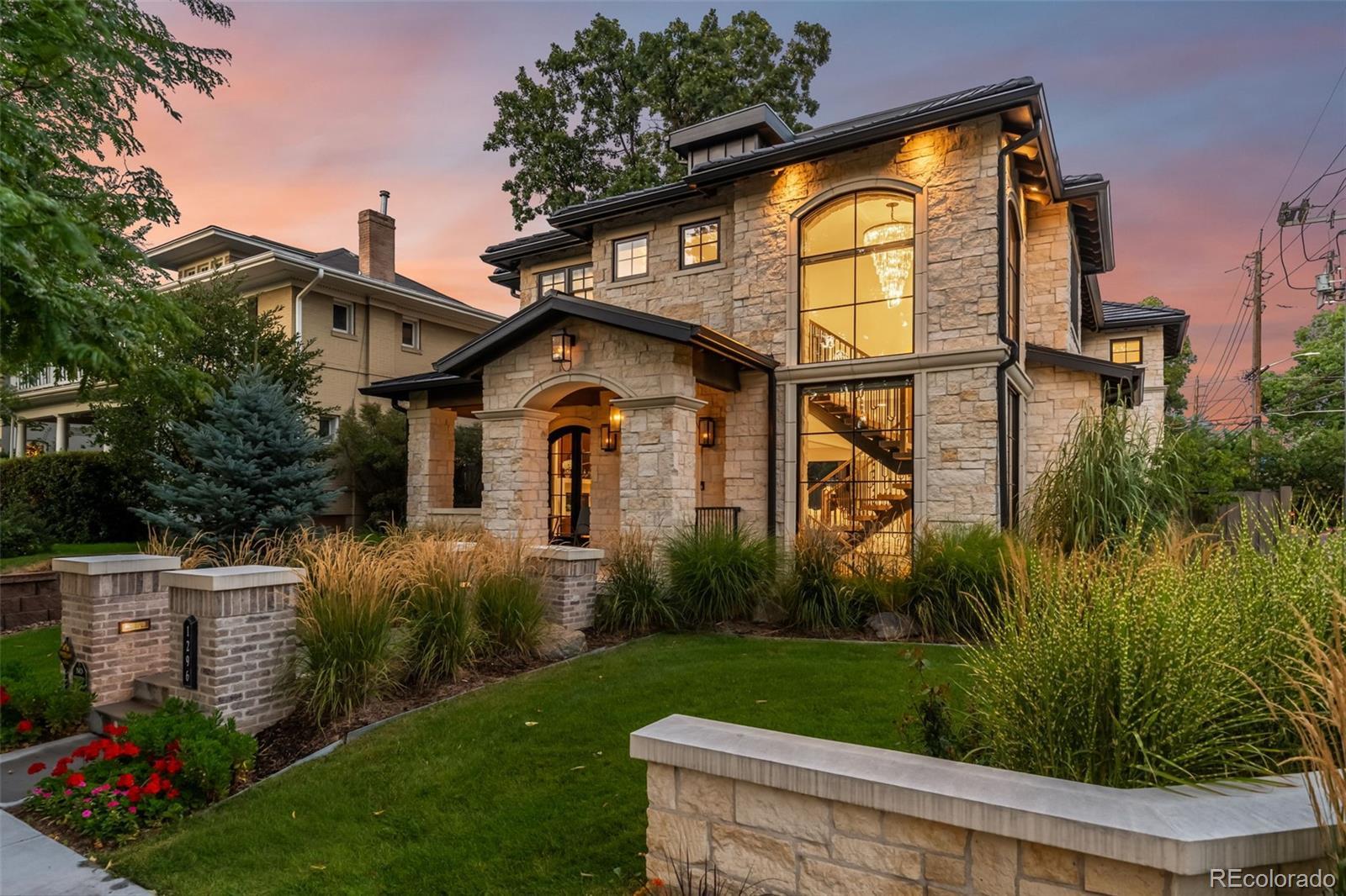 Striking modern architecture meets elevated functionality in this East Wash Park stunner, designed for those who appreciate luxury, space, natural light, and architectural detail. Situated on a prominent corner lot just blocks from South Gaylord Street, this limestone residence blends architectural presence with refined modern living. Spanning over 6,000 square feet, the home is defined by dramatic lines, custom craftsmanship, and walls of glass that dissolve the boundary between indoors and out. The main level showcases 10-foot coffered ceilings, a statement floating staircase, and seamless indoor-outdoor flow to a covered patio with overhead heating and built-in gas fireplace. The kitchen features Sub-Zero and Wolf appliances, dual quartz islands, and thoughtful custom cabinetry. Upstairs, four bedrooms include a serene primary suite with steam shower, soaking tub, walk-in closet, and built-in morning bar. A third-floor flex suite with full bath opens to a west-facing rooftop deck with skyline views—ideal for guests, au-pair, home office, gym or party room. Downstairs, 11-foot ceilings elevate the fully finished basement, which offers a large recreation room, wet bar, gym, guest bedroom, and full bathroom. Originally completed in 2021 by respected local luxury builder Cline Design Group, the home has since been elevated with over $200,000 in upgrades including bespoke window coverings throughout, a fully integrated AV and Control4 smart-home system, and a Culligan whole-house water filtration system with reverse osmosis. 240V outlet in the oversized garage provides EV charging capabilities. Every detail, such as the full limestone exterior facade and cement tile roof, speaks to quality and intention, offering a residence that balances timeless design with contemporary sophistication in one of Denver’s most established neighborhoods.