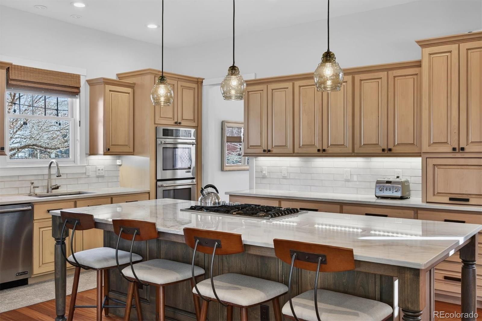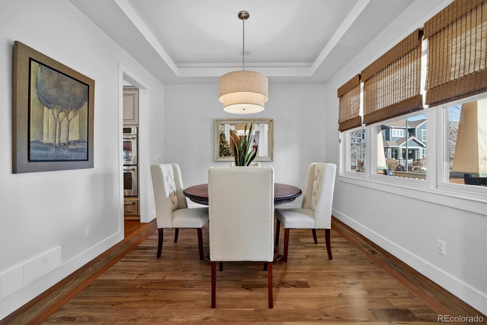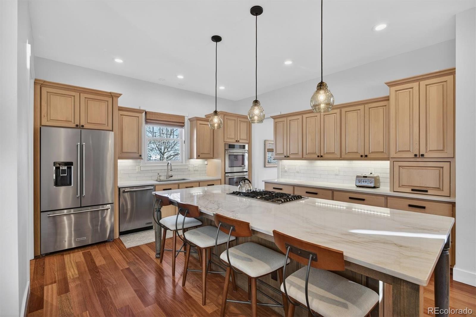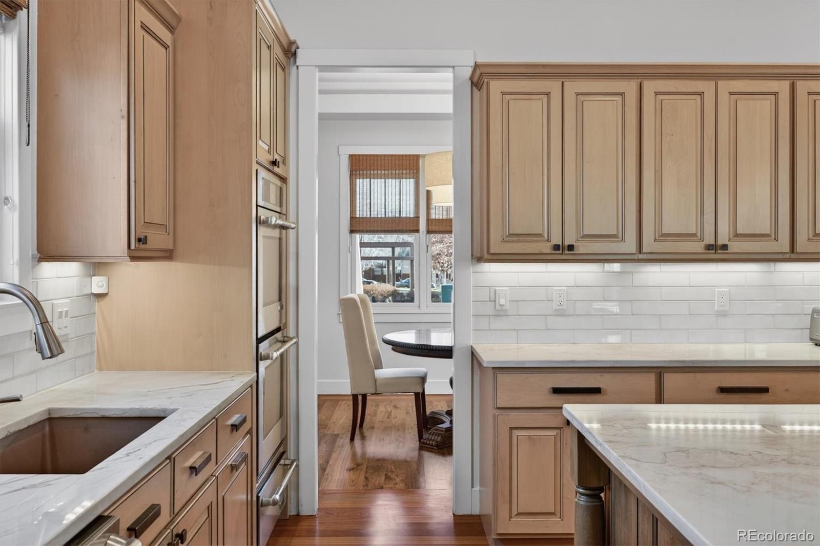 Pride of ownership is evident throughout this meticulously maintained Craftsman-style residence, ideally situated on a corner lot fronting a serene community park in sought-after Bradburn Village, just 20 minutes southeast of Boulder. Bradburn is known for its walkable shops, dining, neighborhood events, and resort-style amenities, including trails, a pool, and tennis courts. Offering over 5,300 finished square feet, this home includes a private two-bedroom, one-bath carriage house with its own exterior entrance, ideal for extended family, guests, multigenerational living, or long-term rental potential. A wraparound front porch creates a welcoming first impression. A newly installed cedar fence (2025) encloses the private backyard, featuring a built-in fire pit, a refreshed paver patio, and a discreetly integrated dog run. // The interior features soaring ceilings, refinished hardwood floors (2024), designer lighting, and crisp baseboard detailing throughout. The remodeled chef’s kitchen features custom Shaker cabinetry, stainless steel appliances, and a quartzite island that opens seamlessly to the living and dining areas for effortless entertaining. The living room features a gas fireplace with a natural stone surround. A formal dining room and main-floor office (or optional bedroom) complete the main level. // Upstairs, the reimagined primary suite offers a spa-inspired bath with Carrara marble, soaking tub, walk-in shower, and a generous walk-in closet with private access to the carriage house. Two additional bedrooms, a full bath, loft, and upper-level laundry provide functional and flexible living space. // The finished basement includes a bedroom, bathroom, recreation room, den, and custom bar, ideal for sports enthusiasts, entertaining, or relaxing. // Additional upgrades include: new furnace (2025), new roof (2024), new dryer (2025), poly-aspartic garage floor coating (2025), newer windows, newer carpet, and newer water heater.