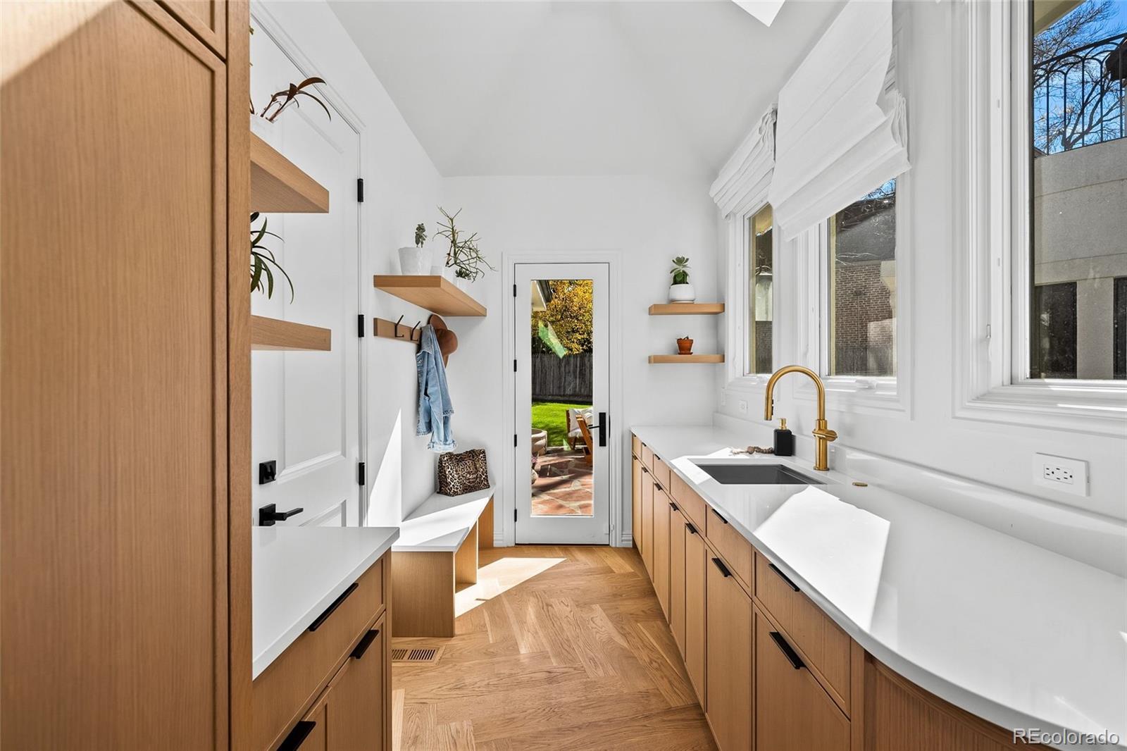 Experience refined living in Denver’s prestigious Country Club—where architectural elegance, modern innovation, and outdoor connection meet in perfect balance. Reimagined with over $1M in design-led renovations, this light-filled luxury home blends timeless craftsmanship with smart-home sophistication. A grand circular staircase and sculptural chandelier set the tone, while the architect-redesigned main level offers a sun-drenched, open layout ideal for entertaining. White oak herringbone floors, a marble fireplace surround, and integrated audio create effortless sophistication. The chef’s kitchen features bespoke white oak cabinetry, Italian marble counters, an AGA induction range, paneled Dacor refrigerator, and a butler’s pantry. The main-floor suite includes a spa-inspired bath with Anne Sacks terrazzo tile, radiant heated floors, a freestanding tub, dual showerheads, and designer finishes, perfect for guests or extended stays. Upstairs, the primary suite with his-and-her baths and walk-in closets is ready for your personal vision, an opportunity to create a truly bespoke retreat. Neighboring lots have recently sold for $2M–$2.8M as sites for new custom residences making this a rare opportunity to own a fully turnkey home in one of Denver’s most coveted neighborhoods. The transformed lower level offers elevated ceilings, a terrazzo-clad fireplace, full wet bar, guest rooms, and gym/flex space. A $42K landscape redesign enhances indoor-outdoor living with curbstone borders, paver and gravel pathways, integrated lighting, outdoor speakers, and a Rachio smart-irrigation system. Set on a ¼-acre lot, the property offers privacy and lush surroundings rarely found this close to Cherry Creek. Upgrades include a new furnace (’24), dual A/C (’22), whole-house filtration, Flo leak sensors, Ecobee thermostats, Lutron lighting, and a 10-camera security system. Exceptional walkability to Hillstone, the Denver Botanic Gardens, and Cherry Creek’s boutiques and cafés.