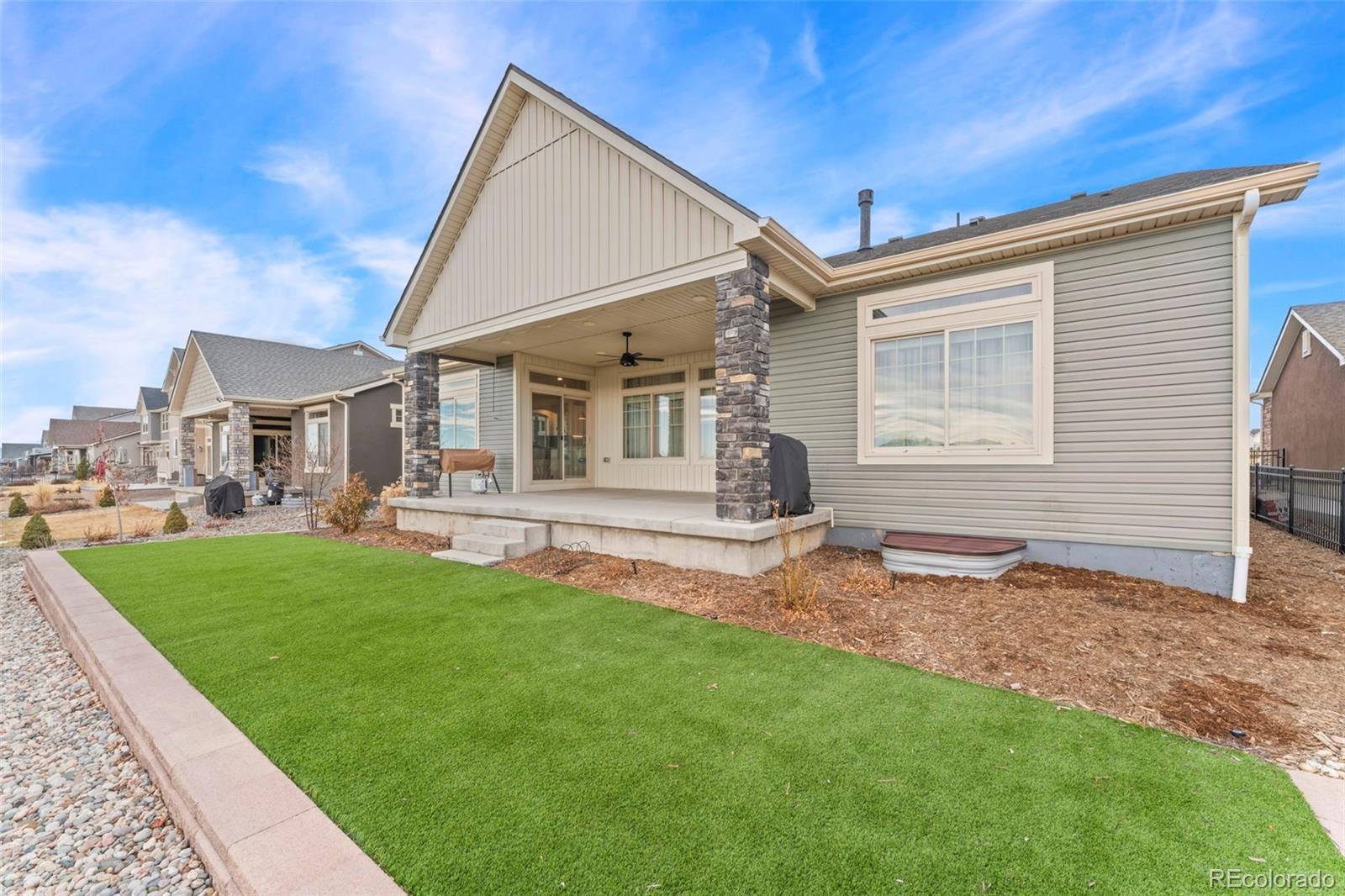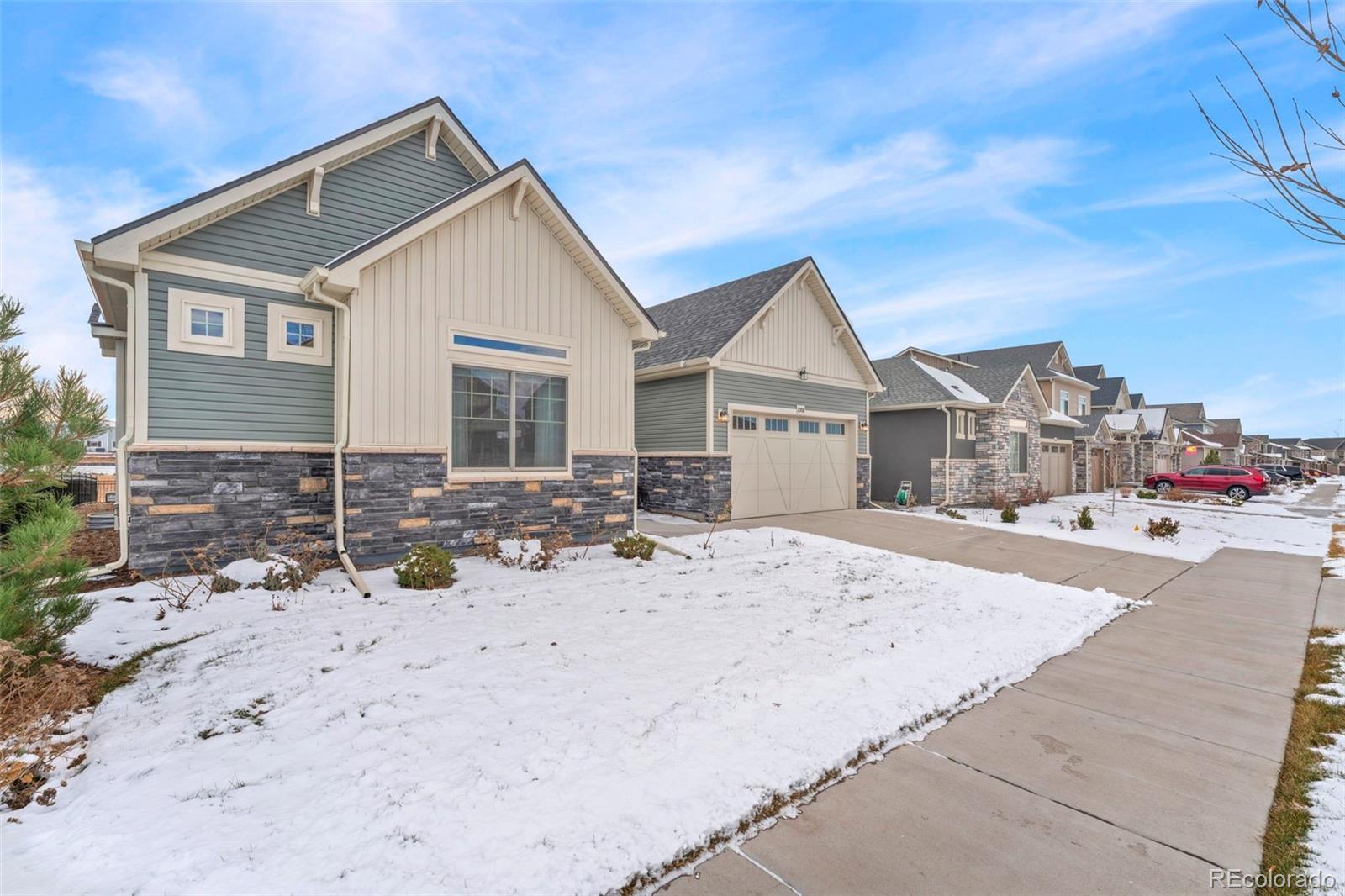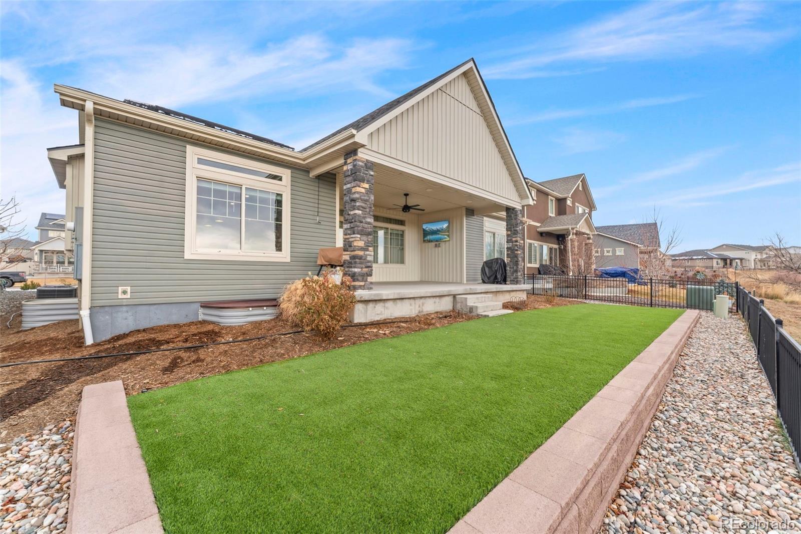 Welcome to 20708 E 49th Drive, a beautifully maintained ranch-style home offering 3 bedrooms and 2.5 baths, located within the gated Enclave of Green Valley Ranch—where privacy, ease of living, and modern comfort come together. The open, light-filled floor plan flows seamlessly from space to space, creating an inviting atmosphere for both everyday living and entertaining. The main living area connects effortlessly to the kitchen and dining space and is enhanced by built-in speakers, adding an elevated touch for entertaining or enjoying your favorite music at home. The kitchen offers generous cabinetry, ample counter space, and a highly functional layout designed for convenience and gatherings alike. The primary suite serves as a relaxing retreat with a private bath and walk-in closet, while two additional bedrooms provide flexibility for guests, a home office, or hobbies. A well-placed half bath adds extra convenience for visitors. An unfinished basement offers excellent potential for future expansion, storage, or customization to suit your needs. Owned solar panels further enhance the home’s value, providing energy efficiency and long-term savings. Enjoy low-maintenance living in a secure, gated community just minutes from parks, trails, shopping, dining, and major commuter routes. This exceptional home offers a thoughtful blend of comfort, efficiency, and opportunity.