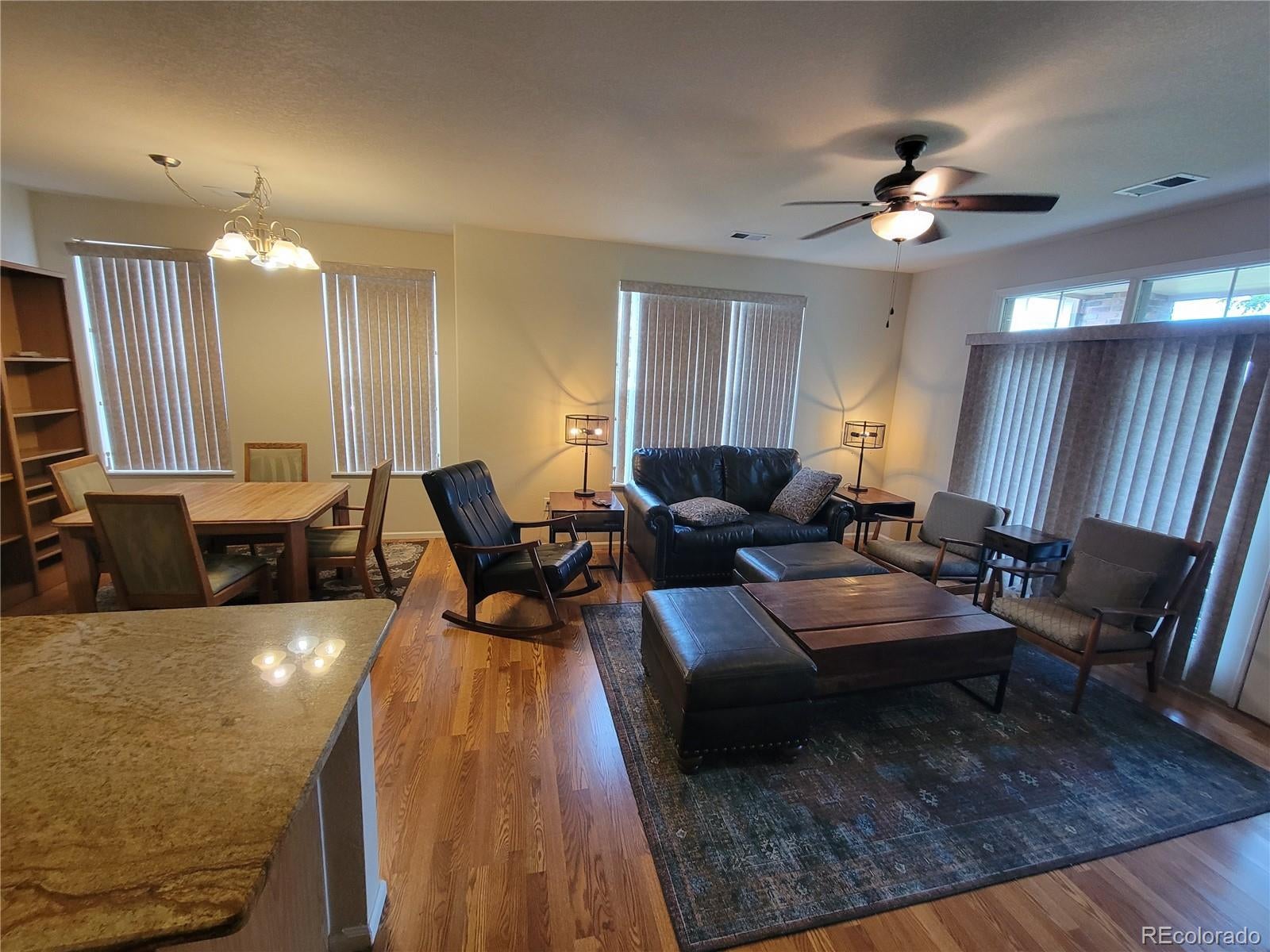 Beautiful unit on Heather Ridge 18th fairway. Lots of amenities and updates. Three bedrooms, including a separate owner suite. Private location with attached garage or possibly could rent a second garage. The owner prefers to rent furnished, but there are options. Shaded back patio and walking distance to Noonans Sports Bar and Grill. Easy access to I-225, DIA, and Anschutz Medical Center, UC Health. The kitchen features granite counters, an undermount sink, built-in microwave, and dishwasher. You will love the design, as well as the extra room and storage.