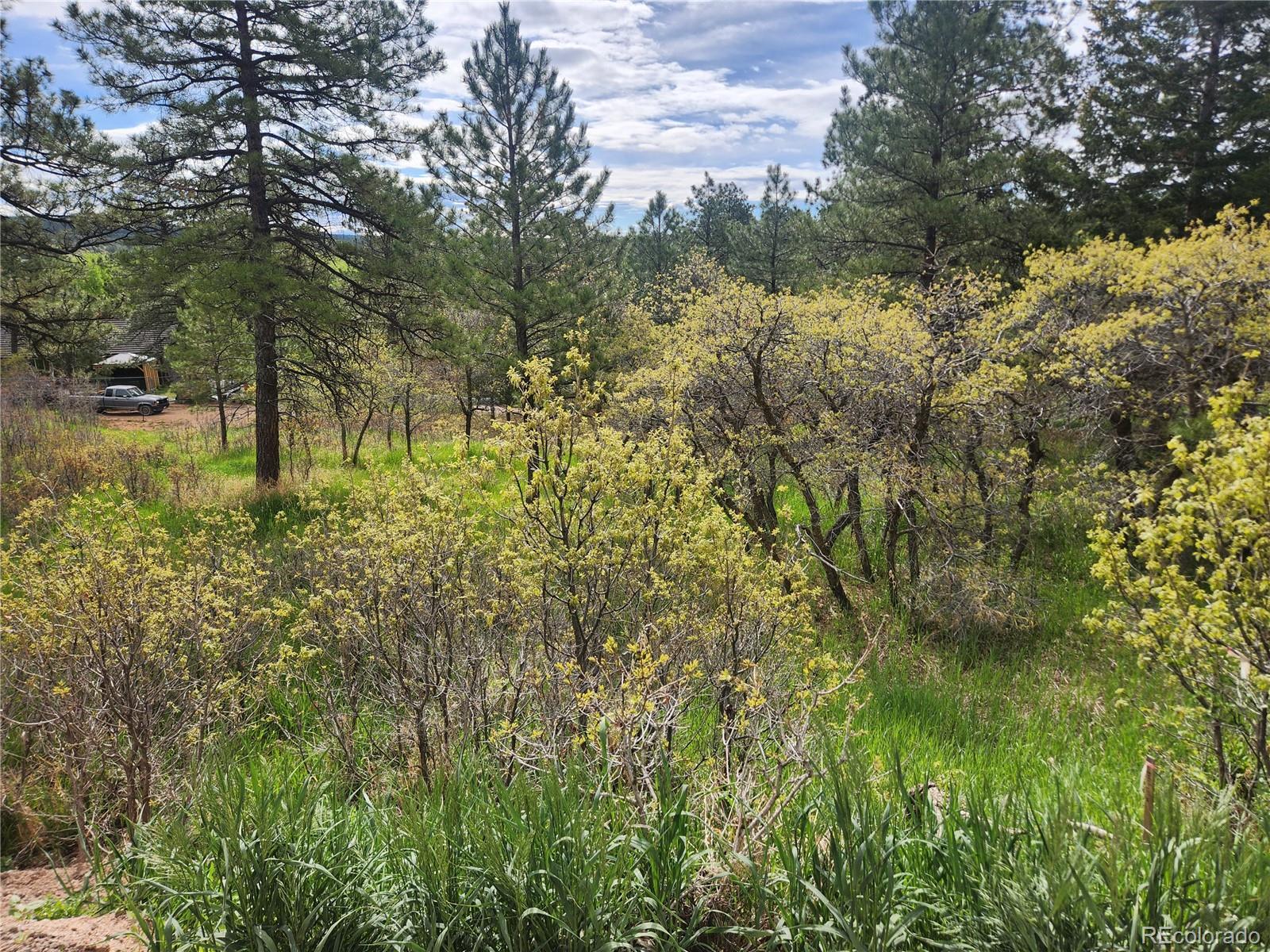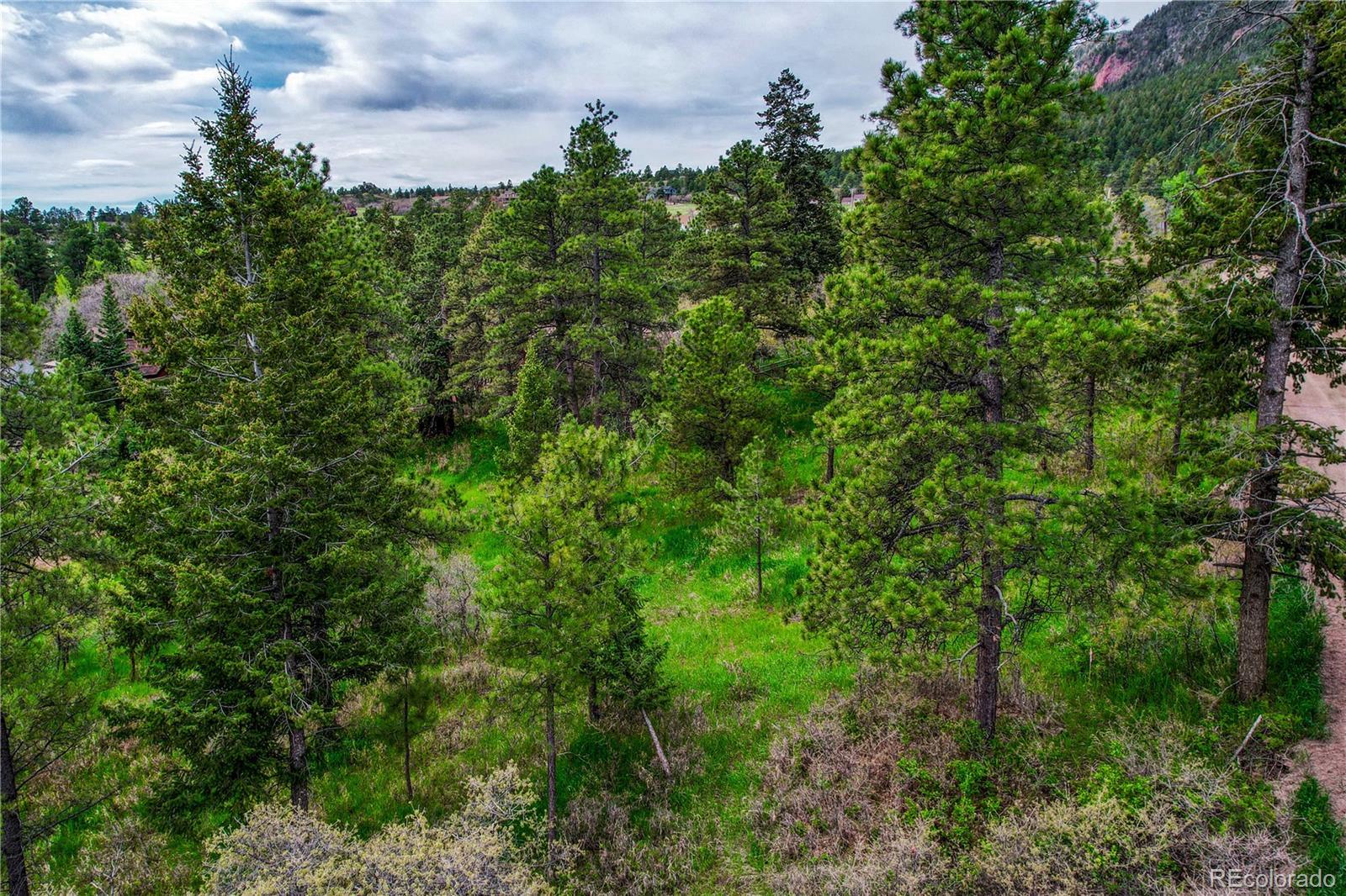 Treed Lot in Palmer Lake – Privacy, Wildlife & Stunning Mountain Potential! Nestled against the foothills in the charming town of Palmer Lake, this beautifully wooded lot offers a rare blend of privacy, walkability, and natural beauty. Surrounded by mature trees and frequented by local wildlife, the setting is peaceful and secluded—yet just minutes from the heart of town. With the right home design, you may enjoy sweeping views of iconic landmarks like Chautauqua Mountain, Ben Lomond Mountain, and possibly even Elephant Rock—adding breathtaking backdrops to everyday living. Located in a quiet neighborhood, this lot is within walking distance to a scenic town park with a children's play area, tennis and pickleball courts, and shaded picnic spots. Trailheads leading into the surrounding mountains are just minutes away, and the lake, local shops, and restaurants of downtown Palmer Lake are a short stroll from your front door. Whether you're dreaming of a weekend getaway or a full-time mountain home, this property offers the perfect canvas—serene, scenic, and close to everything that makes Palmer Lake special. Near fire hydrant.