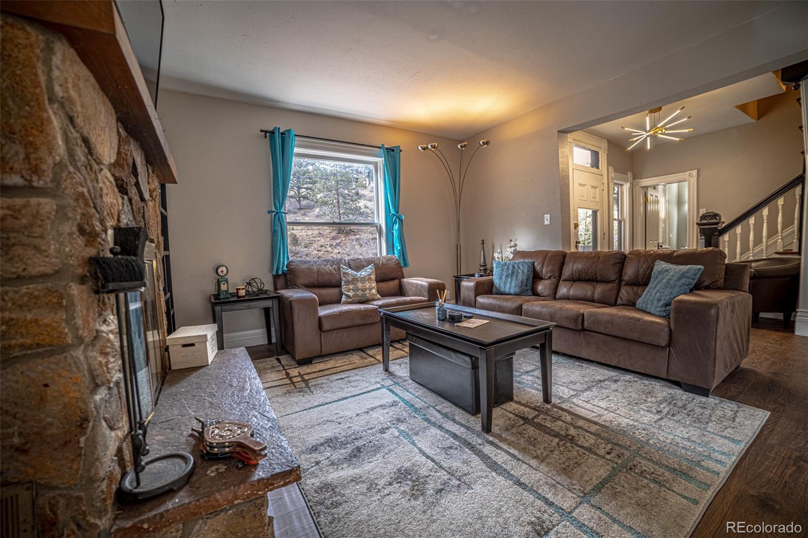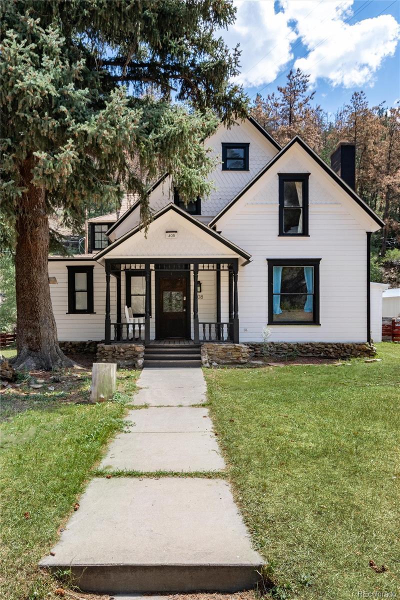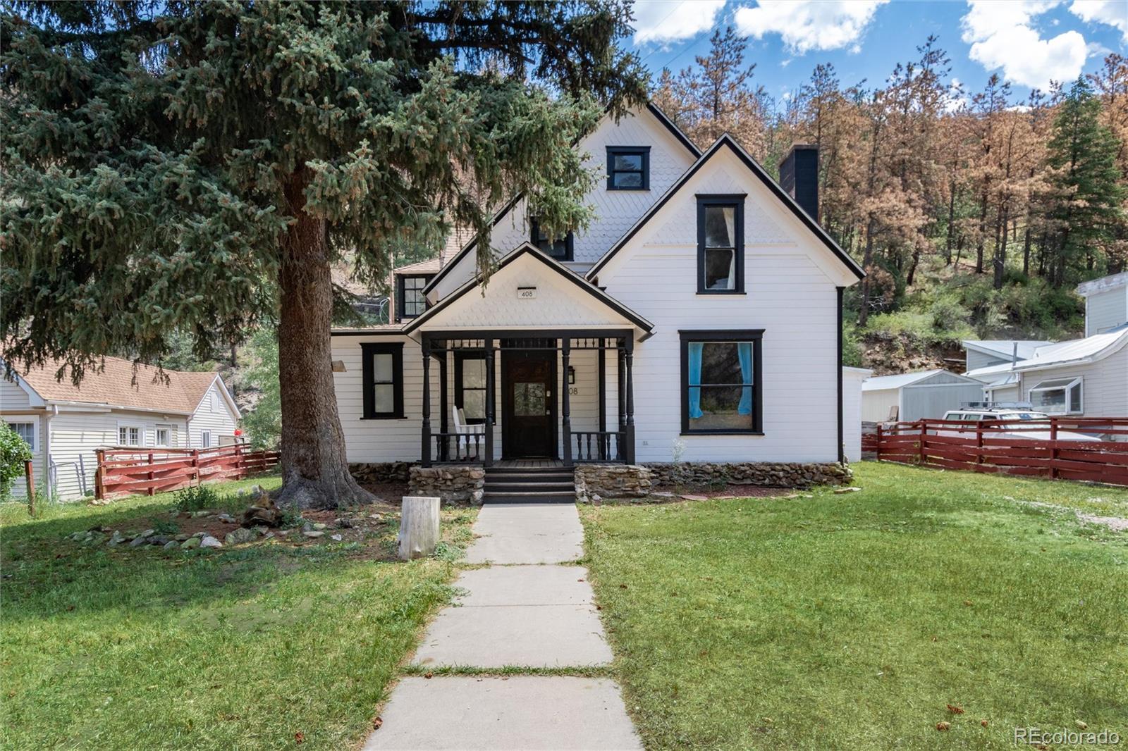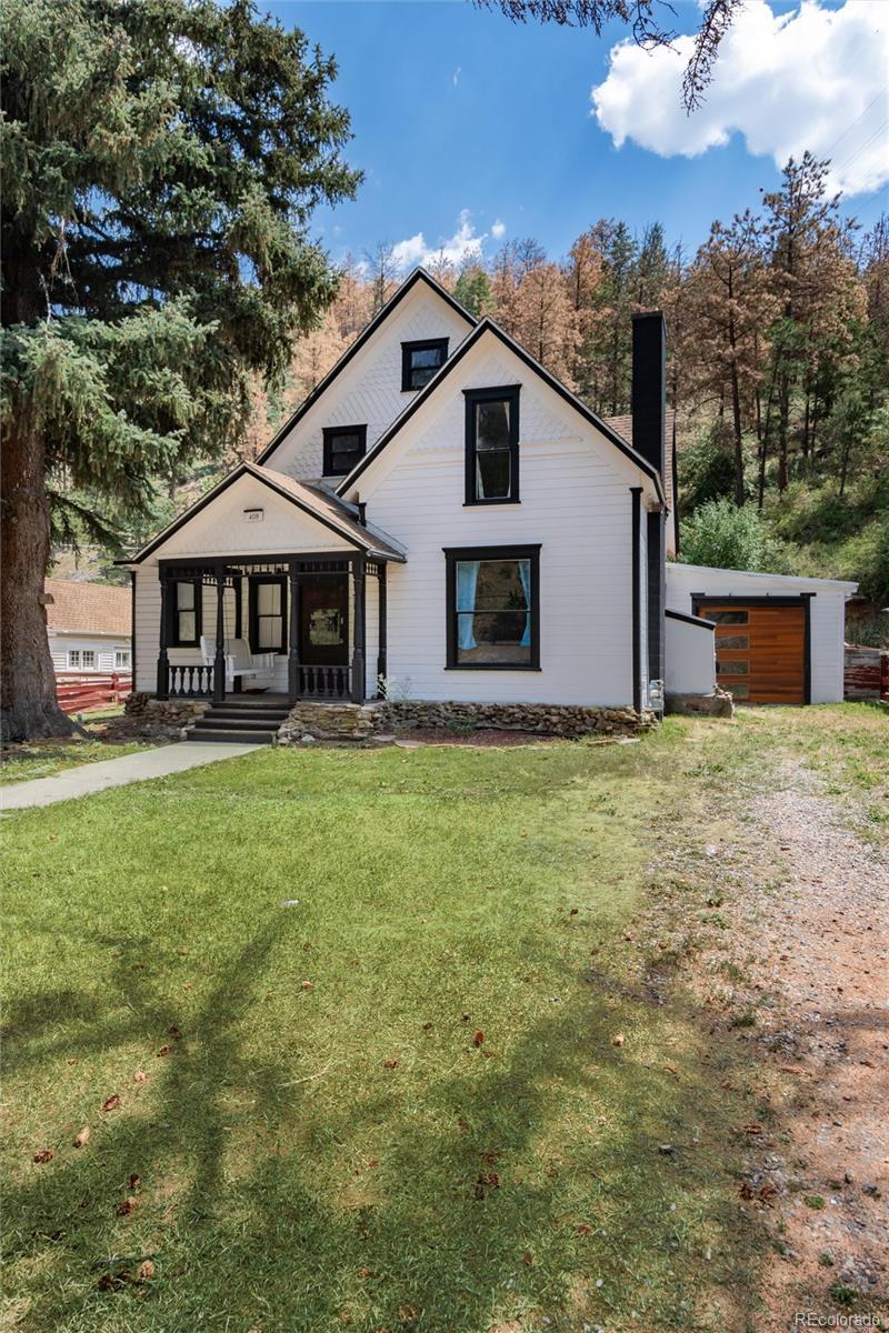 Welcome to this stunning mountain retreat in Idaho Springs, just a short walk from the famous hot springs! Owner will consider Lease option or Owner Will Carrie. Contact agent for more details. Close to Echo Mountain ski area and 25 miles to Loveland Ski resort, Experience the private sauna, perfect for relaxing sore muscles after a day of skiing or hiking.This remodeled Victorian home has a stunning kitchen with a six-burner gas range, a Samsung glass panel refrigerator, new cabinets, and granite countertops. Cozy up and enjoy the crackle of the wood-burning fireplace in the living room as you watch the wildlife from your picture window—main floor primary bedroom with ensuite bathroom. There is a second bathroom on the main level, three spacious bedrooms upstairs, one with a balcony—large additional attic space. The home is currently being used as an Airbnb and can be sold as fully furnished. This may limited showing times due to guests. This home is in an opportunity zone.