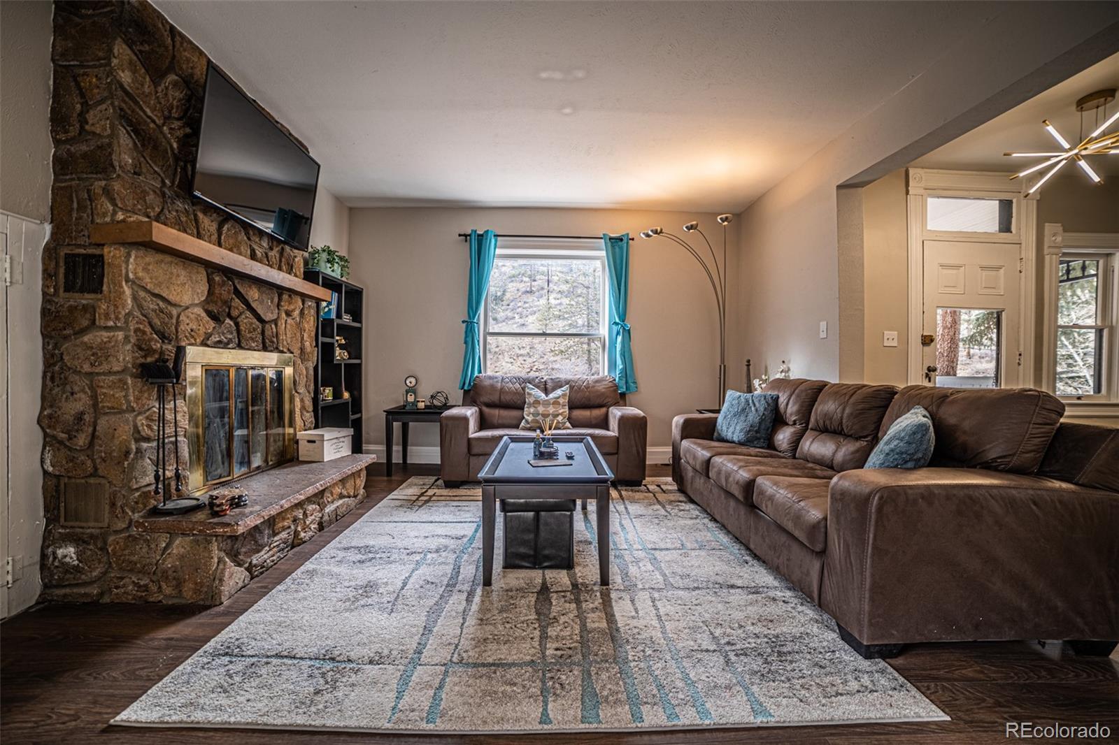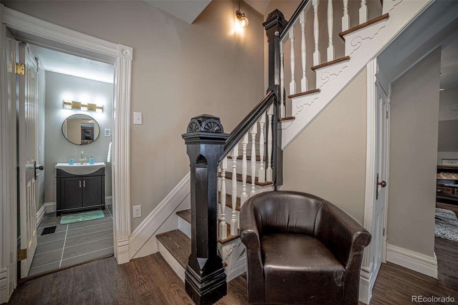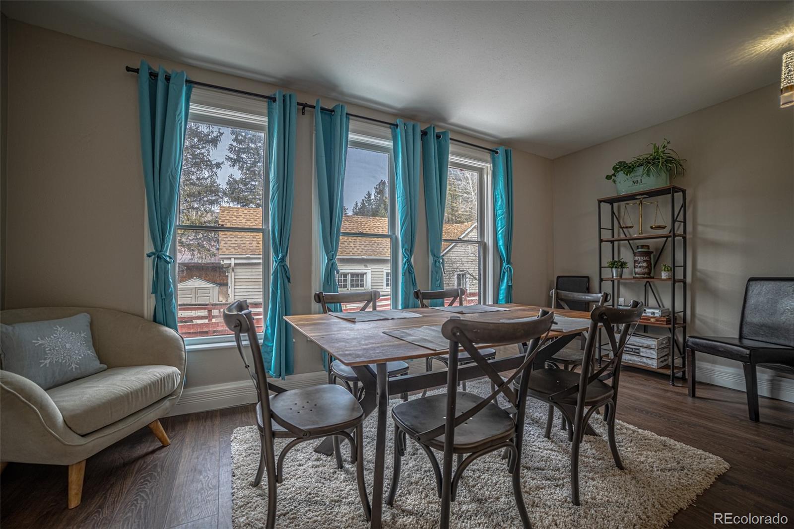 Welcome to this stunning mountain retreat in Idaho Springs, just a short walk from the famous hot springs! Owner will consider Lease option or Owner Will Carrie. Contact agent for more details. Close to Echo Mountain ski area and 25 miles to Loveland Ski resort, Experience the private sauna, perfect for relaxing sore muscles after a day of skiing or hiking.This remodeled Victorian home has a stunning kitchen with a six-burner gas range, a Samsung glass panel refrigerator, new cabinets, and granite countertops. Cozy up and enjoy the crackle of the wood-burning fireplace in the living room as you watch the wildlife from your picture window—main floor primary bedroom with ensuite bathroom. There is a second bathroom on the main level, three spacious bedrooms upstairs, one with a balcony—large additional attic space. The home is currently being used as an Airbnb and can be sold as fully furnished. This may limited showing times due to guests. This home is in an opportunity zone.