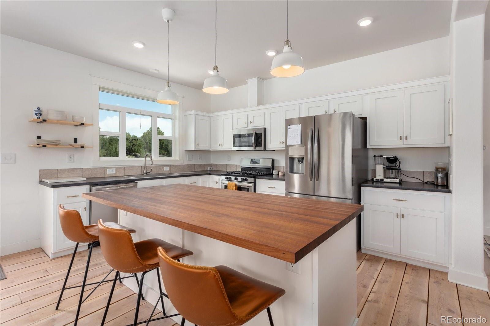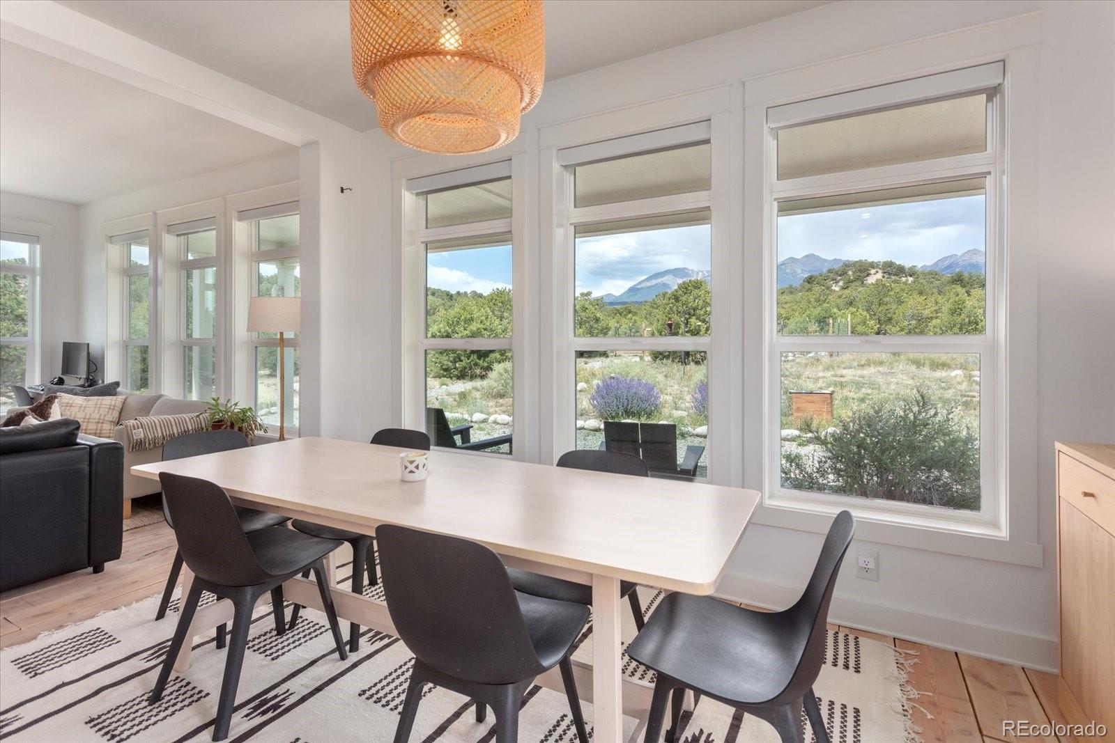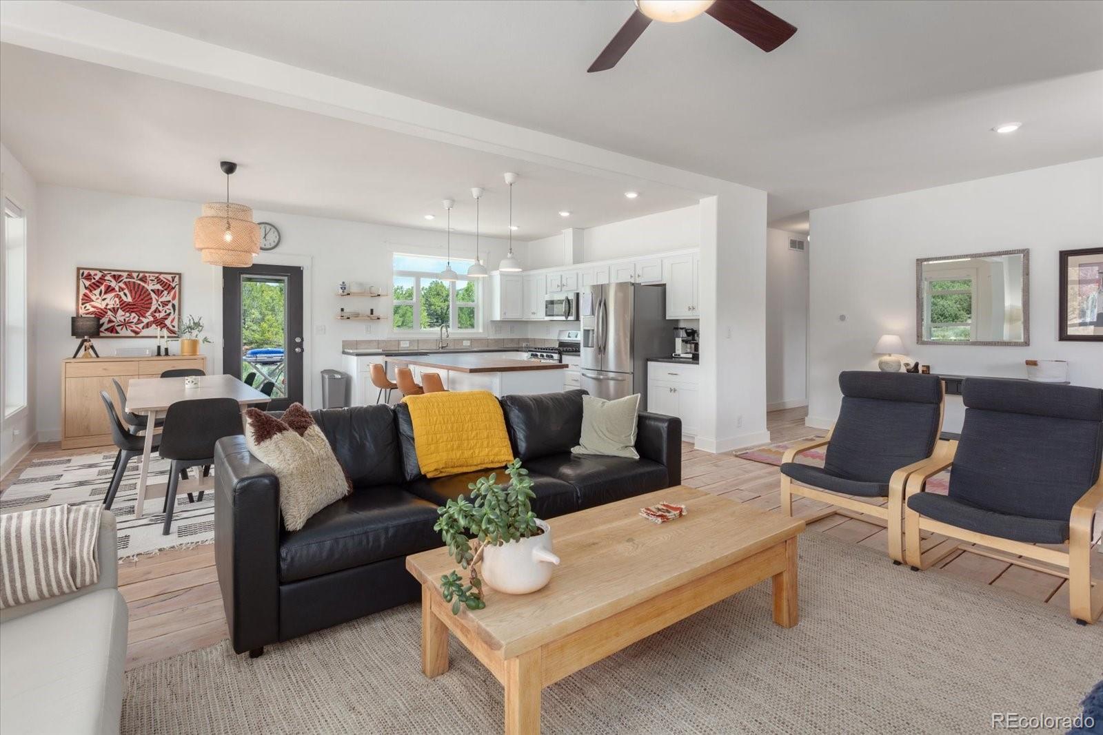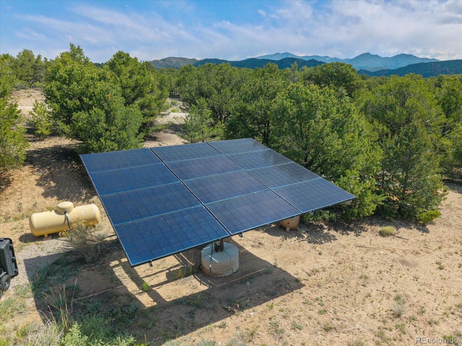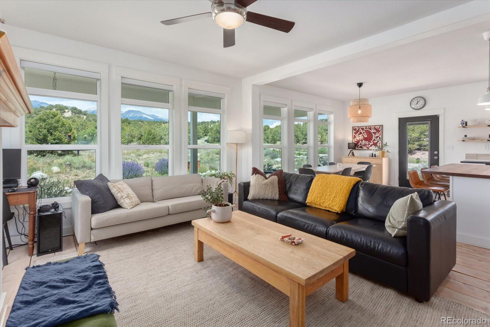 Set on 45.61 acres just minutes from downtown Salida, this custom modular home offers privacy, infrastructure, and usable land that is increasingly hard to find. Built in 2018, the 1,860 square foot residence features 3 bedrooms and 2 bathrooms on the main level, plus a fully framed and insulated upper level designed for a future living area, bedroom, and bathroom, offering excellent expansion potential. Inside, expansive windows fill the home with natural light and showcase surrounding views. The open layout connects the living room, dining area, and kitchen, anchored by a gas fireplace. The kitchen features stainless steel appliances, shaker cabinetry, and a walnut butcher block island ideal for cooking and gathering. Power is supplied by Sangre de Cristo Electric and supported by an owned solar array. Starlink provides reliable high speed internet. Two leased DeLuca propane tanks service the home. A grazing lease with Pridemore Cattle helps maintain agricultural tax status. With no HOA and no covenants, the property offers open views, quiet privacy, and flexibility for future structures or use. A private one mile singletrack trail loops the land, and a bridge crosses the arroyo to a secluded firepit area surrounded by trees. A fenced garden with raised beds is ready for seasonal growing. This is a rare opportunity to own acreage with infrastructure, privacy, and direct access to the Salida lifestyle.