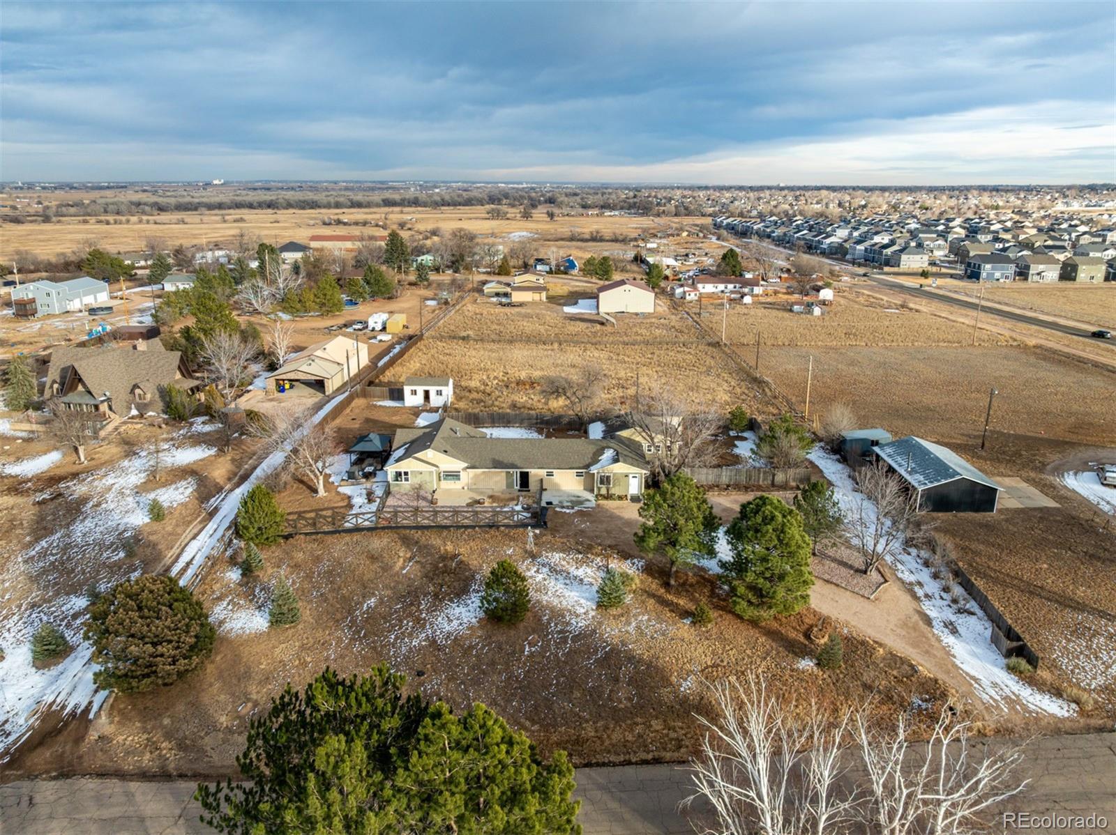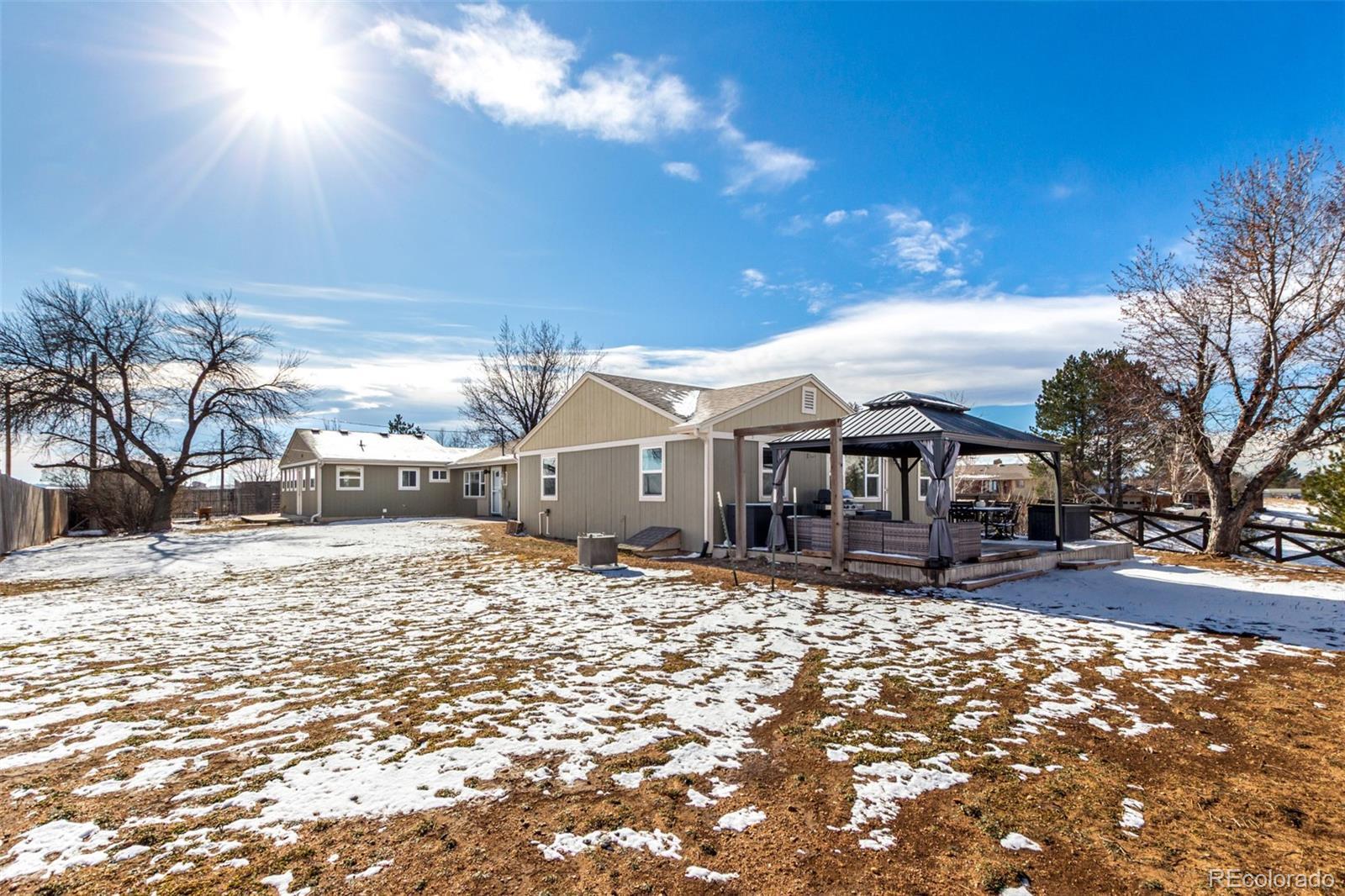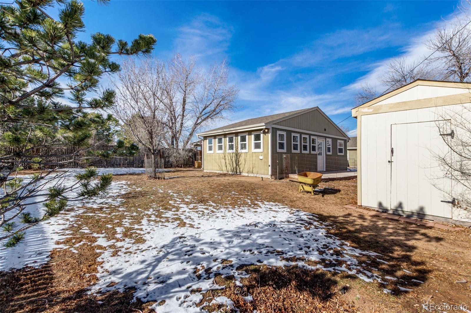 Single level home with ADU on a sprawling 1.7 acre lot with sweeping Colorado mountain views and over $200,000 in recent remodeling. Perfect for buyers seeking an in law floorplan, ADU style living, multi generational housing, or a handicap accessible home. The main residence lives like a luxury 2 bed 1 bath with bright open spaces, wood style floors, and a flexible bonus room with private access. The stunning custom kitchen has over $100,000 invested, featuring high end granite, luxury CAFE series appliances, abundant cabinetry, designer backsplash, and a prep island built for entertaining. The converted garage creates a versatile suite with a large walk in closet, ideal as a buffer between the main home and ADU, guest quarters, or it can be converted back to a 2 car garage to fully separate the living spaces. The attached addition functions as a private apartment with its own entry, kitchenette, laundry, oversized bedroom, and a new accessible bathroom. Huge backyard with deck, gazebo, shed, and room for an outbuilding.