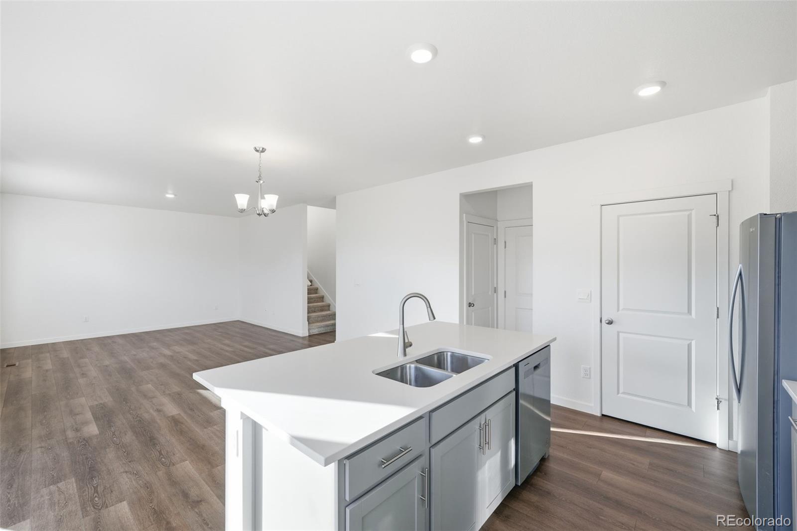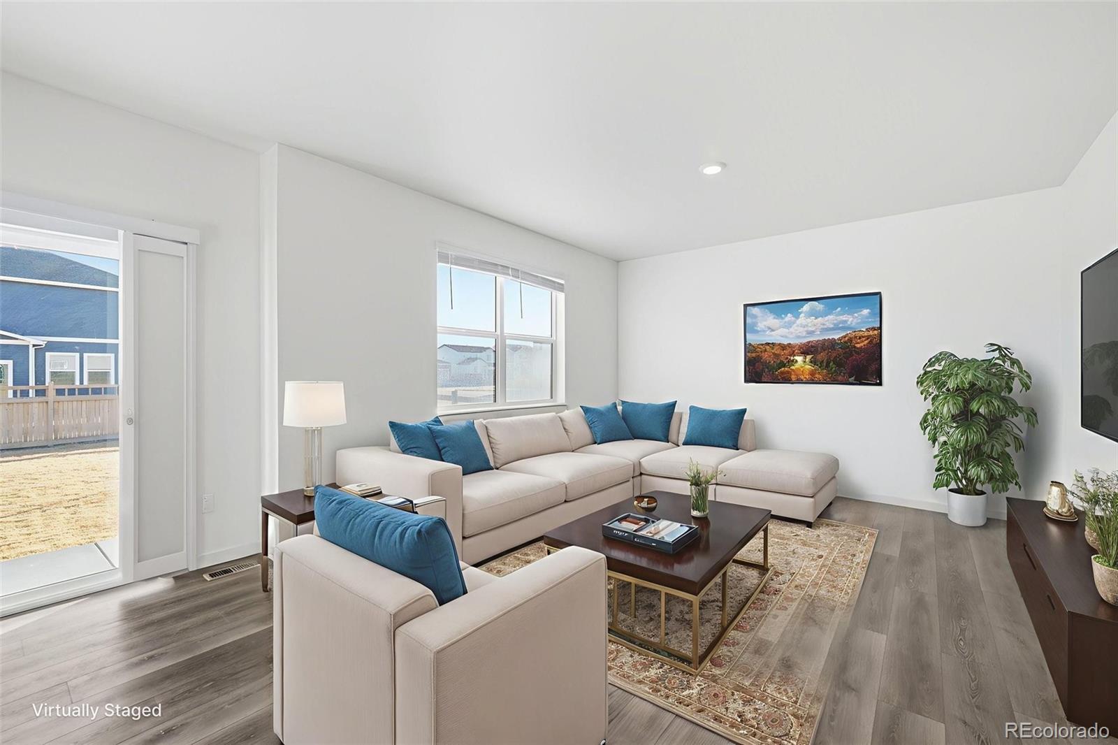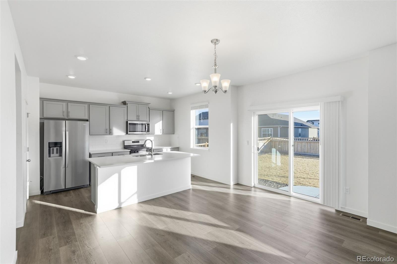 Welcome to 4634 Longs Peak Street in the highly desirable Brighton Crossings community in Brighton, Colorado. Situated on a two-story corner lot adjacent to Donelson Park, this 4-bedroom, 2.5-bath home built in 2024 offers modern design, smart technology, and an unbeatable location. The popular Bellamy floor plan features an open-concept main level with luxury vinyl plank flooring, quartz countertops, gray cabinetry, stainless steel appliances, a spacious pantry, and a large center island that flows seamlessly into the dining and living areas—perfect for everyday living and entertaining. Upstairs, all four bedrooms are conveniently located along with the laundry room. The spacious primary suite includes a private en-suite bathroom. Additional features include central air conditioning, a tankless water heater, radon mitigation system, tall walkable crawl space for extra storage, two-panel interior doors, neutral finishes, window coverings, and an electric vehicle charger in the garage. Front and rear yard landscaping are already complete with sprinkler system. Residents of Brighton Crossings enjoy access to the Venture Center and community pool, fitness center, splash park, dog park, parks, trails, and open spaces just steps away. This move-in-ready home combines comfort, efficiency, and community living in one of Brighton’s most sought-after neighborhoods.