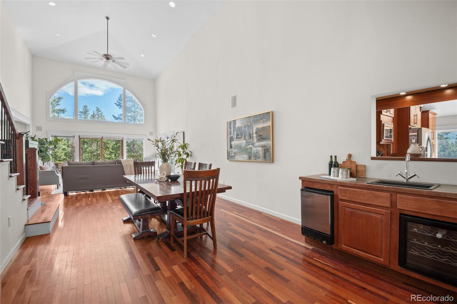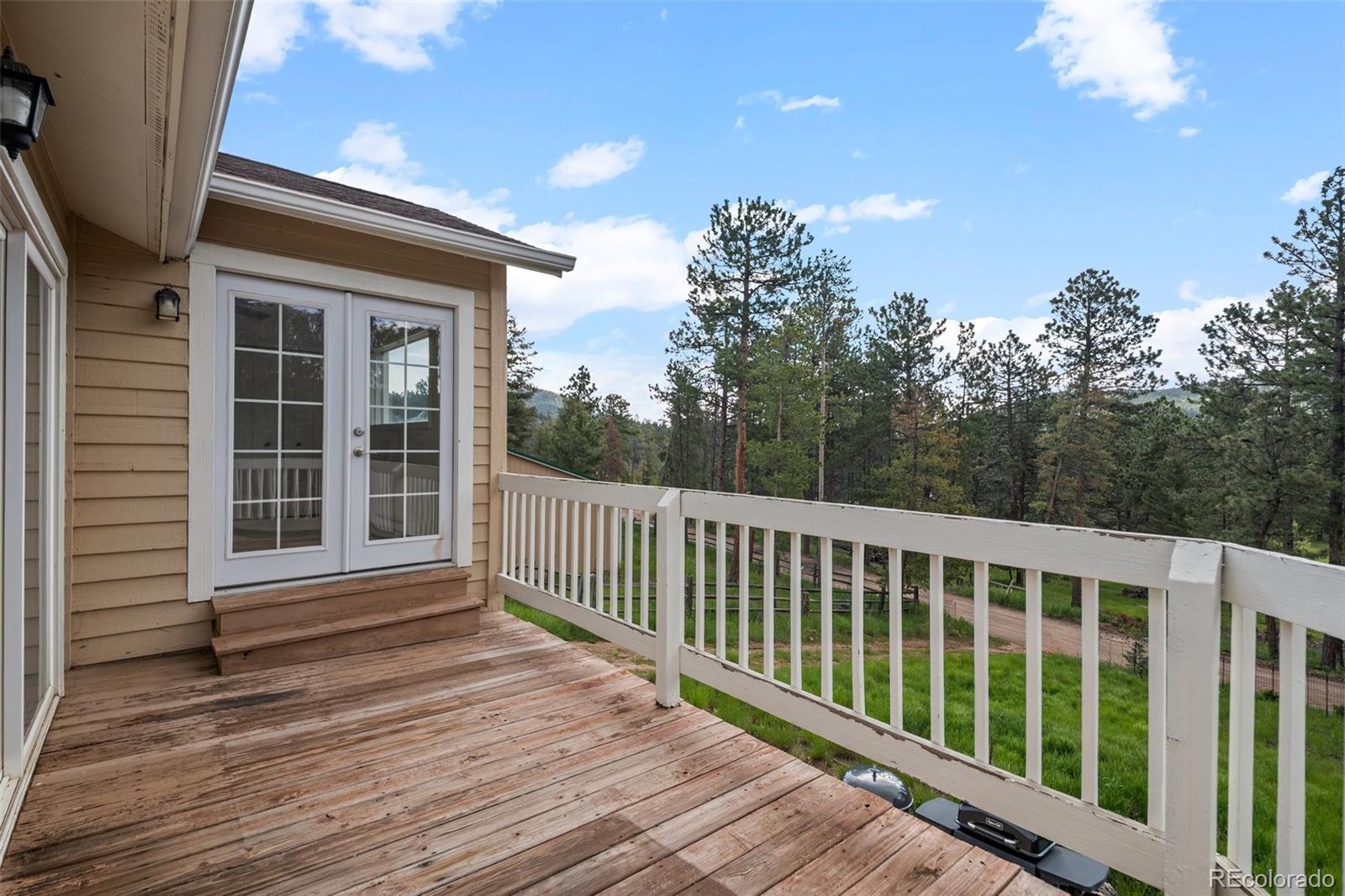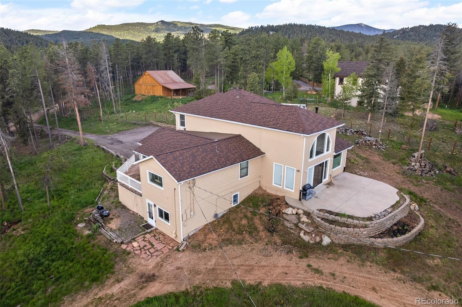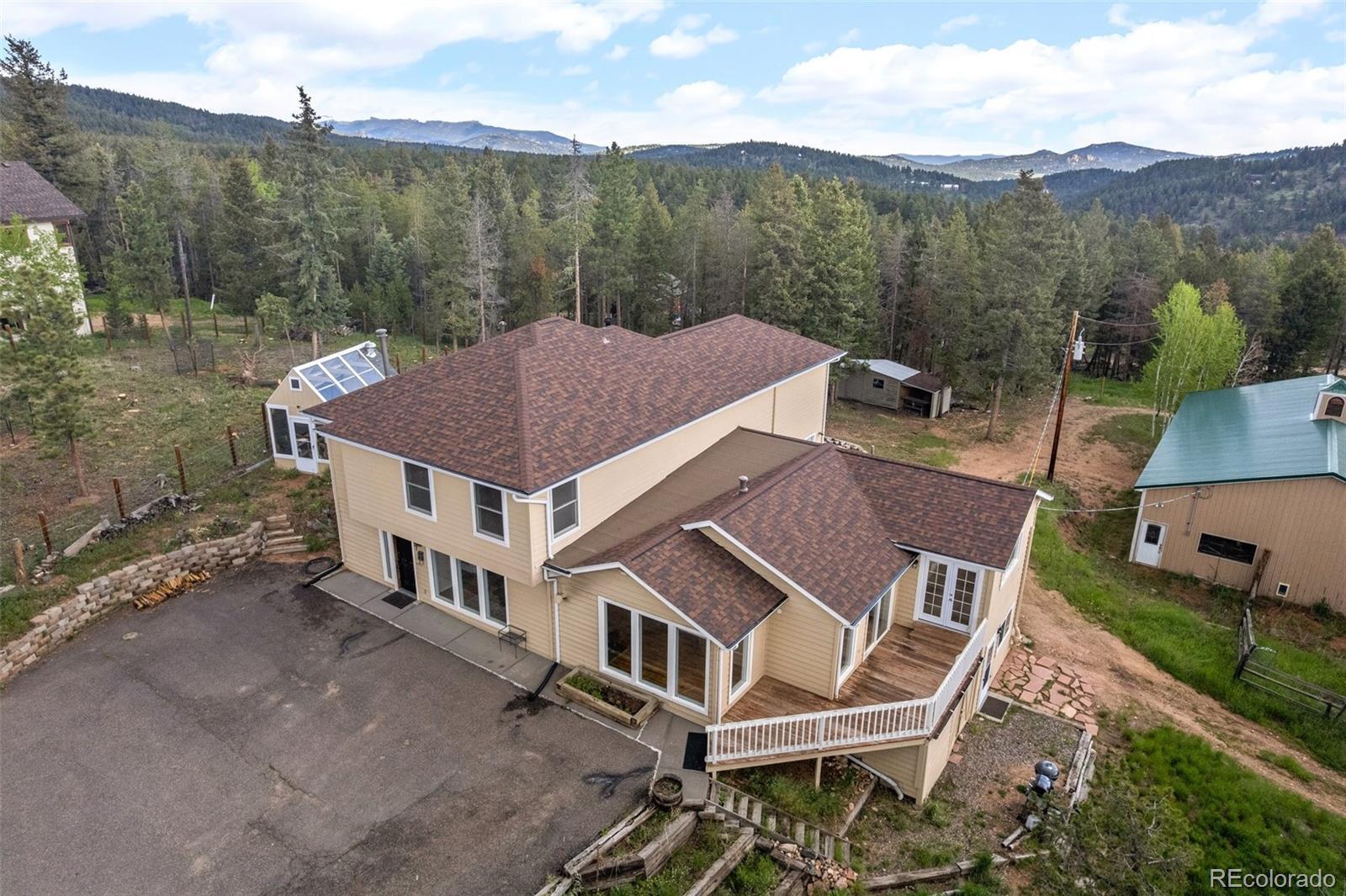 Situated on a peaceful and mostly flat 1.70-acre lot along a private road, this spacious 5-bedroom, 5-bath mountain retreat offers the perfect blend of comfort, versatility, and charm with a private in-law suite with its own walk-out entrance perfect for guests, multi-generational living, or potential rental income, plus a massive workshop/garage for your home business, collections and outdoor recreational vehicles. Bathed in natural light, the open interior showcases hardwood floors and a thoughtfully designed layout ideal for everyday living and entertaining. The large eat-in kitchen is a host’s dream, with plenty of space for family and friends to gather, while a separate dining area provides flexibility for formal meals, crafts, or a dedicated study/work zone. Rare for the area, the main-floor primary suite and laundry room offer convenient one-level living. A Car enthusiasts, outdoor adventurers, and entrepreneurs will love the massive 8-car garage/workshop, complete with water, 220V power, and a natural gas line—ideal for storage, projects, or 4x4 recreational parking. Studio apartment on lower level is the perfect in-law suite or guest suite. It has its own utilities and private entrance. All set in a serene, wooded setting with room to roam and grow—this home is a true mountain gem with modern conveniences and timeless appeal. There are no other homes on the market with this SF, massive garage/workshop, greenhouse and chicken coop below this price point. Make your appointment today to see this extraordinary property. See video https://listings.creativeedgemedia.com/sites/27987-pine-grove-trail-co-80433-18169585/branded#
