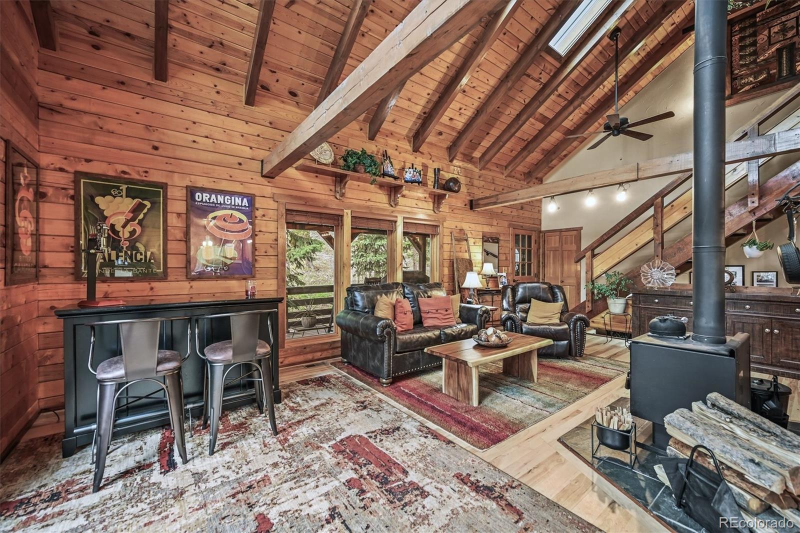 Tucked away on a quiet, tree-lined acre in the heart of the mountains, this charming log home is more than a house—it's a mountain experience. A peaceful retreat where the rustling of leaves and calls of songbirds replace the sounds of the city, and is designed to offer warmth, comfort, and a connection with nature. A paved driveway winds through tall pines, leading you to a home with rustic, timeless charm. Step onto the covered porch or relax on the expansive wrap-around deck, where morning coffee and starlit evenings become daily rituals. The property is a haven for your four-legged companions, with a dog run and an invisible dog fence. Inside, you’re welcomed by vaulted ceilings, large picture windows, and skylights that fill the home with golden light. Newer wide-plank hickory floors add warmth and character, while a wood stove enhances a mountain-cozy feel. This is a place where fires crackle, laughter echoes, and life slows down just enough to let you breathe. The heart of the home—the spacious kitchen—invites conversation and creativity with stainless steel appliances and granite countertops. A charming loft overlooks the living area, offering a quiet spot for reading, working, or simply watching the snowfall. The primary suite is a peaceful escape, with a walk-in closet and a bathroom featuring a custom free-standing tub—perfect for unwinding after a day of adventure. The finished basement adds flexible space for guests, hobbies, or a media room. Additional highlights include a newer furnace, large-capacity propane tank, and an oversized 2-car garage for year-round comfort and practicality. Whether you’re curled up by the fire, hosting loved ones in the open living space, or breathing in the crisp mountain air, this home surrounds you like a warm embrace. Come experience the peace you didn’t know you were missing. This one-of-a-kind mountain hideaway is ready to welcome you home.