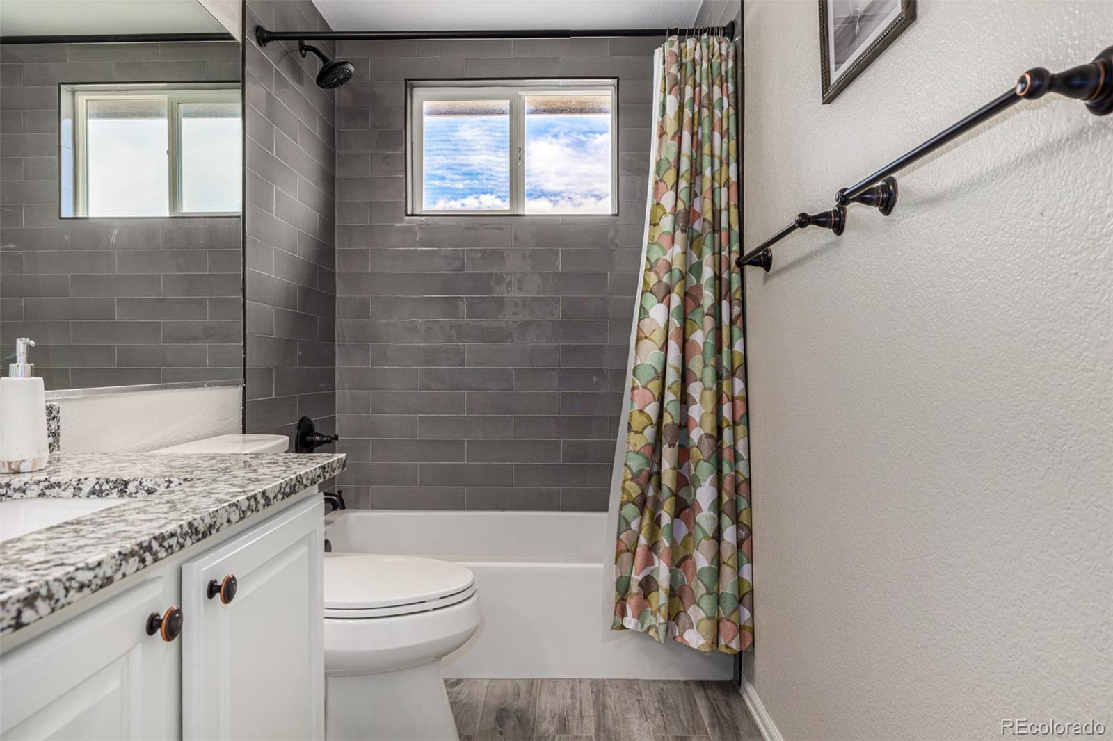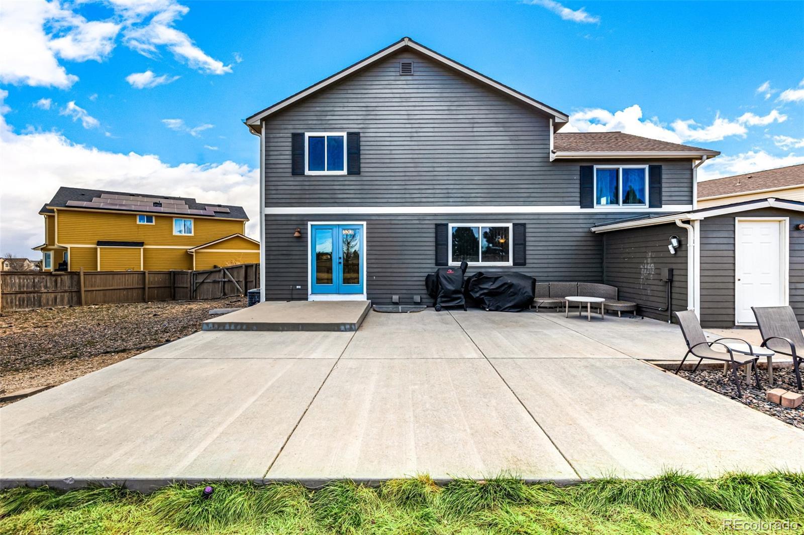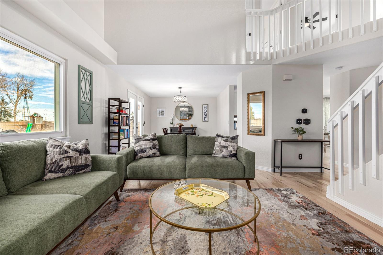 Welcome home to this thoughtfully updated 3-bedroom, 3-bath home in Castlewood Ranch, where comfort, style, and functionality come together seamlessly. Hardwood floors, vaulted ceilings, and abundant natural light create an inviting feel throughout the main level. The modern eat-in kitchen features stainless steel appliances and flows effortlessly into the open yet cozy living area—perfect for everyday living or entertaining. A refreshed main-level bath and newly refinished floors add to the move-in-ready appeal. Upstairs offers three well-appointed bedrooms, including a spacious primary suite with barn doors and an updated five-piece bath featuring a rain shower, soaking tub, and dual sinks. A loft and second full bath complete the upper level. The finished basement provides flexible space for a playroom, media room, or hangout area, plus a fully equipped home gym that can stay. It’s also roughed-in for an additional bathroom, offering future expansion potential. Outside, French doors open to one of the largest fenced yards in the neighborhood. Enjoy the expansive concrete patio with basketball hoop and playground, plus room to design your dream outdoor retreat. The gravel area includes a hot tub hookup near the shed, and sturdy backyard pilings—once used for a zip line—offer unique possibilities. Additional highlights include a Tesla charger in the garage, and the sellers are leaving the Traeger grill, mounted TVs, and gym equipment—making this home truly turnkey. With tasteful updates, thoughtful extras, and a prime location near parks, schools, the library, and shopping, this home blends style, space, and lifestyle beautifully.