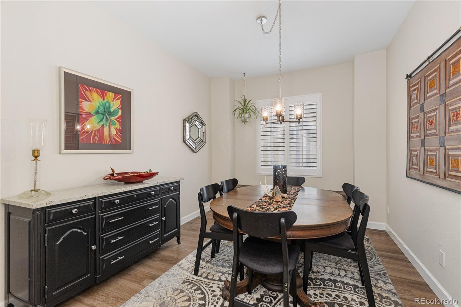 Freshly refinished with exceptional craftsmanship, the basement sets a high standard in this meticulously upgraded, west-facing 4-bed, 3-bath ranch home. Adding 1,332 sq ft of thoughtfully designed living space, the lower level features 2 conforming bedrooms, a 3/4 bath, a spacious family room, and abundant storage — all finished with a cohesive, high-quality aesthetic that feels seamlessly integrated with the rest of the home. Upstairs, the open layout is anchored by a remodeled kitchen island with granite countertops, stainless appliances, gas range, reverse osmosis, pantry, and generous seating — blending elevated design with everyday functionality. The main-floor primary suite is nothing short of a polished retreat with dual vanities and a walk-in closet. Throughout the home, carefully selected upgrades shine, including plantation shutters, an integrated sound system, radon mitigation, smart doorbell + HVAC controls, washer/dryer, and a brand-new 50-gal water heater. Even the practical spaces reflect the same level of care, from the 2-car garage (large enough to park a truck) with custom shelving to the covered patio stubbed for gas and ready for future BBQs. Ideally located minutes from Barr Lake, Buffalo Run Golf Course, trails, dining, and DIA — with a great neighborhood playground just blocks away — this home offers refined comfort, intentional upgrades, and true move-in-ready confidence.