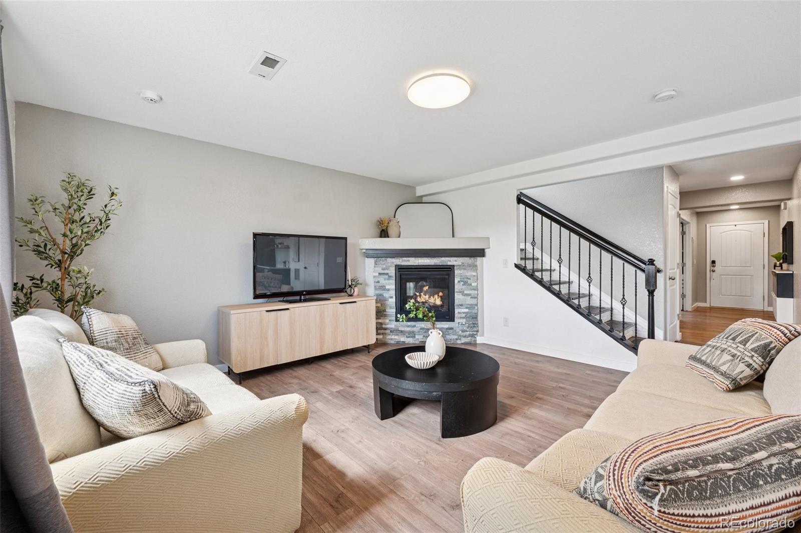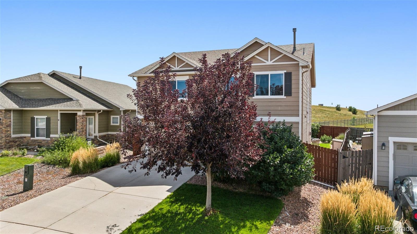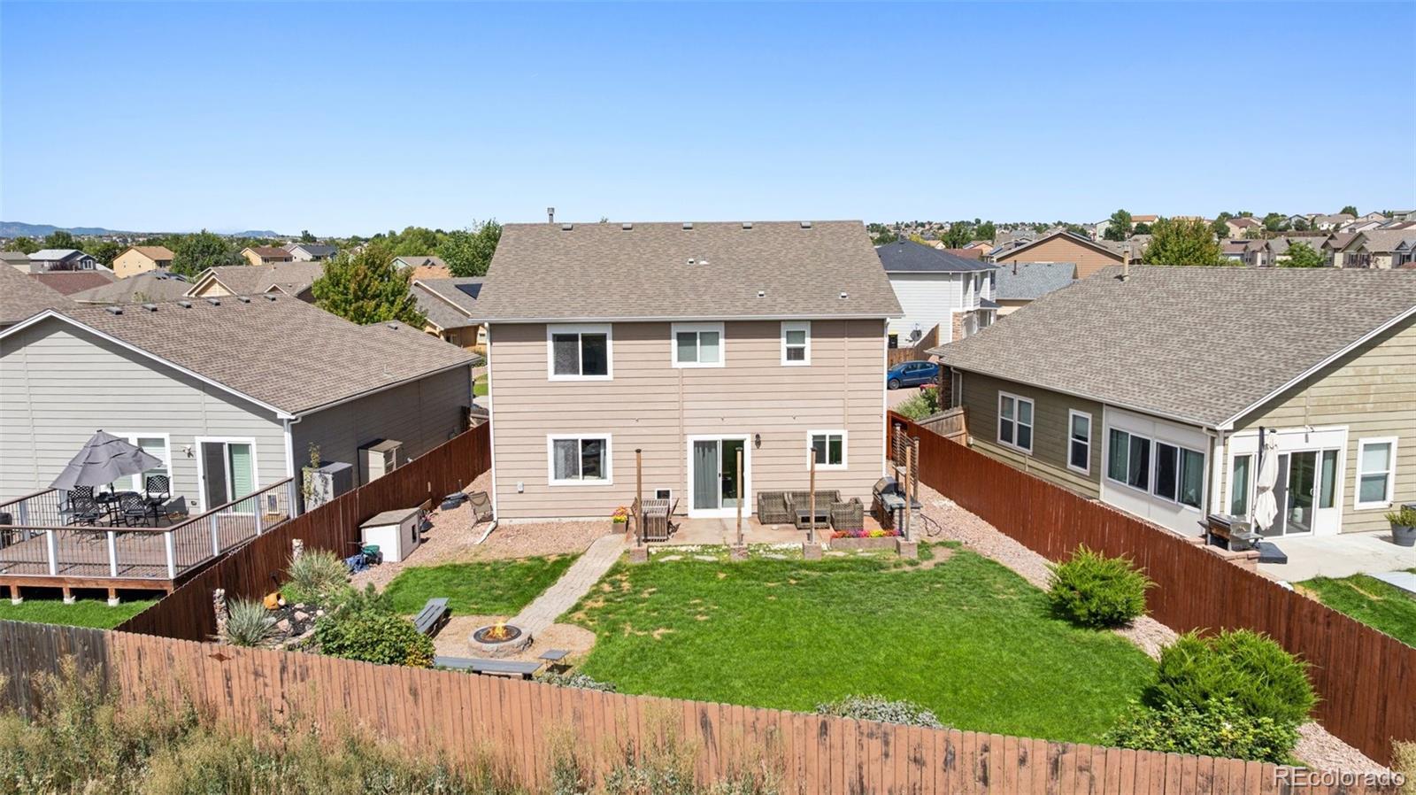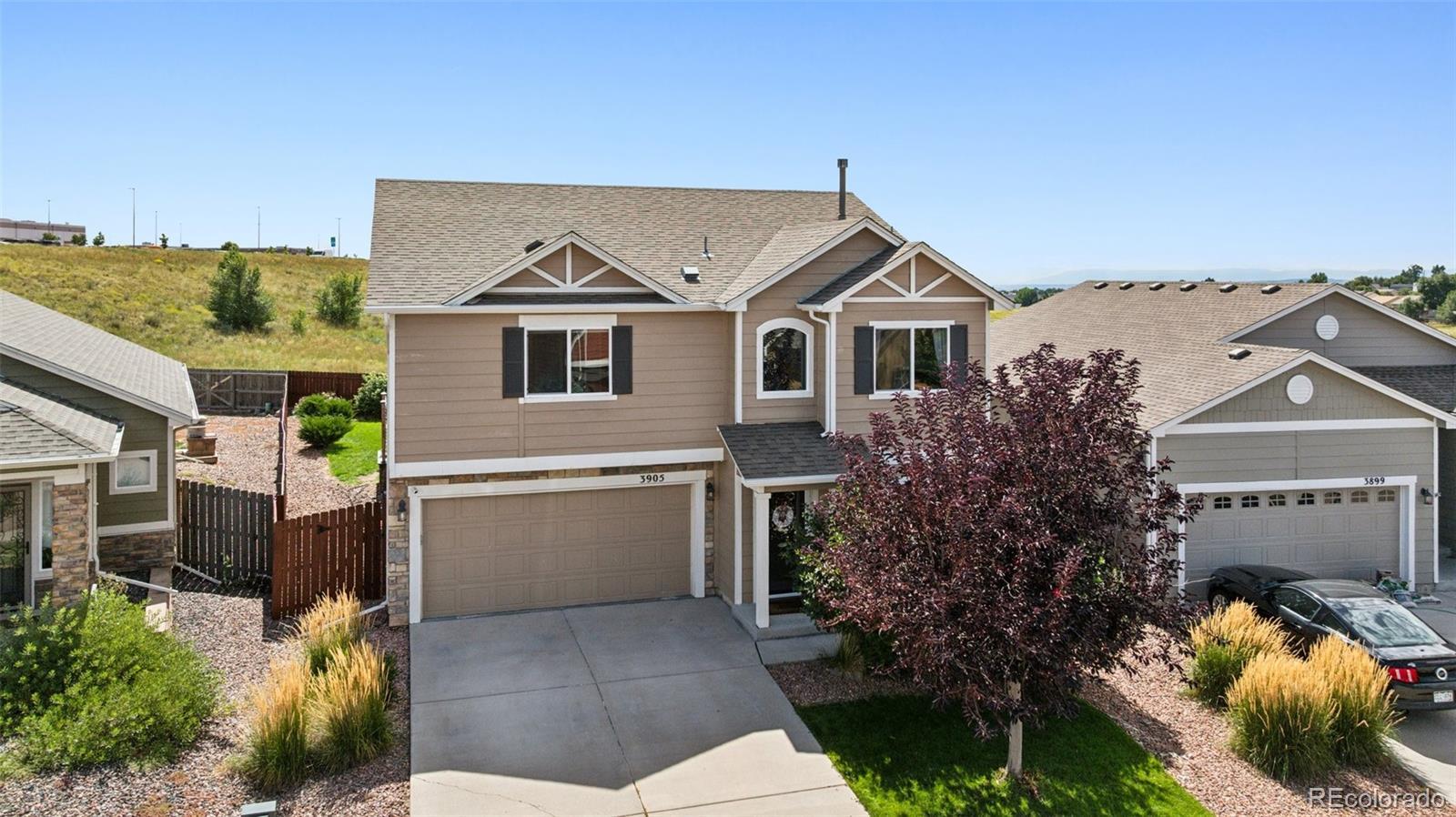 Stylish 2-Story Backing to Open Space in Mule Deer Crossing! This beautifully remodeled 3 bedroom, 2.5 bath home with a 2-car garage in District 49 offers modern touches throughout. The main level features luxury vinyl flooring, a private office, and a welcoming living room with a cozy fireplace. The updated kitchen shines with solid-surface counters, stainless steel appliances, custom pantry, island, and spacious dining area with walkout access to the fenced backyard with new grass—perfect for summer gatherings. Upstairs, enjoy an oversized family room, convenient laundry room, and a luxurious primary suite with a 5-piece bath, water closet, and custom built-in closet. Two additional bedrooms and a full bath complete the upper level. Ideally located near Peterson Air Force Base, parks, trails, schools, medical facilities, shopping, restaurants, and more—this home truly has it all!