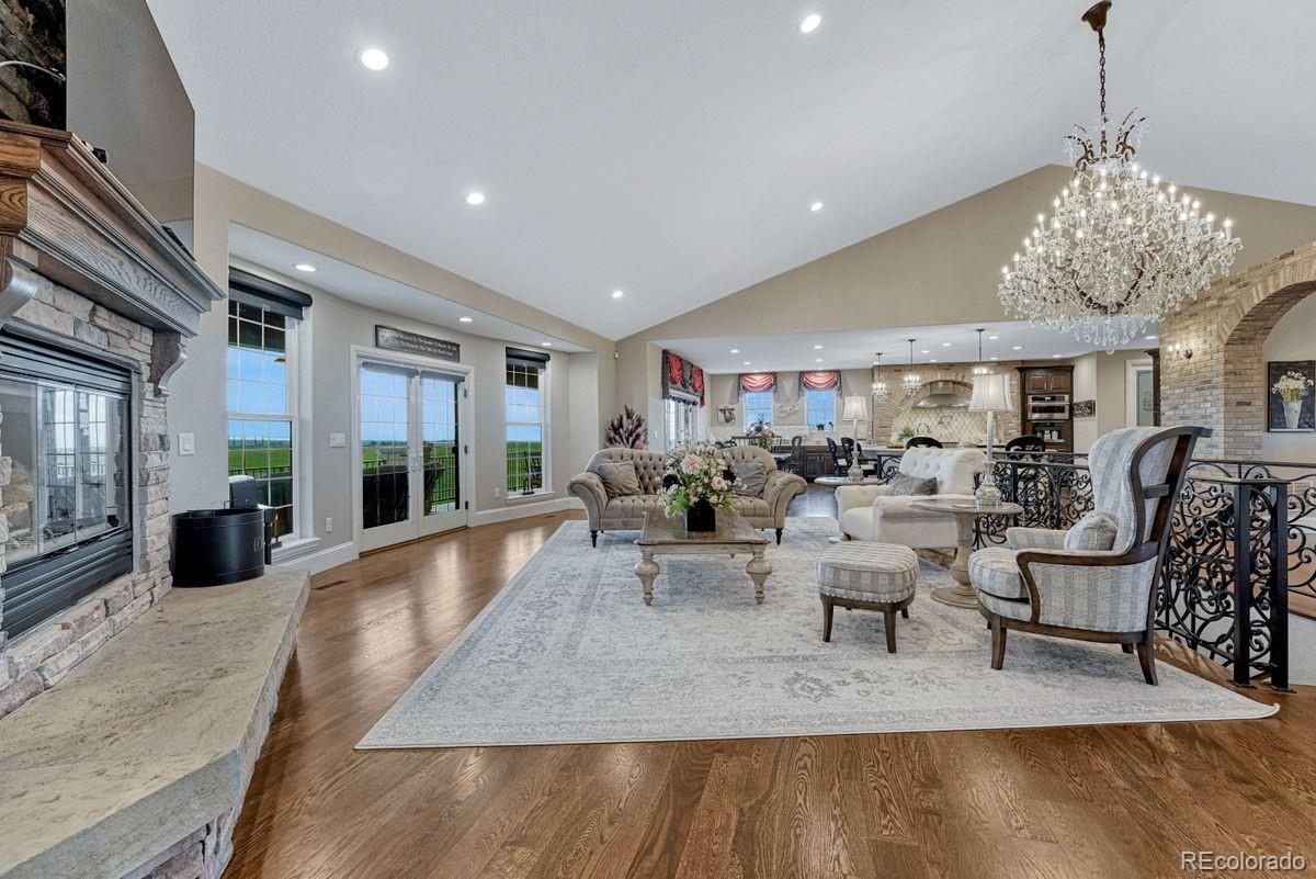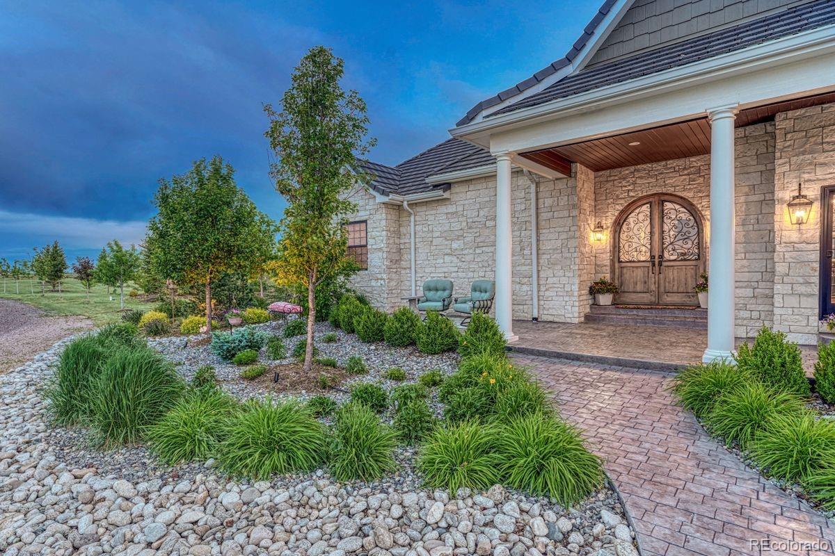 Inspirational architecture, meticulously curated and hand-selected high end finishes, park like setting, sweeping 200+ mile views of Pikes Peak and the mountain range merge to create one of the most stunning luxury equestrian friendly estates available. Privacy and tranquility on 35 acres of trees, lush green meadows and wildflowers perfectly suited to enjoy the best Colorado has to offer in close proximity to Denver and Colorado Springs. No expense was spared - built in 2020, over 6,000 square feet, 4 bedrooms, an office, 5 baths, 13 car garage, Restoration Hardware lighting, high end crystal door knobs, the highest grade of wide plank oak select hardwood floors, interior brick pillars, charming rounded doorways, 50 year tile roof, electric metal front gate and stone entry, completely fenced, an abundance of large Milgard architectural windows and doors for amazing natural light. Truly gourmet kitchen w/ top of the line Jenn Air appliances, Miele built-in espresso machine, 3 ovens, pot filler, 6 burner gas cook-top, granite counters, pantry, large island and luxury two-tone cabinetry. Main level primary suite w/ sitting room, hardwood floors, fireplace, expansive walk-in closet w/ closet system and a 5 piece bath w/ granite counters, double vanity, standalone tub and an over-sized shower w/ multiple heads. Open yet warm great room w/ fireplace, vaulted ceilings, stunning metal railings and a walk-out to outdoor entertaining areas, All bedrooms are ensuites. The grounds are absolutely stunning and well thought out w/ over 200 trees w/ varied mixture of trees, astroturf, gorgeous flowers and bushes. Massive steel barn/workshop/car barn/RV garage w/ electric, water, 2 stall doors, finished tack room area and concrete floors. Phenomenal outdoor entertaining spaces - front porch, covered back deck and lower level patio w/ hot tub and firepit. Finished walk-out lower level. Zoned for horses and other animals w/ community bridle trails. Stylish greenhouse and chicken coop