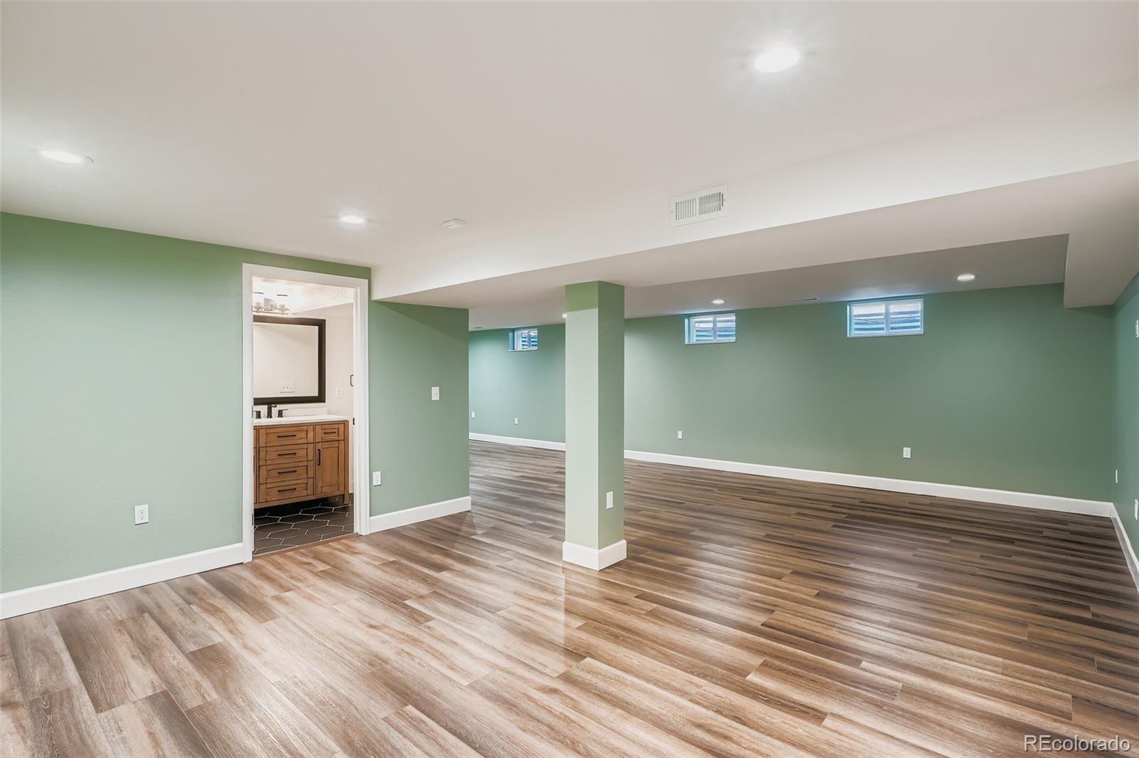 Welcome home to this beautifully updated 5-bedroom, 3-bath gem that perfectly blends comfort, functionality, and Colorado living. Every bathroom has been tastefully remodeled, the basement recently finished for extra living space, & the home features newer windows, gutters, downspouts, furnace, & A/C, and more making it truly turn-key. Even before you enter the home you are welcomed to a cool outdoor hangout space, perfect place to get to know your neighbors and watch the dogs walk by. Upon stepping inside you will be welcomed into a large foyer that opens to a sunken living room just begging for fun conversations. Just beyond this room is a very functional, intimate but open kitchen/dining/family room. The kitchen features newer SS appliances w/ a matching farmhouse sink. The dining room is truly the heart of the home & is flooded w/ light. The family room is rather large w/ a super cool brick wall, fireplace and fun outcrops just waiting to hold your treasures. Down the hall you will find 3 bedrooms; one being the primary with a recently remodeled 3/4 bath that has super fun tile, a gorgeous glass enclosure and a large rain style shower head & handheld sprayer. There are 2 secondary bdrms and a fully remodeled full bath. As if this wasn't enough, there is a fully finished basement & 2 more bedrooms . And the bathroom down here! It was designed with such style & taste. The backyard has a great lawn, mature trees, a gardeners dream, a green house! & another side garden space. The large patio was recently refinished with pavers. Whether you’re hosting friends or simply relaxing on a sunny Colorado afternoon, this home delivers space and style in all the right places. Located near some of Lakewood’s best outdoor amenities—Addenbrooke Park, East Reservoir, and Green Gables Park—you’ll have hiking, biking, fishing, and sledding practically at your doorstep. Plus, you’re just mins from Belmar’s shops and restaurants, with downtown Denver less than 20 mns away.