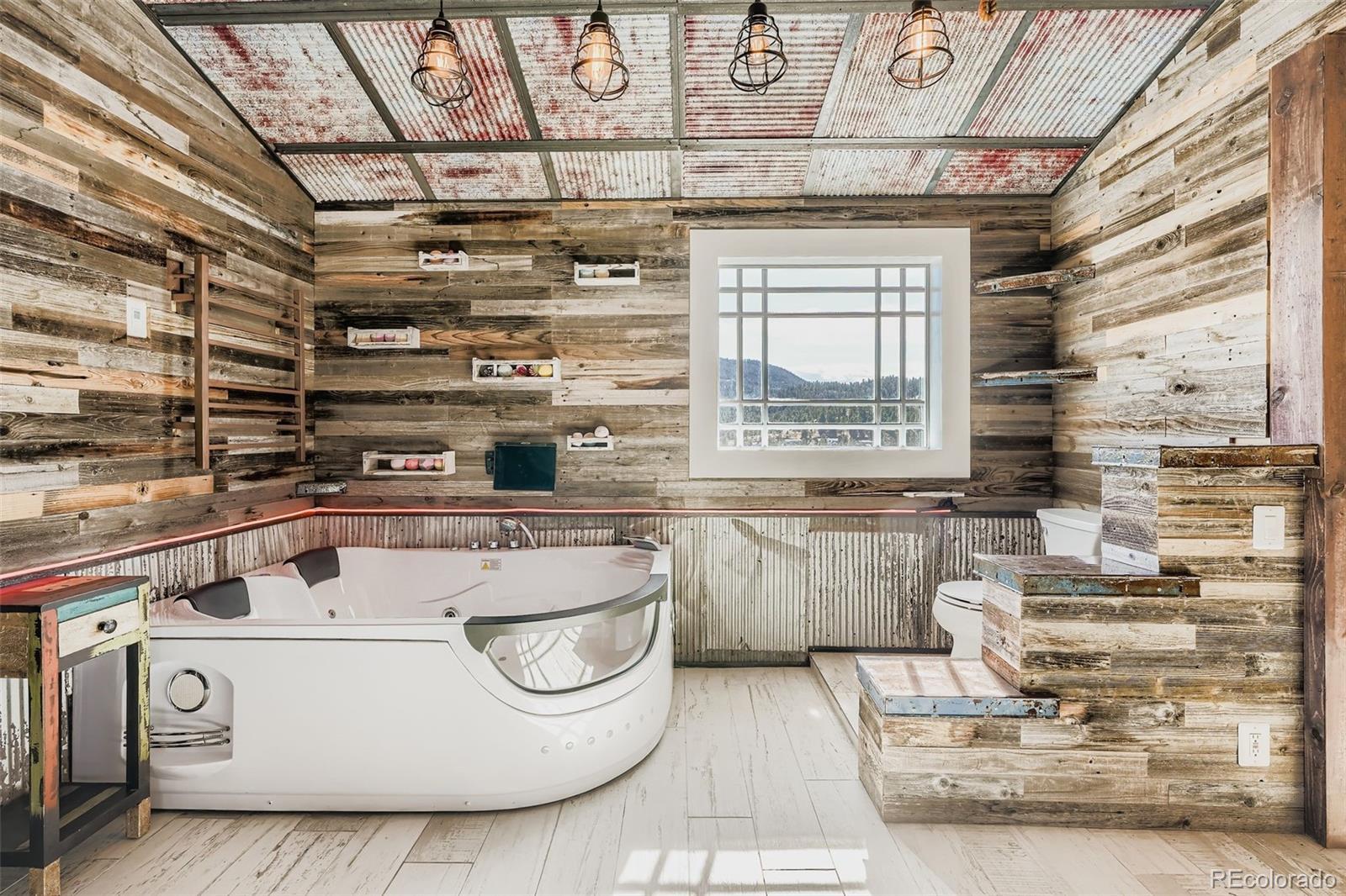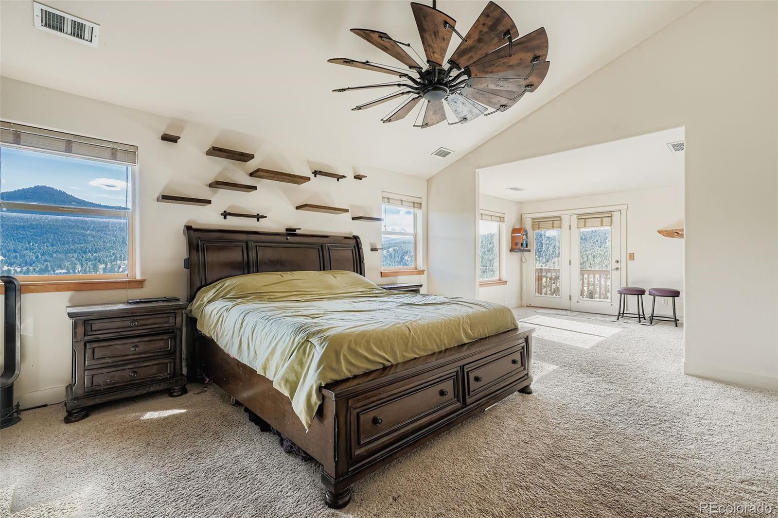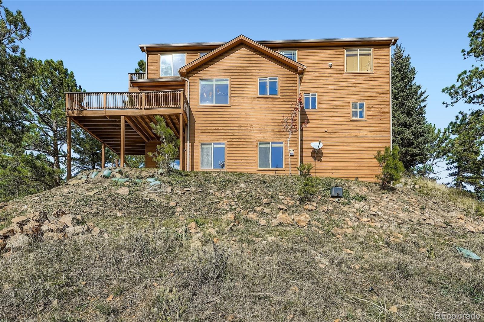 Click the Virtual Tour link to view the 3D walkthrough. Discounted rate options and no lender fee future refinancing may be available for qualified buyers of this home. Welcome to this stunning Evergreen mountain-side home, where breathtaking views and luxurious living combine seamlessly. The bright living room features a stone fireplace, and the formal dining room and kitchen with bar seating and a breakfast nook create a perfect space for entertaining or everyday living. A dedicated exercise room adds convenience, while the spacious primary suite offers a sitting room with its own fireplace and bar, a private balcony, and an ensuite bath with dual sinks, a jetted two-person soaking tub, a walk-in shower, and a massive walk-in closet with built-in storage. Upstairs, enjoy a dedicated office space and two additional bedrooms, while the basement provides another expansive living area, a kitchenette, a dedicated theater room, and an additional bedroom. Step outside to the wrap-around deck to take in the phenomenal mountain views and surrounding natural beauty. Located in Evergreen, this home offers access to hiking trails, parks, local dining, and shopping, combining serene mountain living with convenience and lifestyle amenities. This muti-generation home has it all! ***yard equipped with Invisafence***